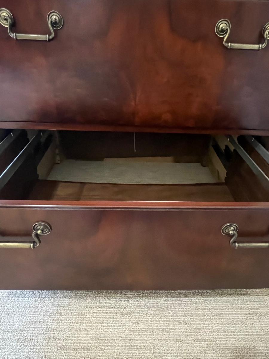 30” H x 35.5 W x 21” D ~ Bottom drawer is missing back panel, but does not hinder the performance of the drawer ~ Drawers slide open easily