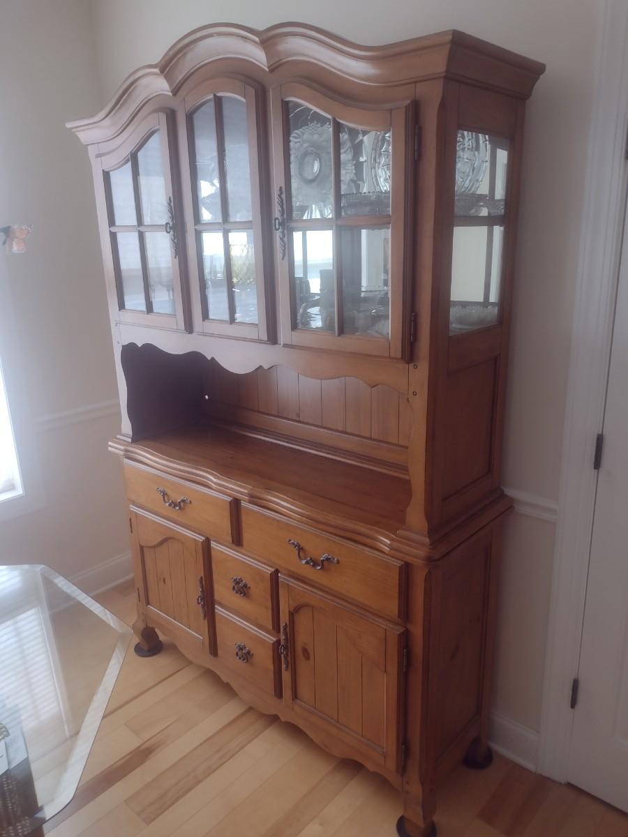 Solid Wood Two-Piece Buffet and China Hutch (No Contents)