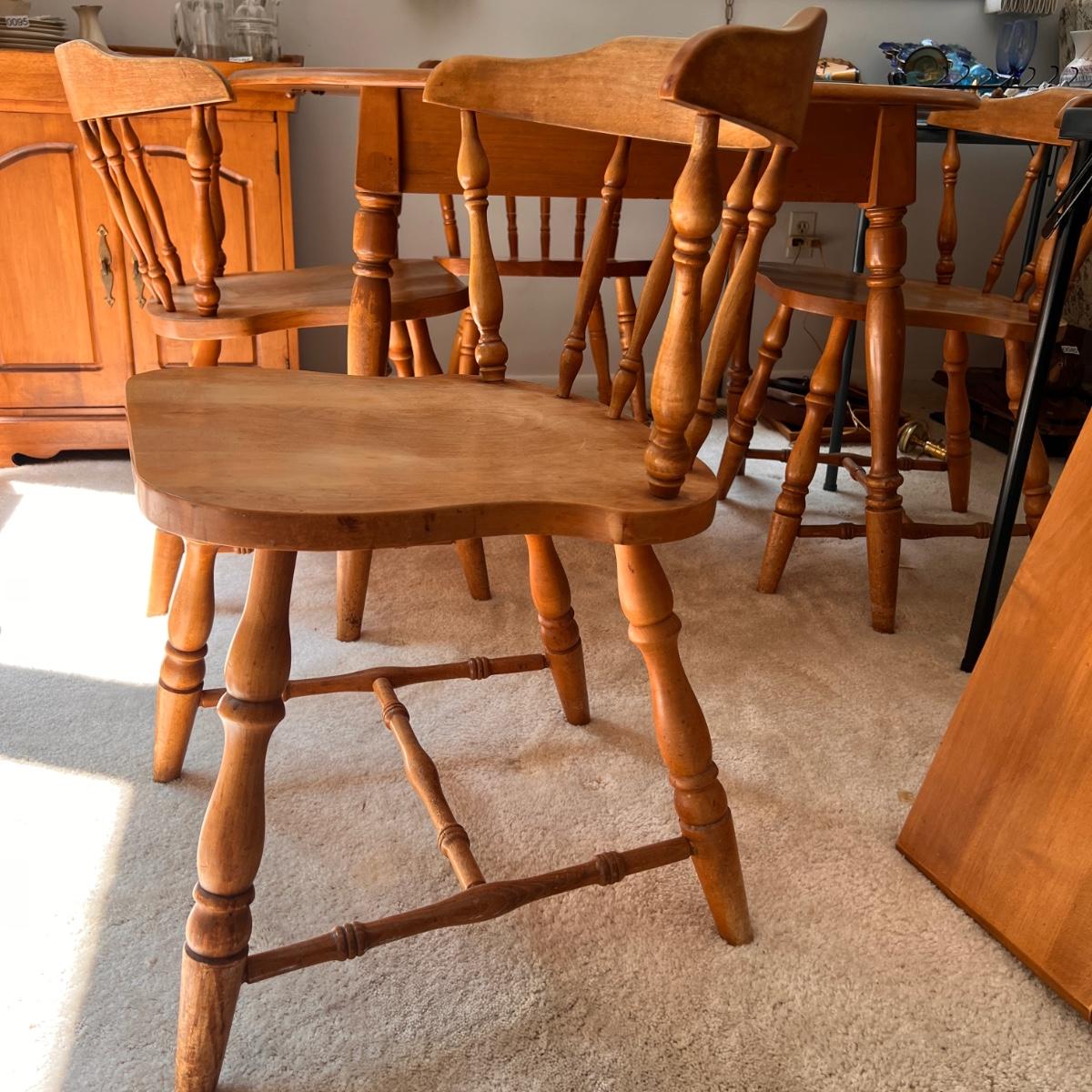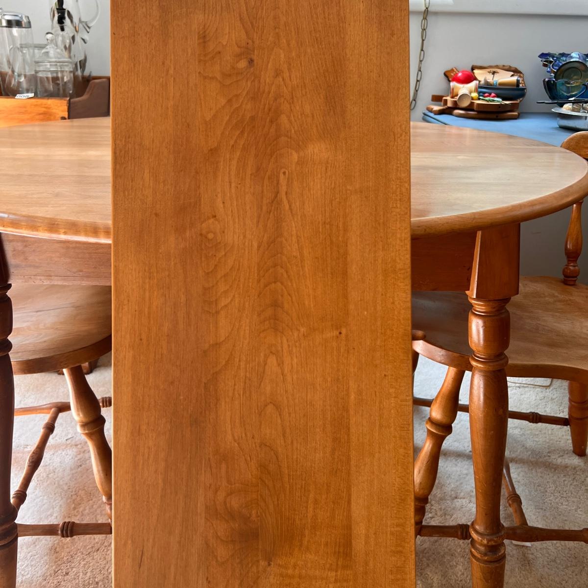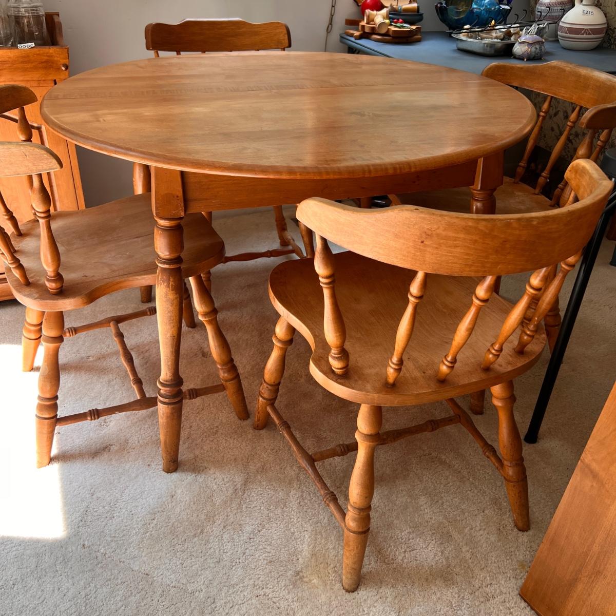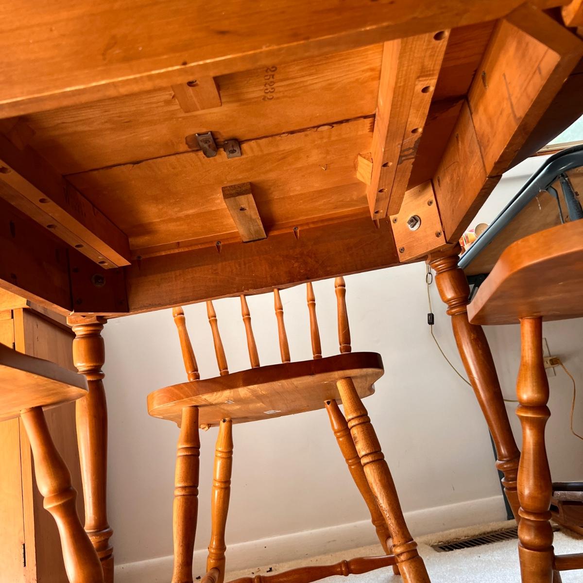 Maple extendable table with 4 chairs. Solid piece! Shows some wear as shown in pictures but otherwise great condition.