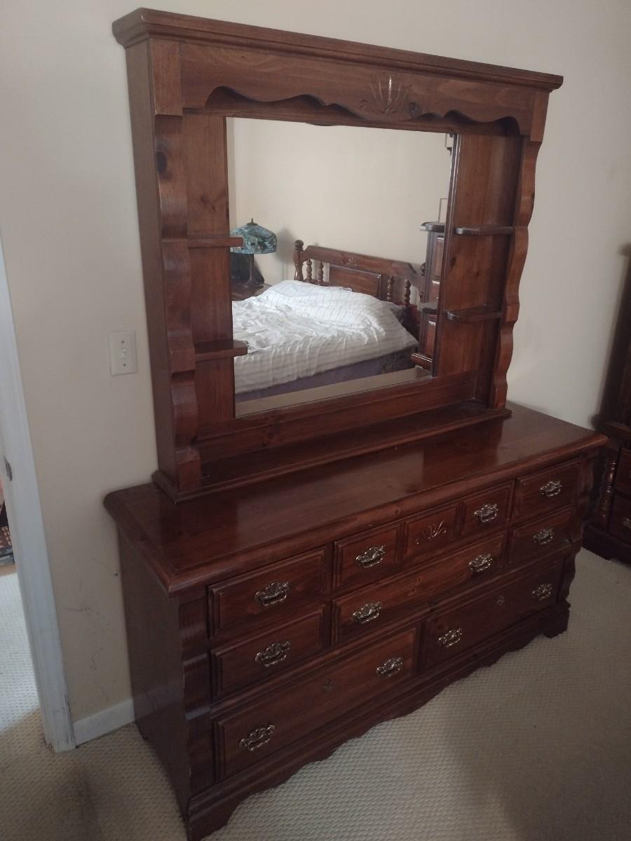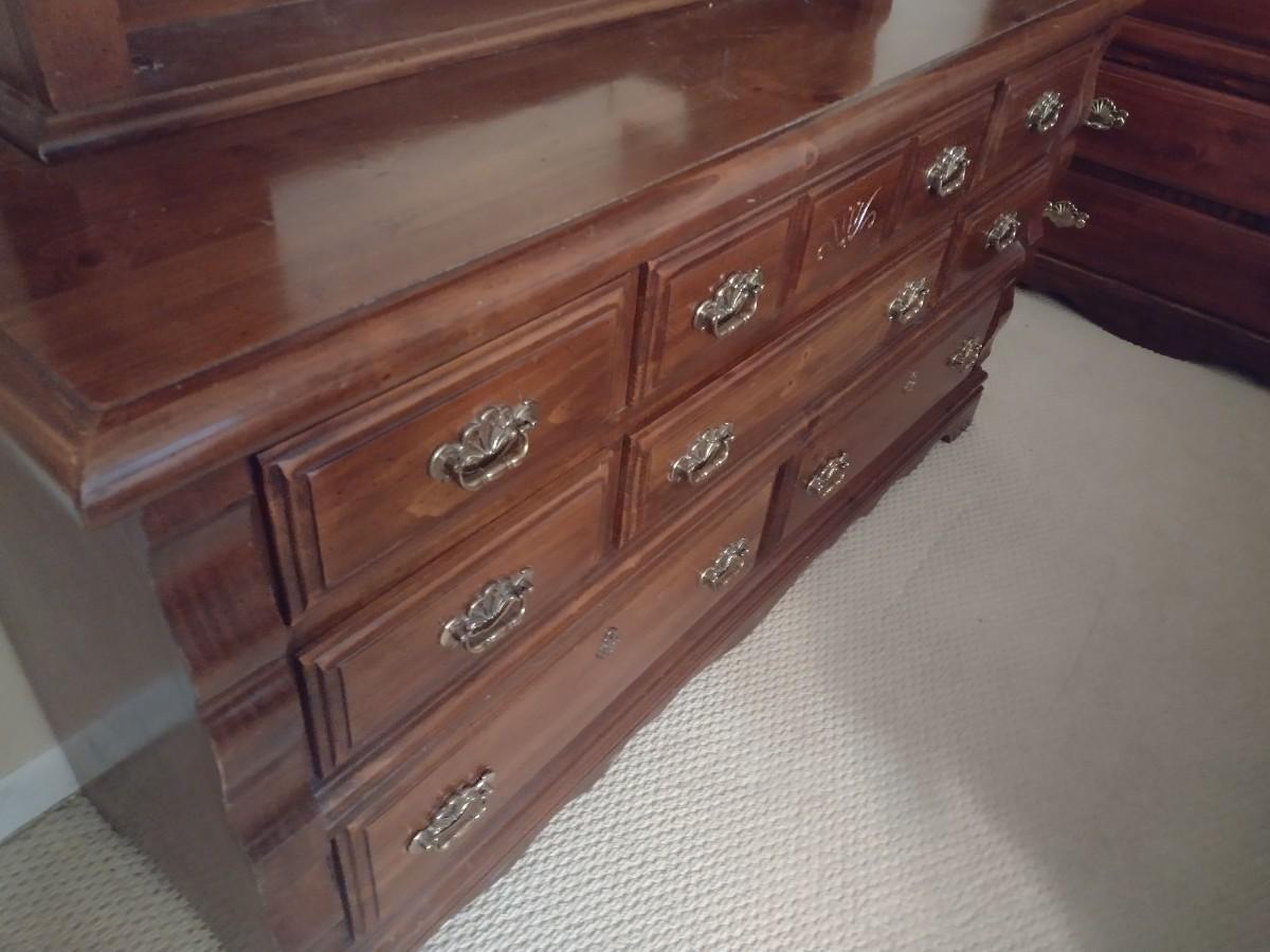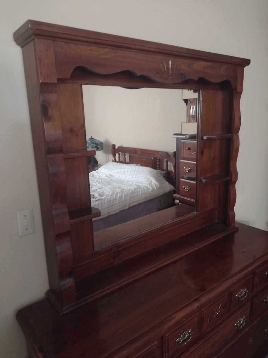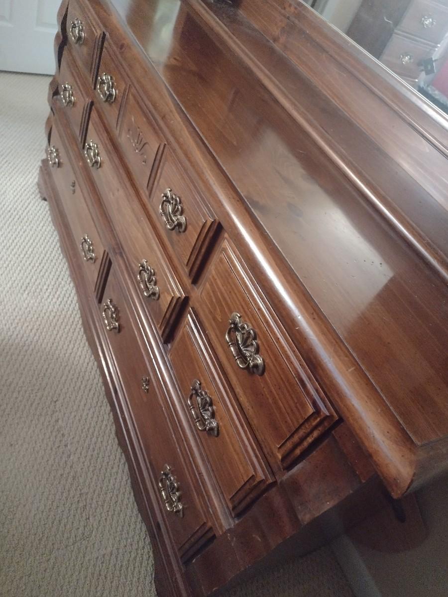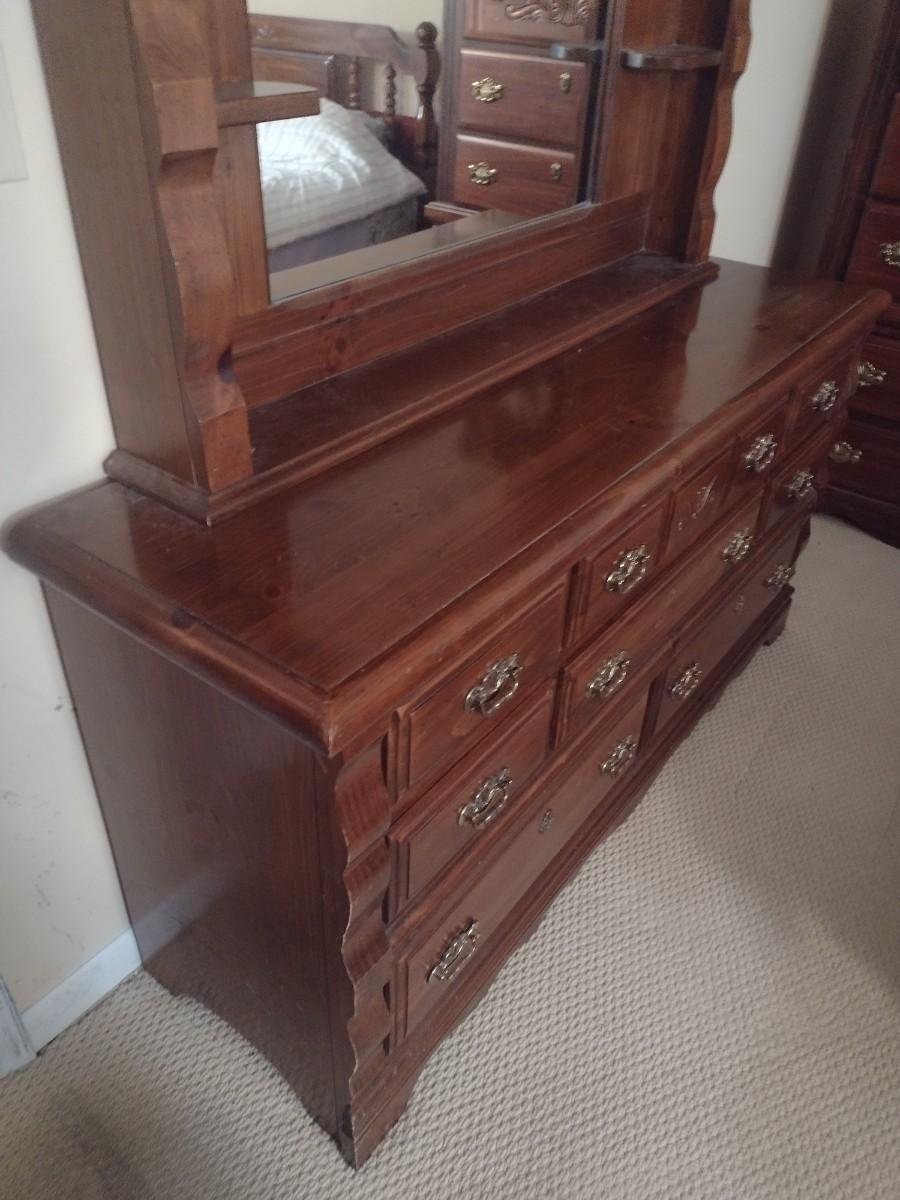 Solid Wood Walnut Dresser with Mirror
