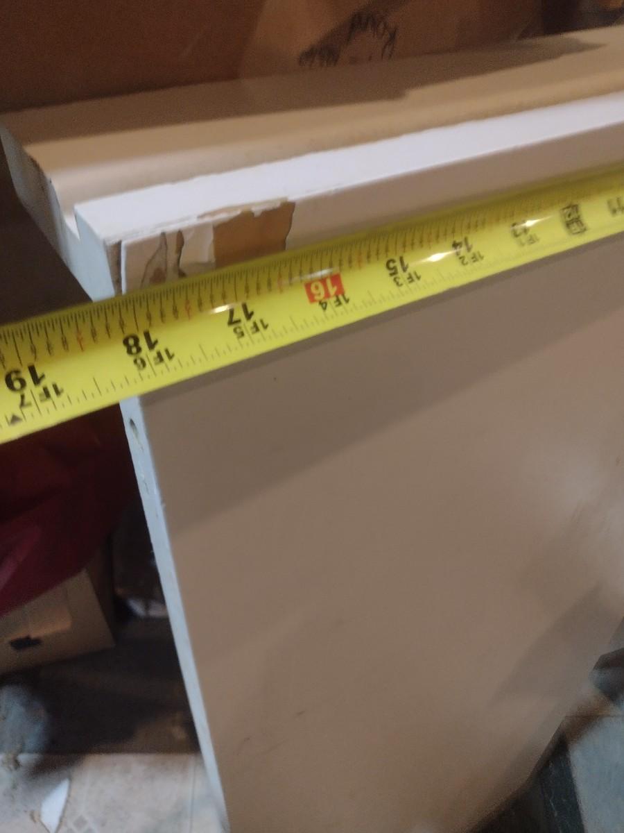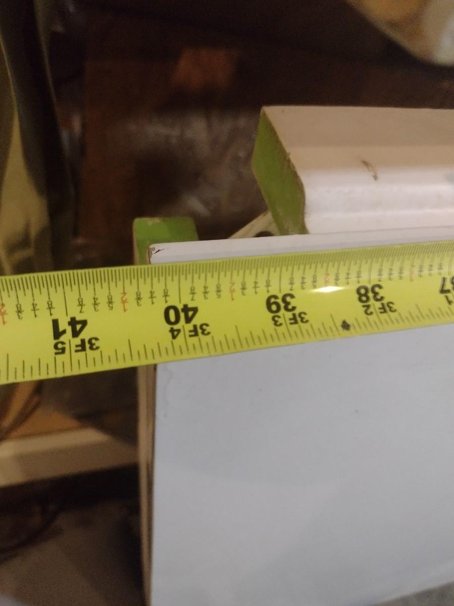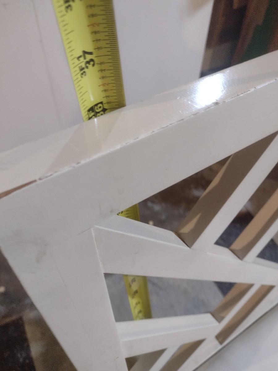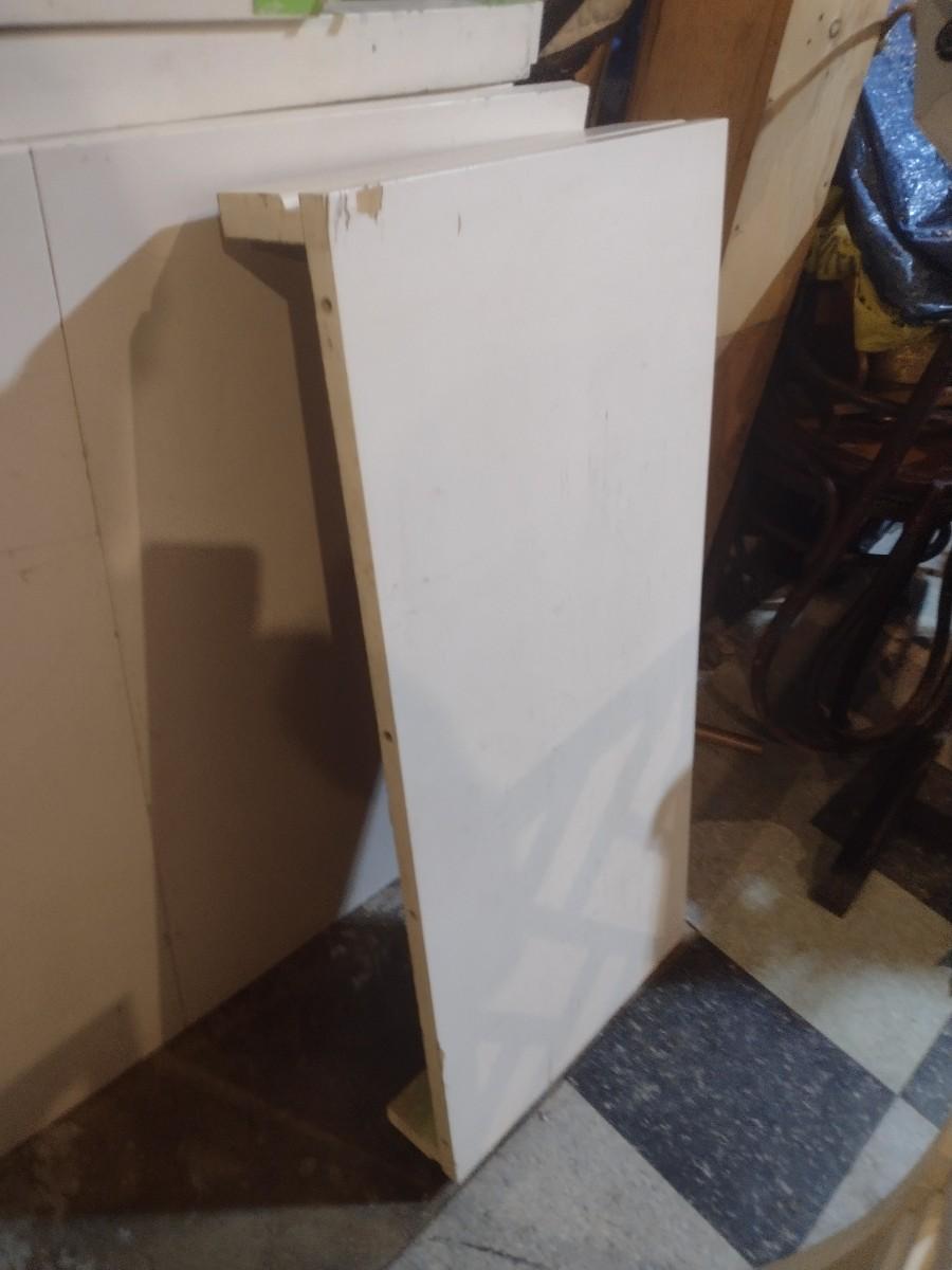 Solid Wood White Finish Table and Four Matching Chairs legs have been removed for storage. Table has leaf. Chair seat are upholstered vinyl