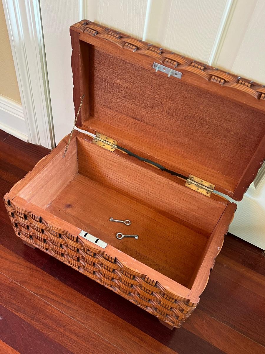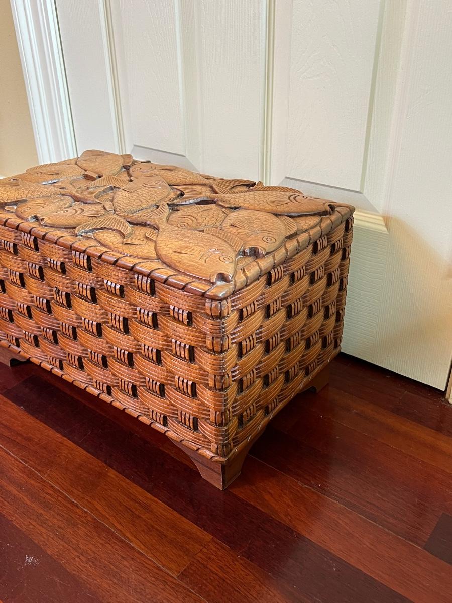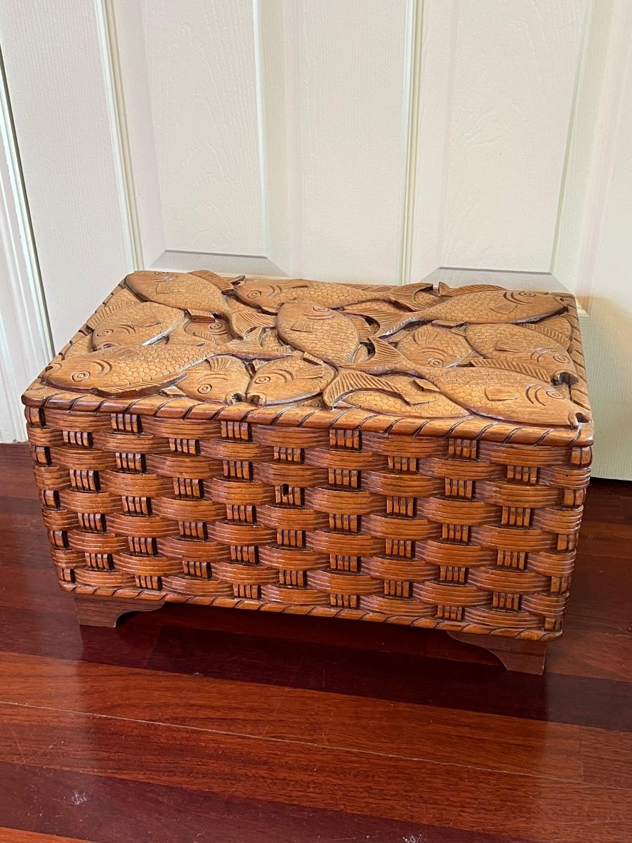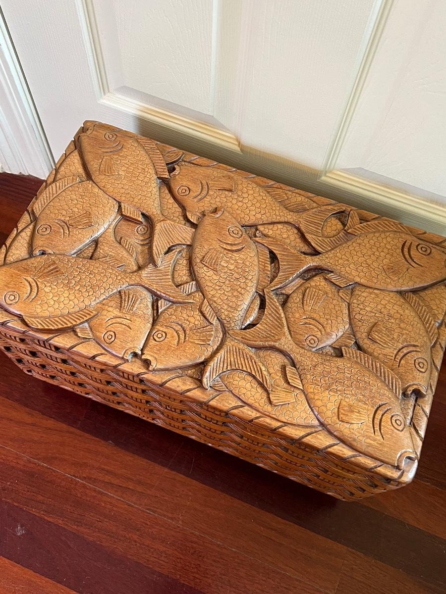 Solid Wood Hand Carved Fish Wicker Style Storage Box