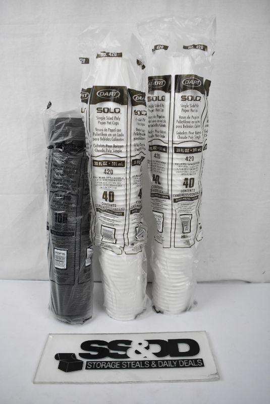 Solo Paper Hot Cups, White, 20 oz, Qty 80 & 100 Black Lids - New