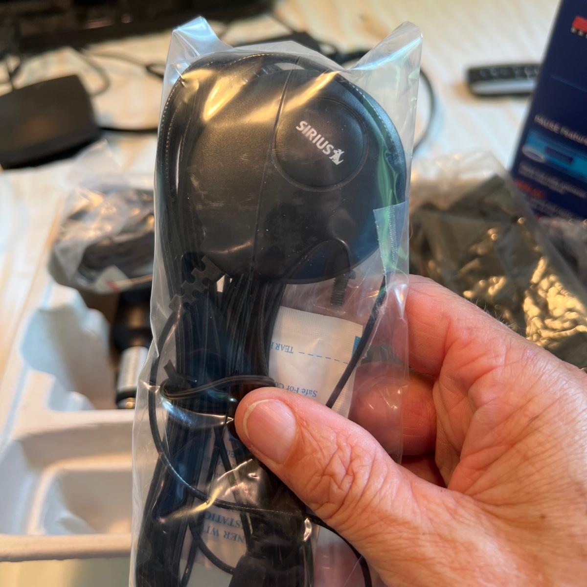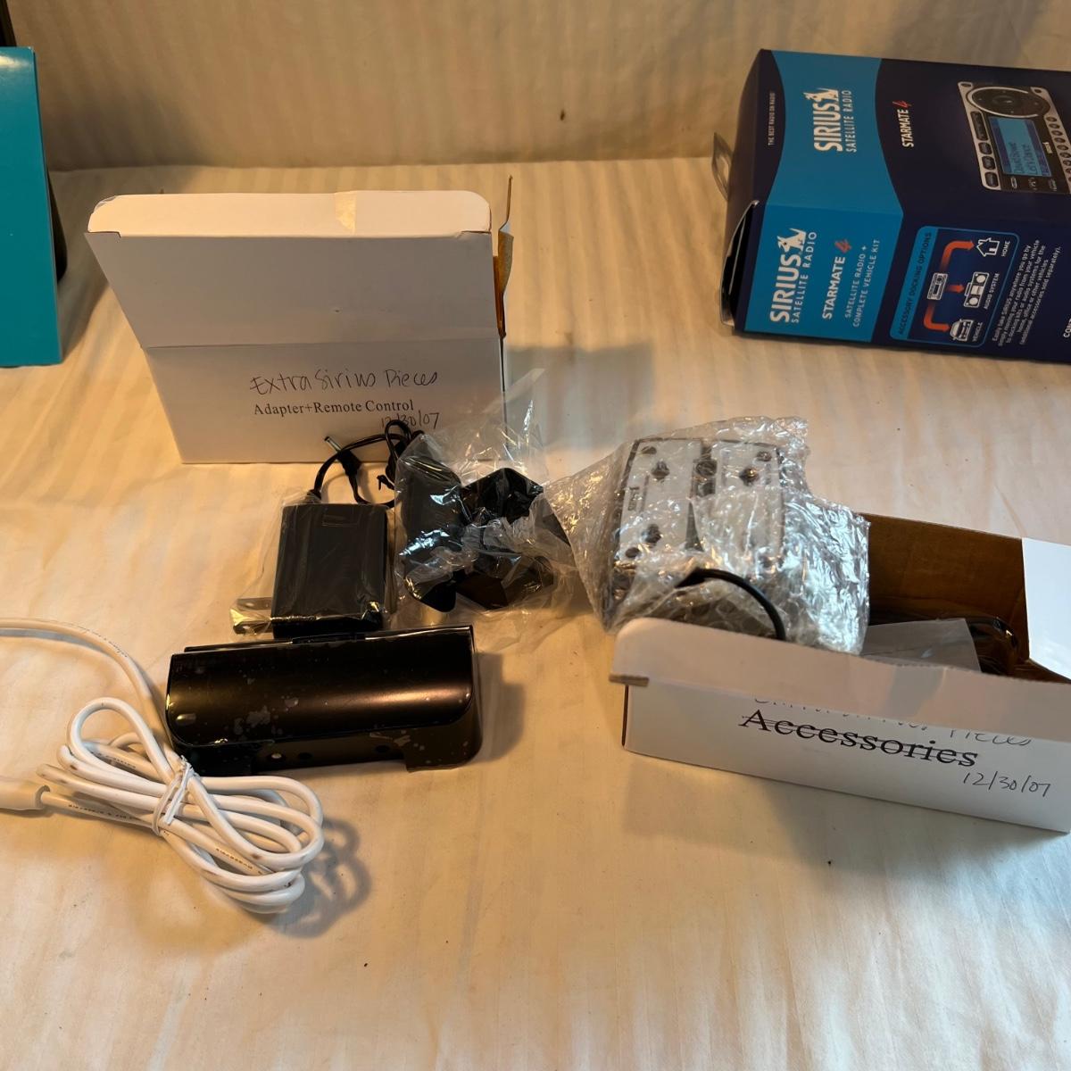 This soloist sound system has a dock for the accompanying Sirius satellite radio which both powered on when plugged in. There are remotes for both plus one used and one new antenna and more.