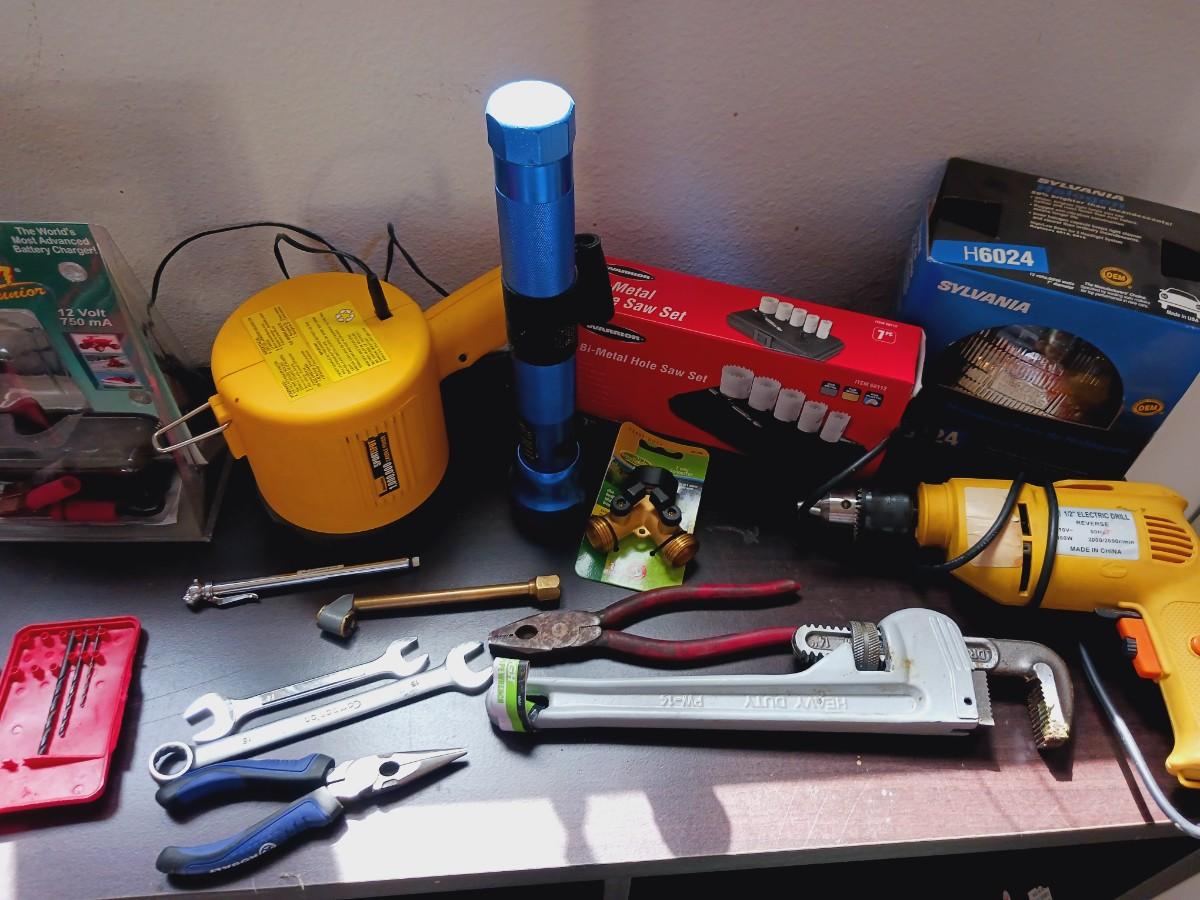 SOME HAND TOOLS, FLASHLIGHTS AND MORE