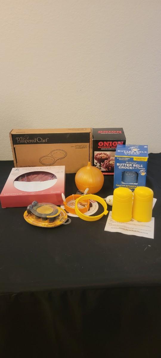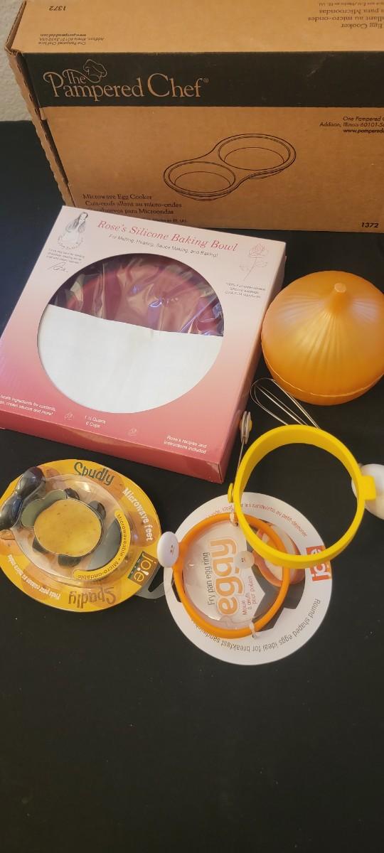 Egg related, some NIB including Pampered Chef microwave egg cooker