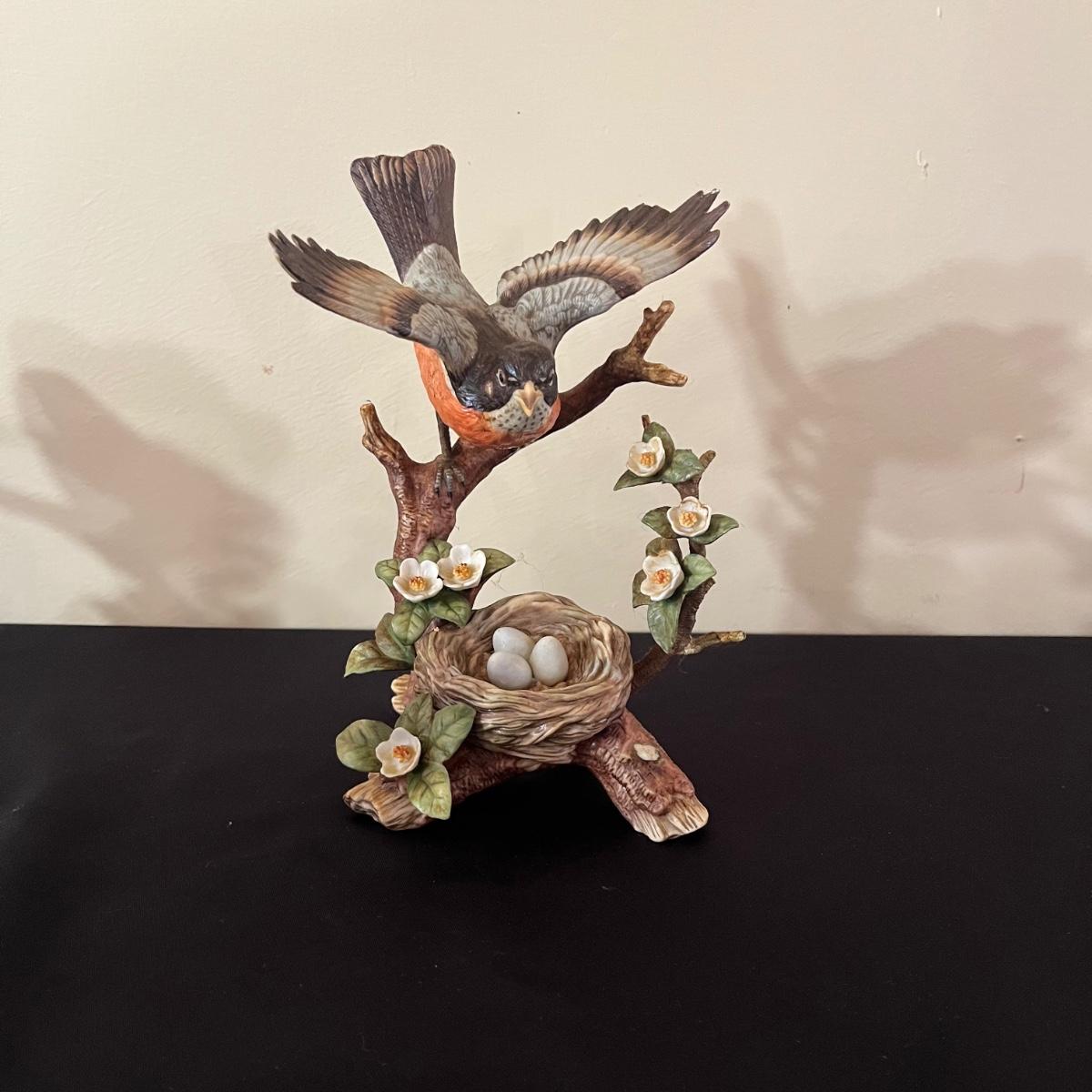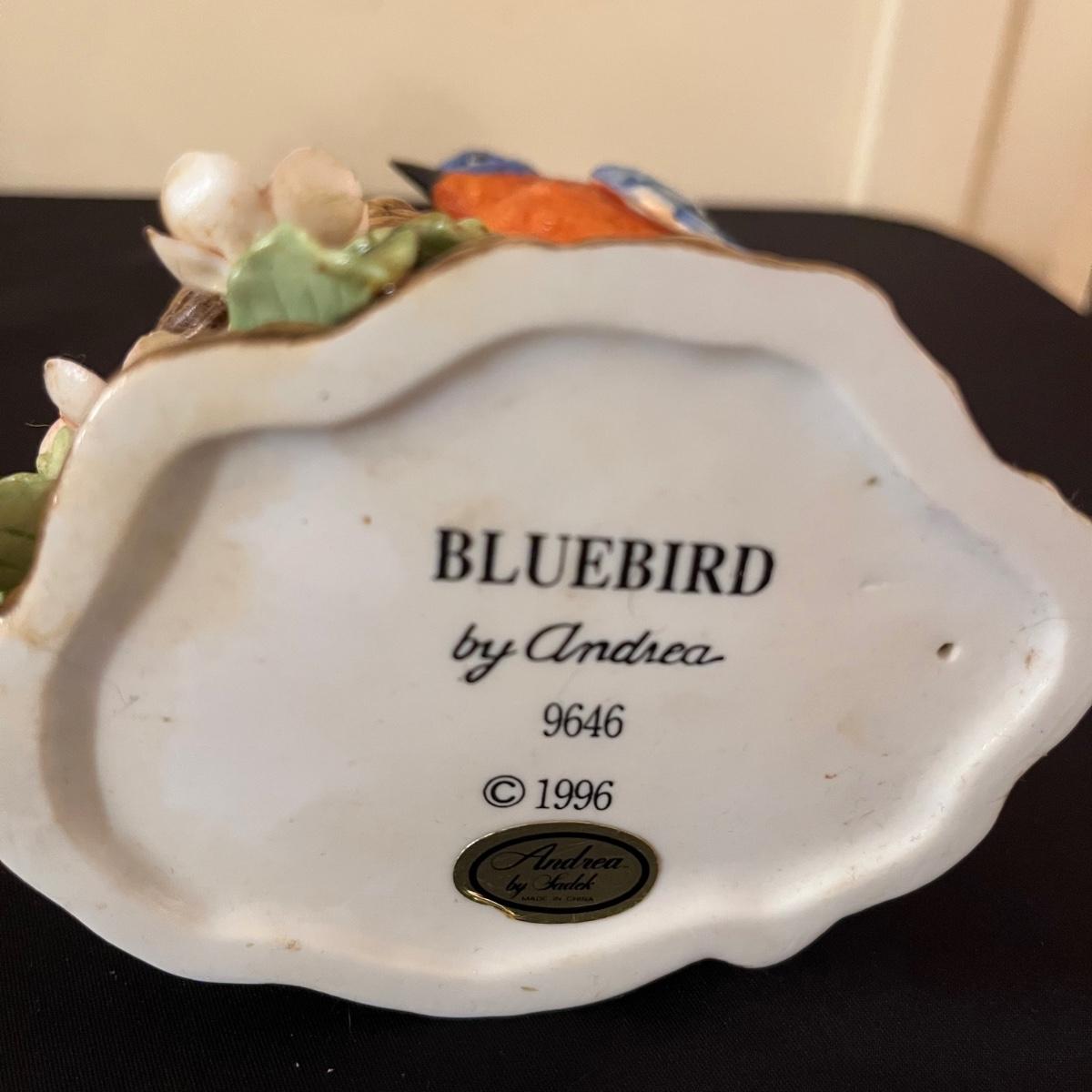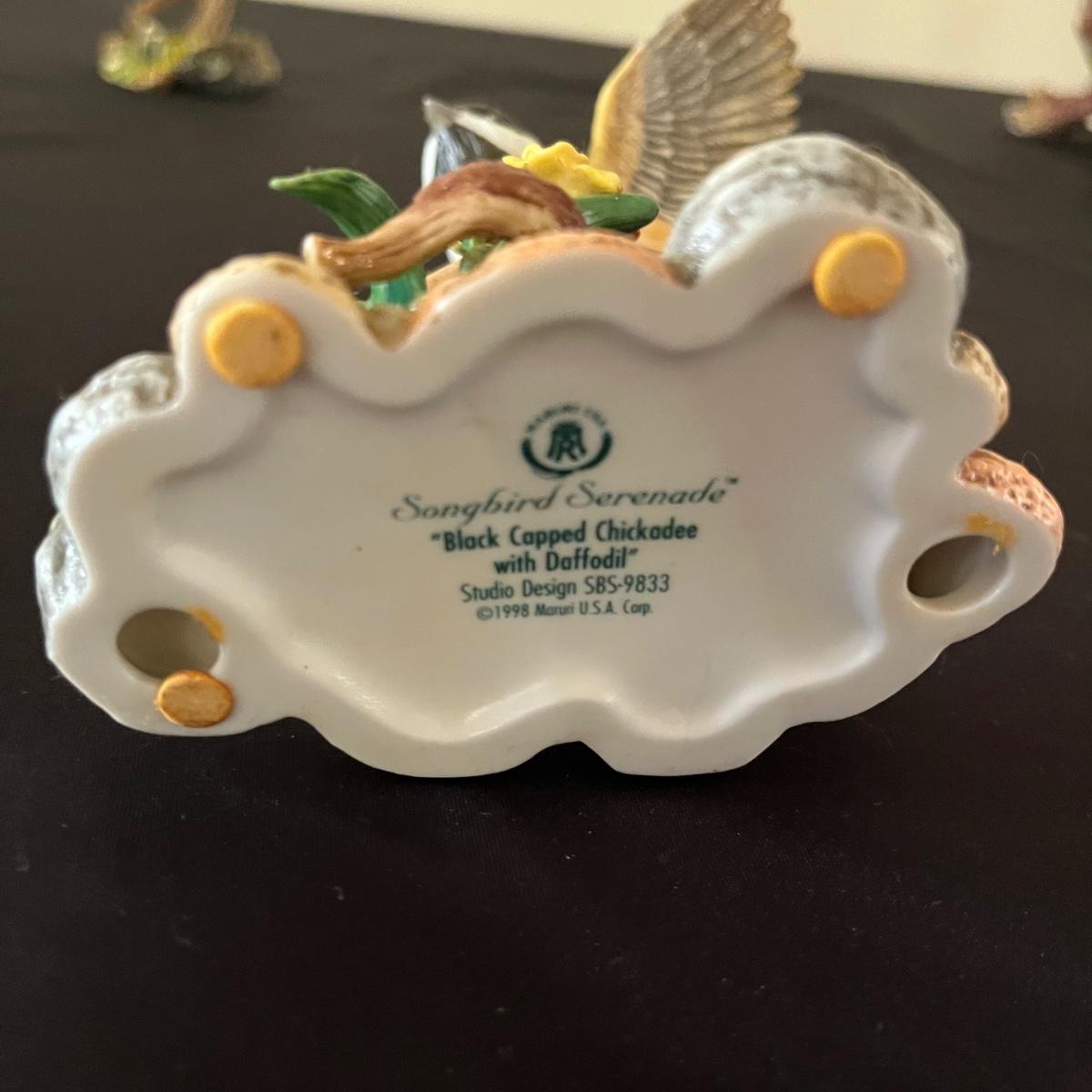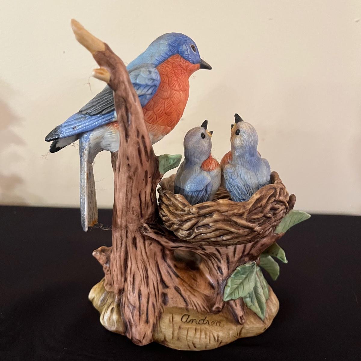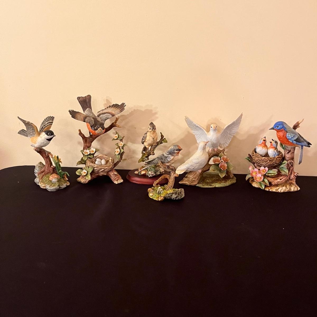 Lot includes two Songbird Seranade figurines, two Andrea by Sadek figurines, Premier figurine and a unmarked figurine. All figurines are ceramic and the largest measures 5.5” x 6.5” x 7.5”.