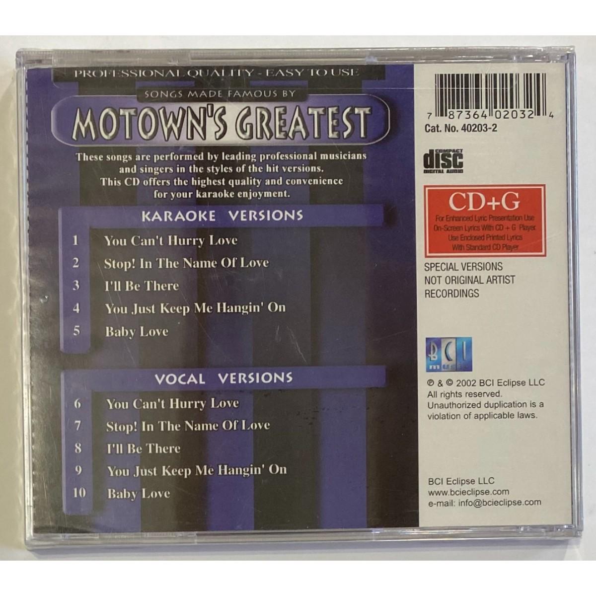 Songs Made Famous Motown's Greatest CD+G & Lyric Sheet. New. Label Code: 40203-2
