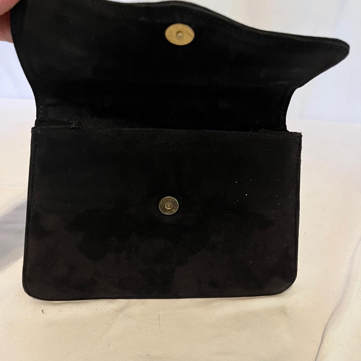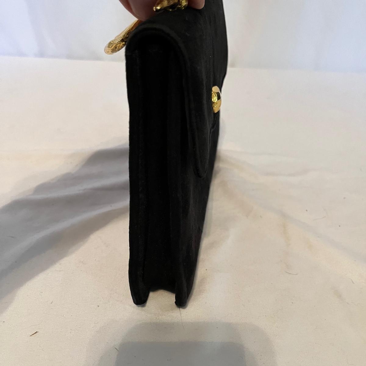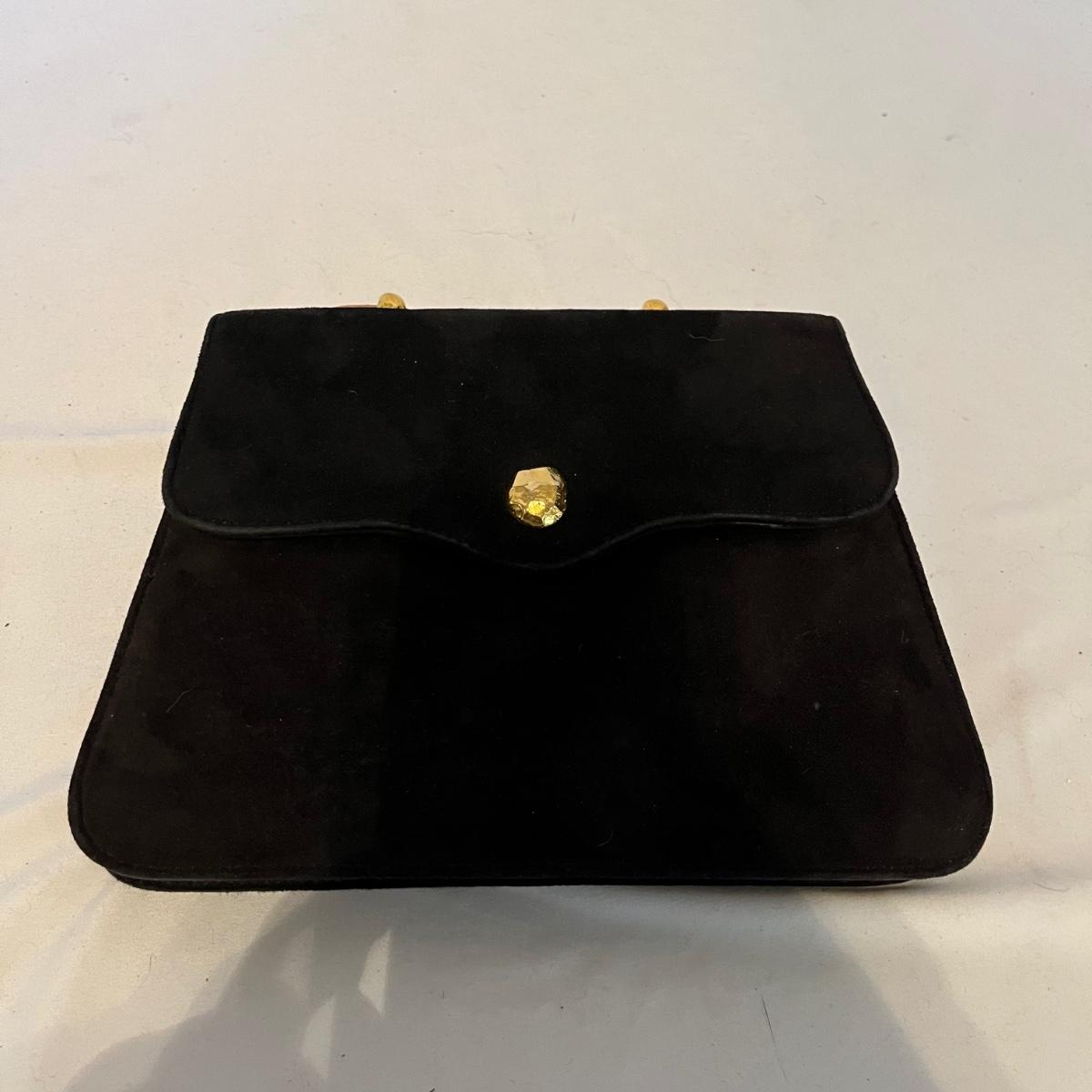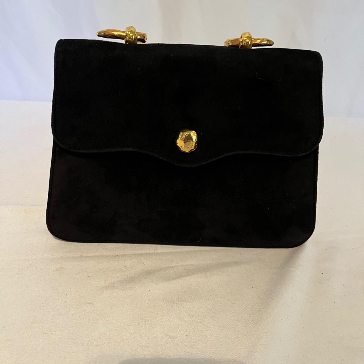 Lot includes a black suede Sonia Rykiel handbag with metal handle. Bag measures 1.5” x 8.75” x 6.5” not counting handle.