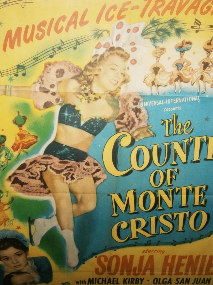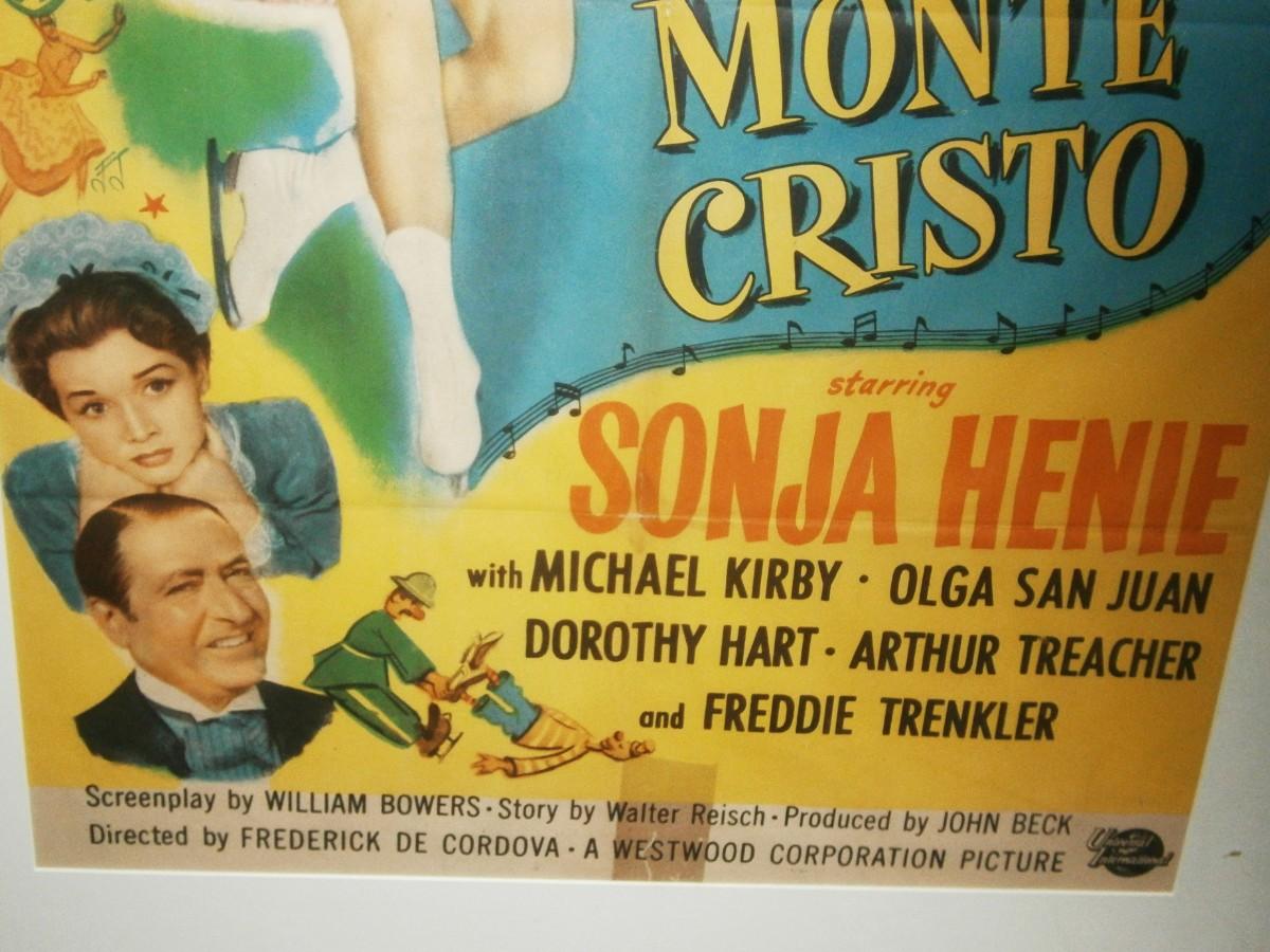 PICK-UP ONLY Sonja Heine in "The COUNTESS OF MONTE CRISTO" 1948 Movie Poster, "An ice-skating Norwegian barmaid (Sonja Henie) and her girlfriend (Olga San Juan) pose as a countess and her maid at a posh resort." - Google "Sonja Henie was a Norwegian figure skater and film star. She was a three-time Olympic champion in women's singles, a ten-time World champion and a six-time European champion. Henie has won more Olympic and World titles than any other ladies' figure skater." - Wikipedia Frame measurements are 47 1/2 x 33 in. PICK-UP ONLY by Appointment. Located in Port Ewen, NY 12466