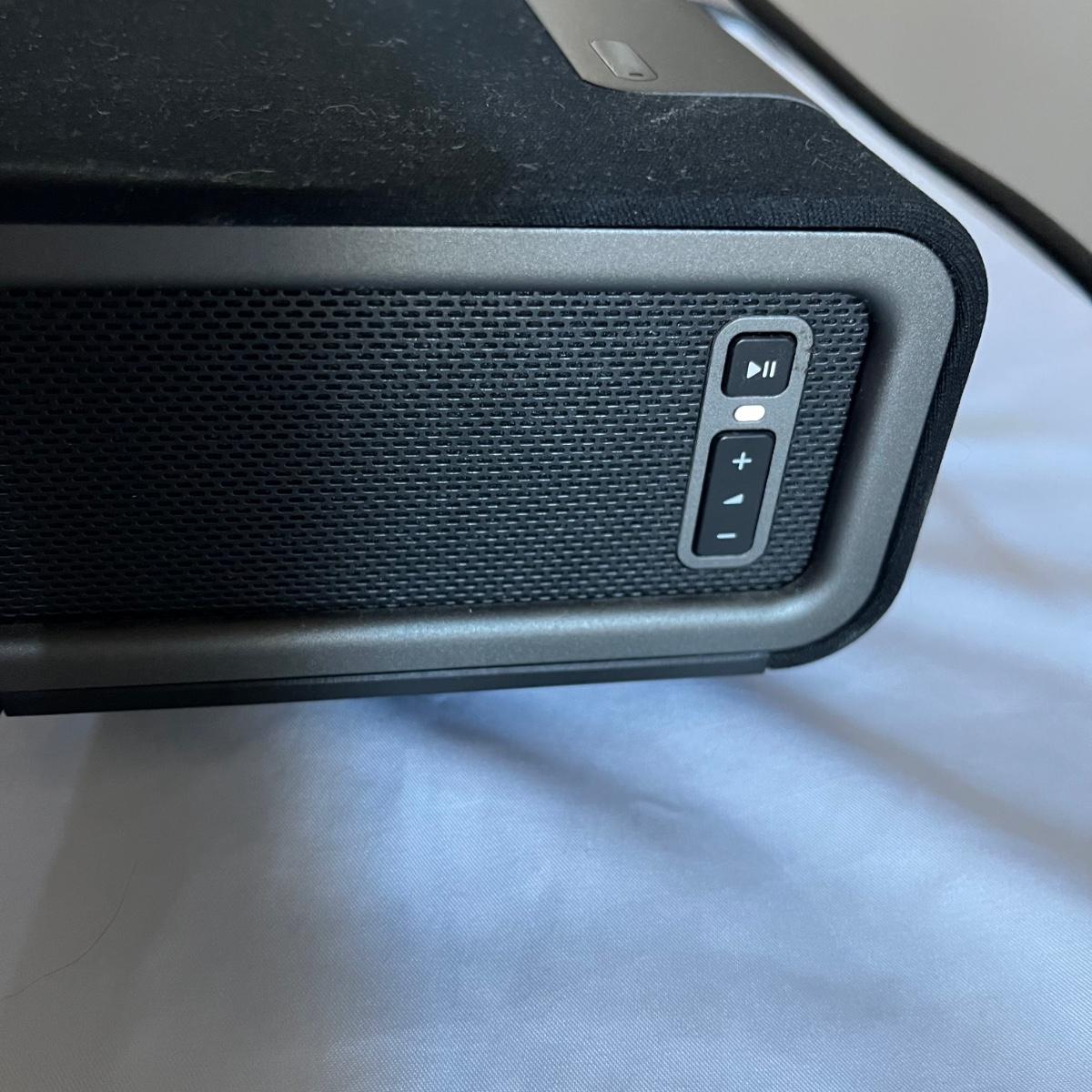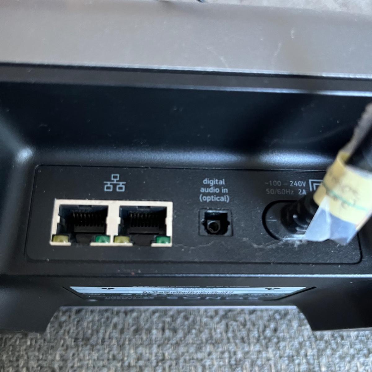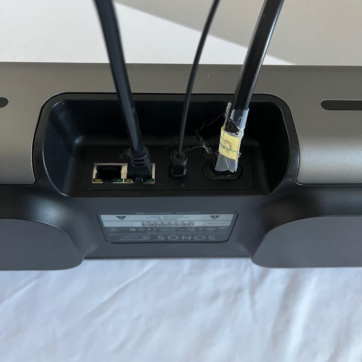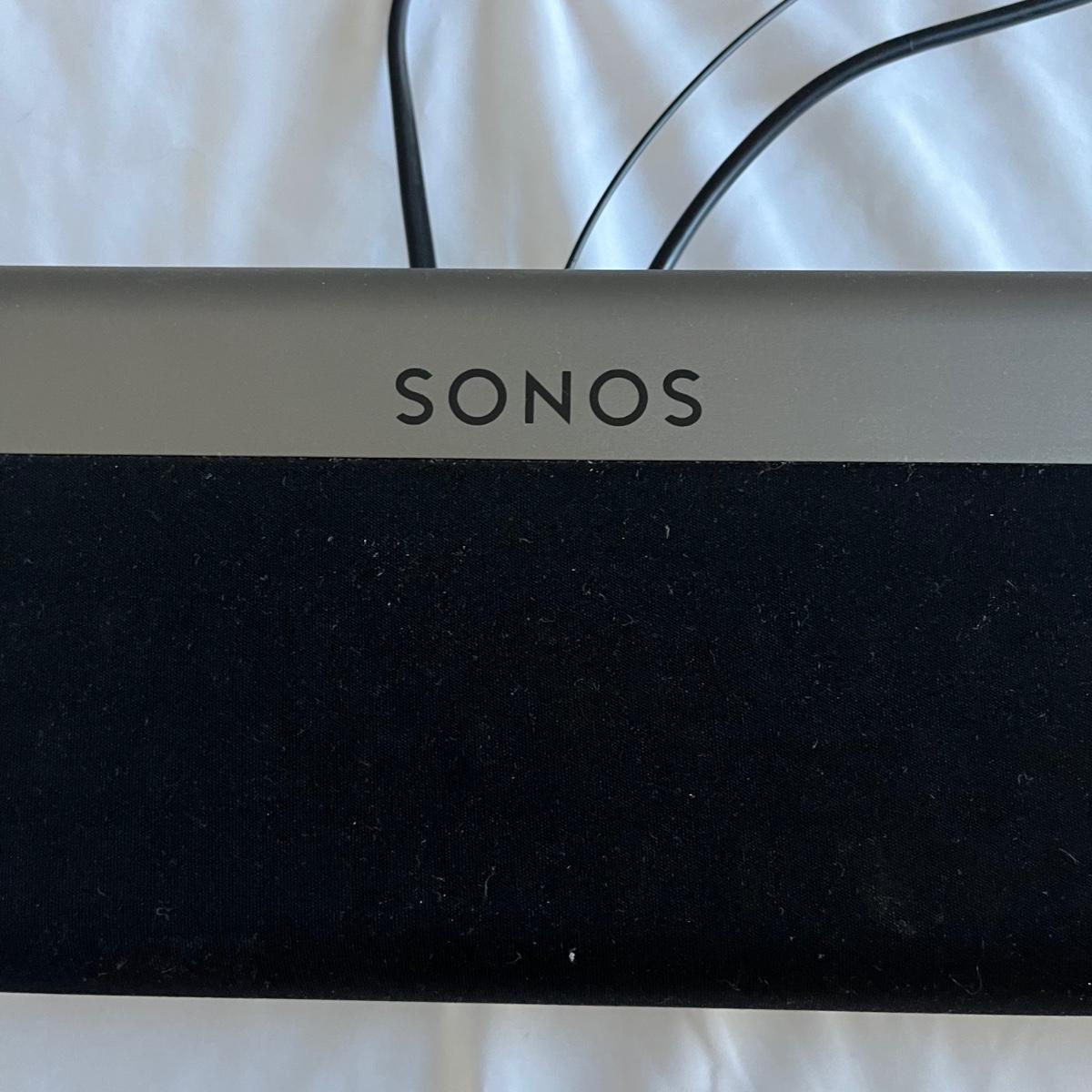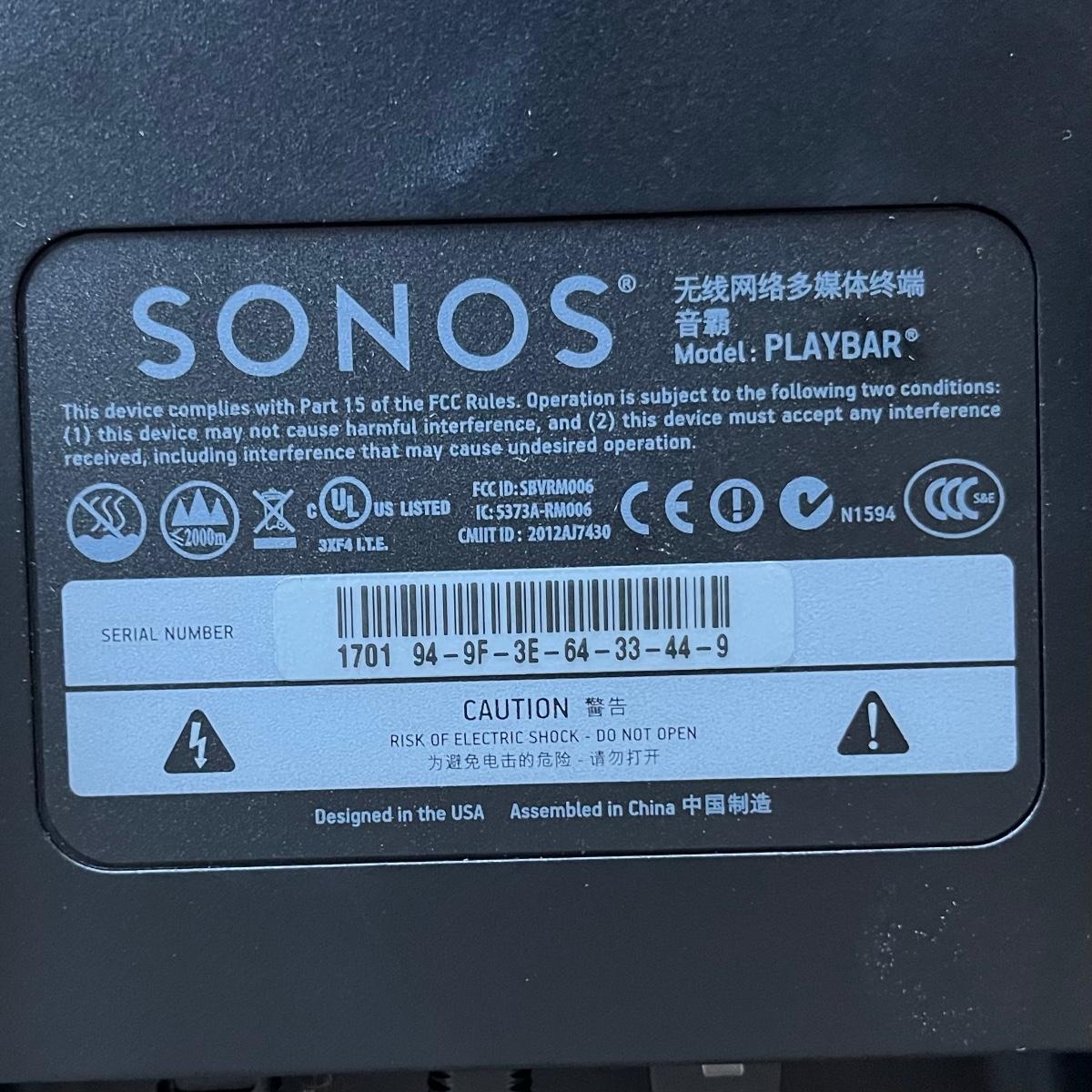 Lot includes a Sonos Soundbar model PLAYBAR. Unit worked when tested. Soundbar connects to TV with digital audio in cable and Ethernet cable. Soundbar measures 5.5” x 36” x 3.5”.