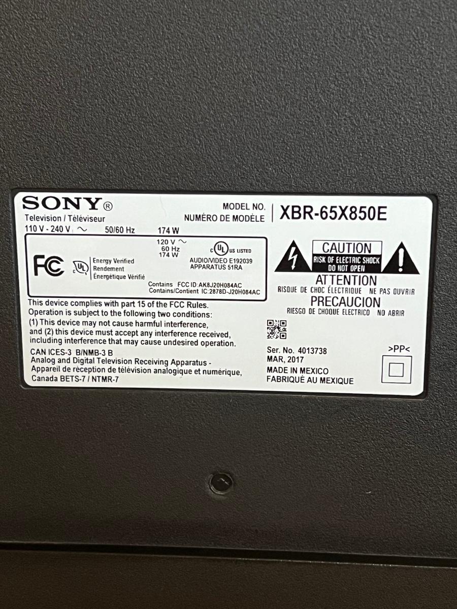 SONY ~ 65” Smart TV ~ *Photo shown has TV on Wall Mount