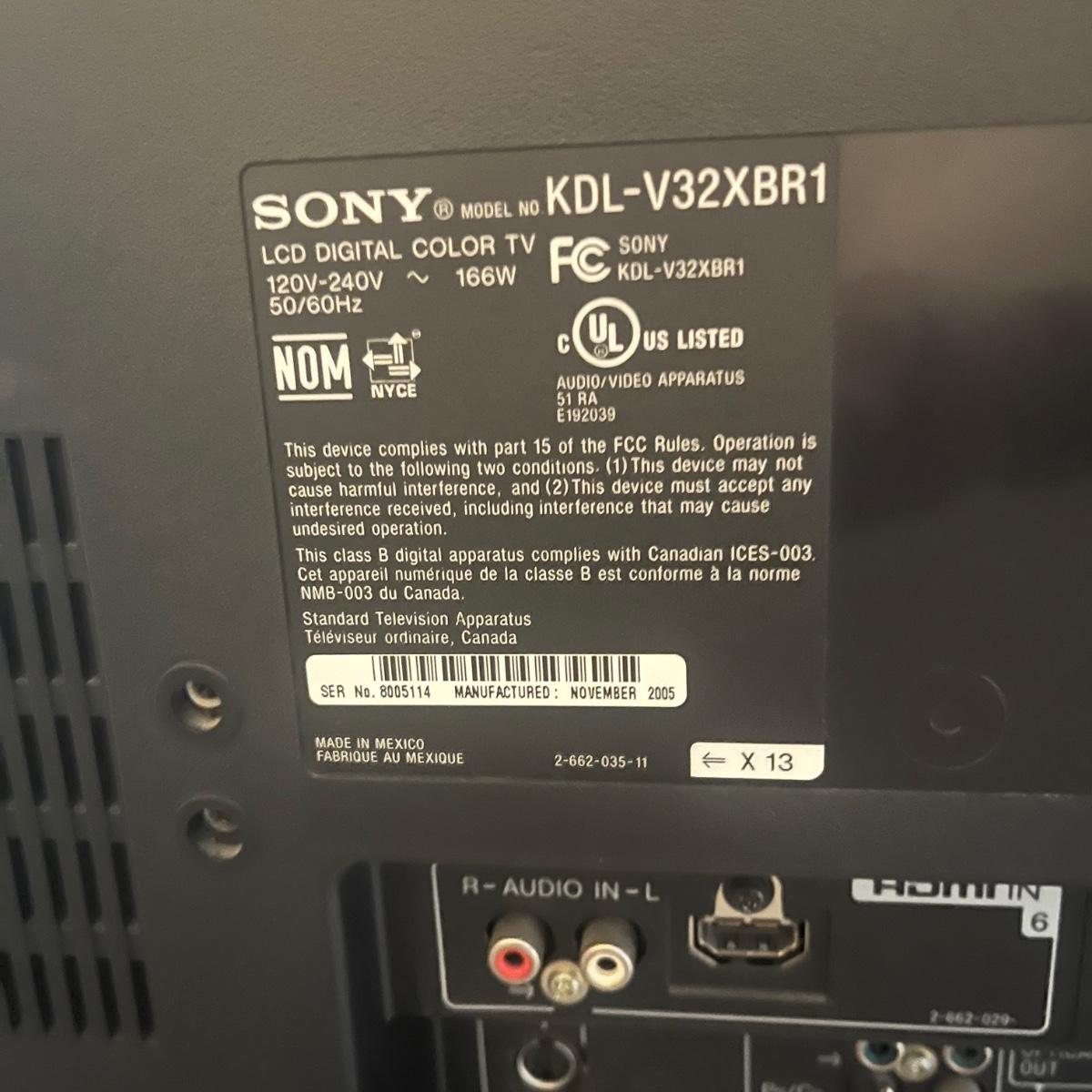 Lot includes a Sony 32”LCD TV with remote. TV powered on when plugged in. Local Pickup Only. Item is located up one flight of stairs.