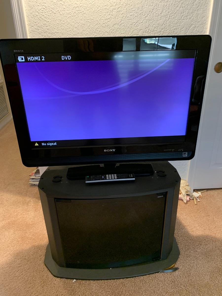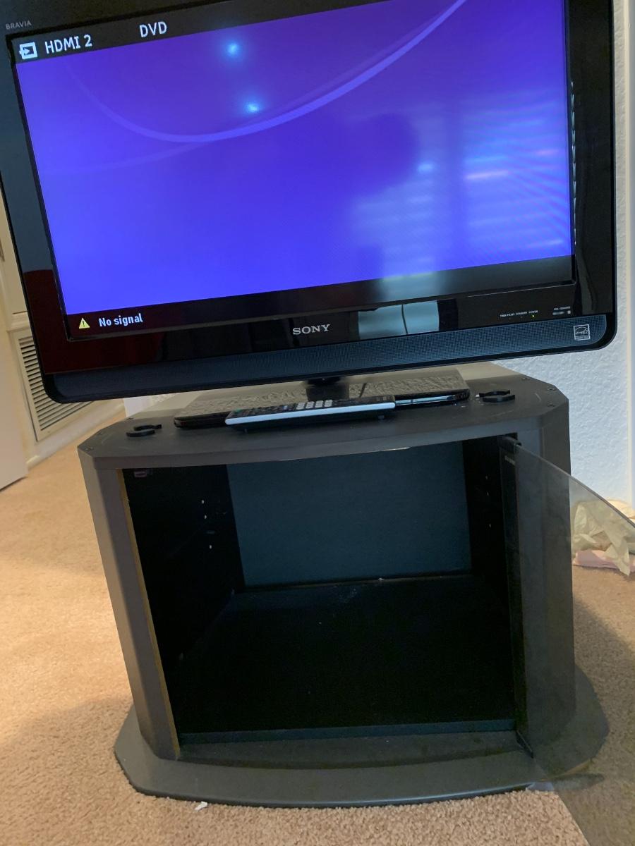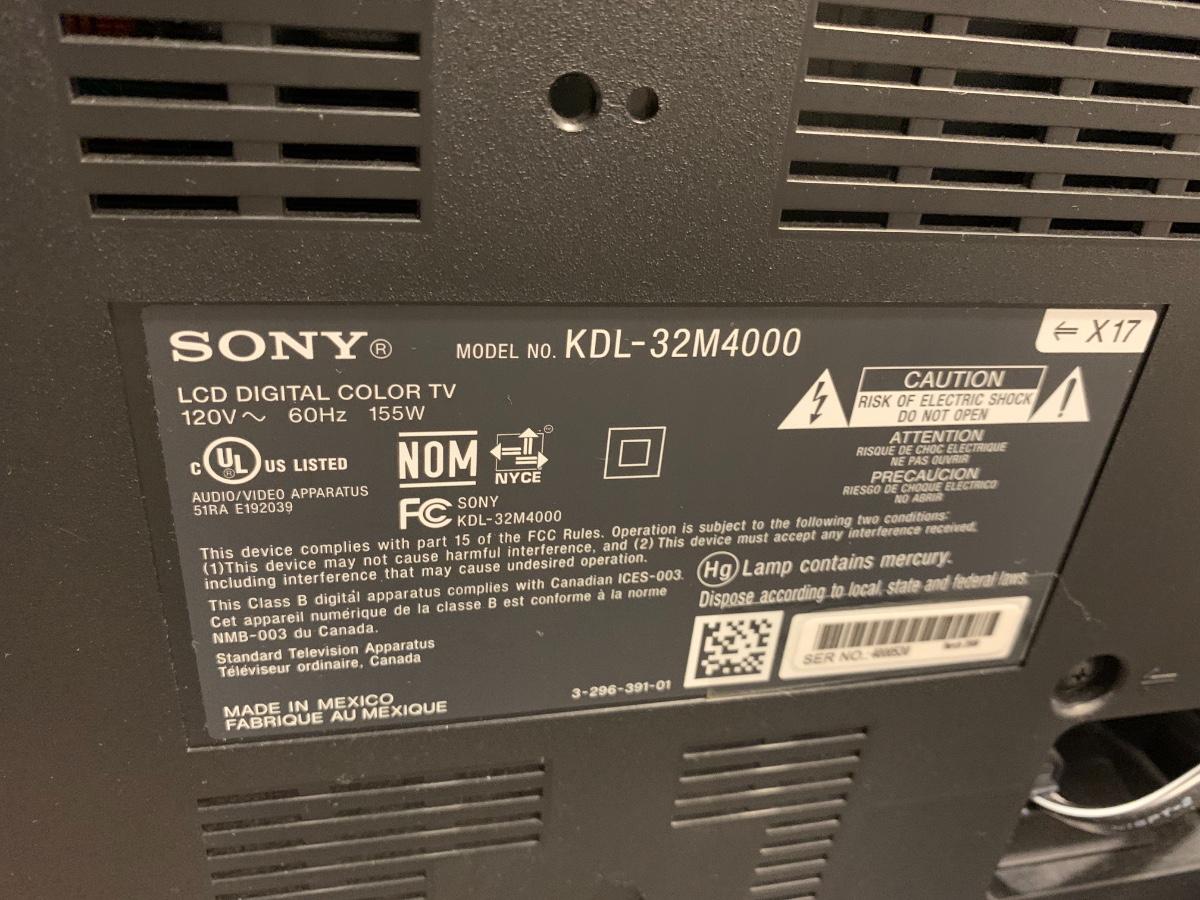 Lot includes 32 inch Sony Bravia tv (in working condition) and Sony TV (model SU-27 A4) stand with manual.
