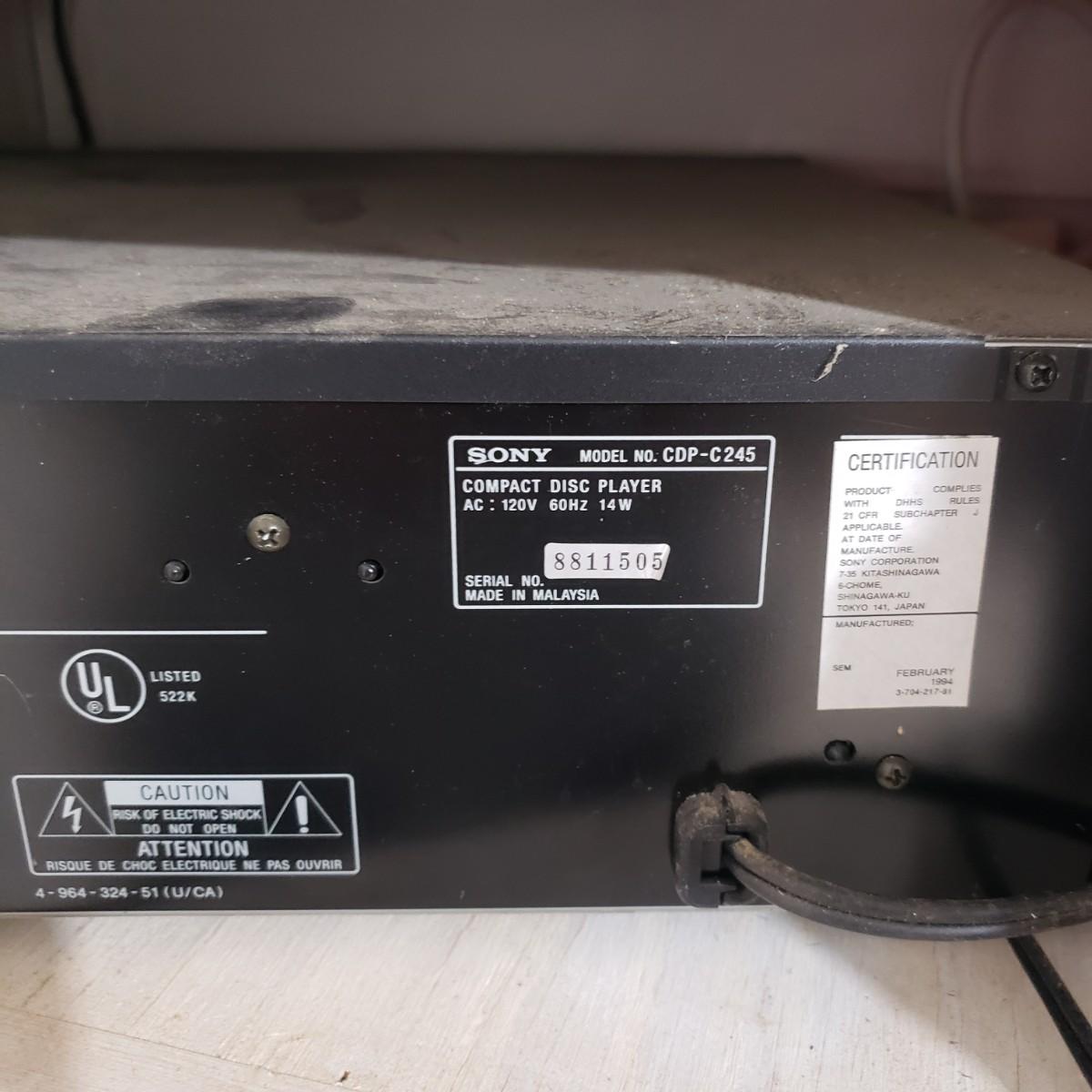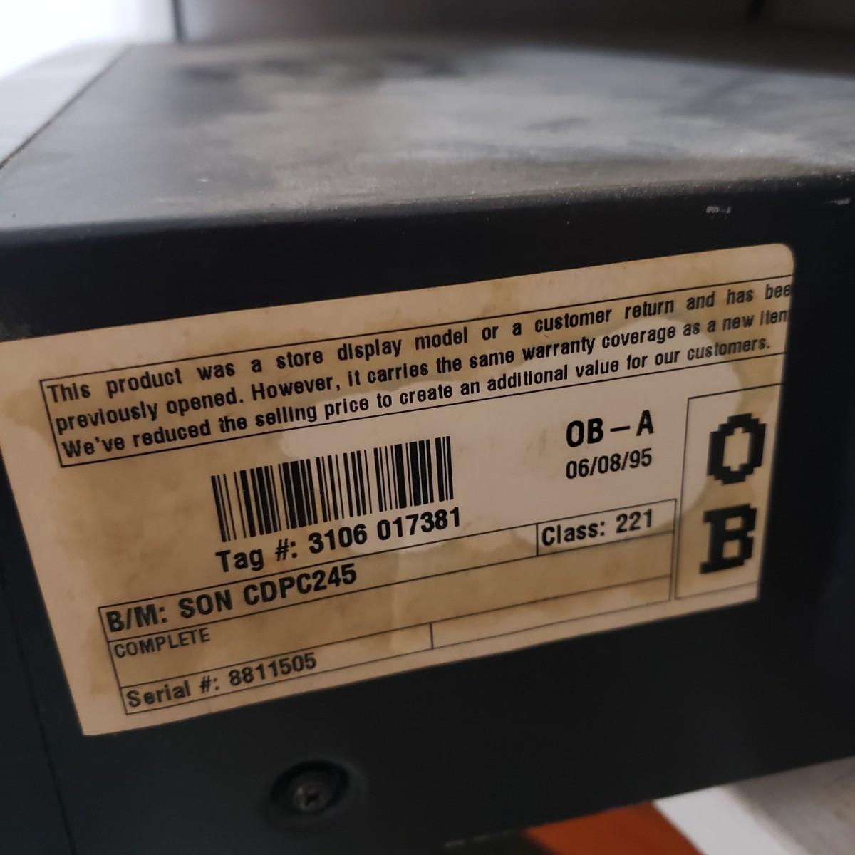 This is a Sony 5 disc CD Player with it's original owners manual. The unit powered on when plugged in. See pictures for details.