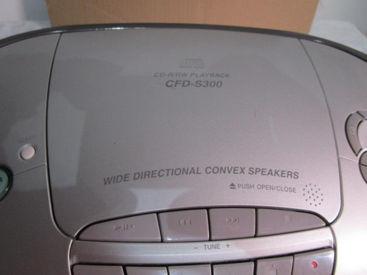 Has cord & antenna, also takes 6 D batteries not included, tested & works, Model CFD-S300, has wide directional convex speakers, see pictures
