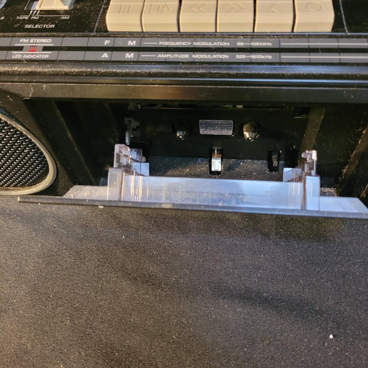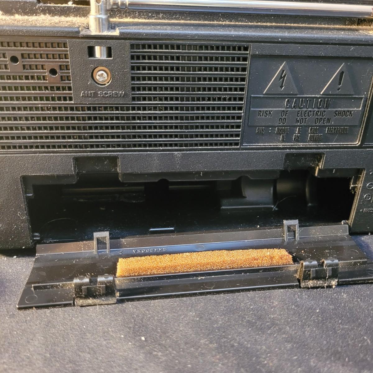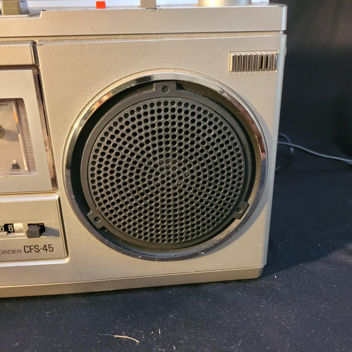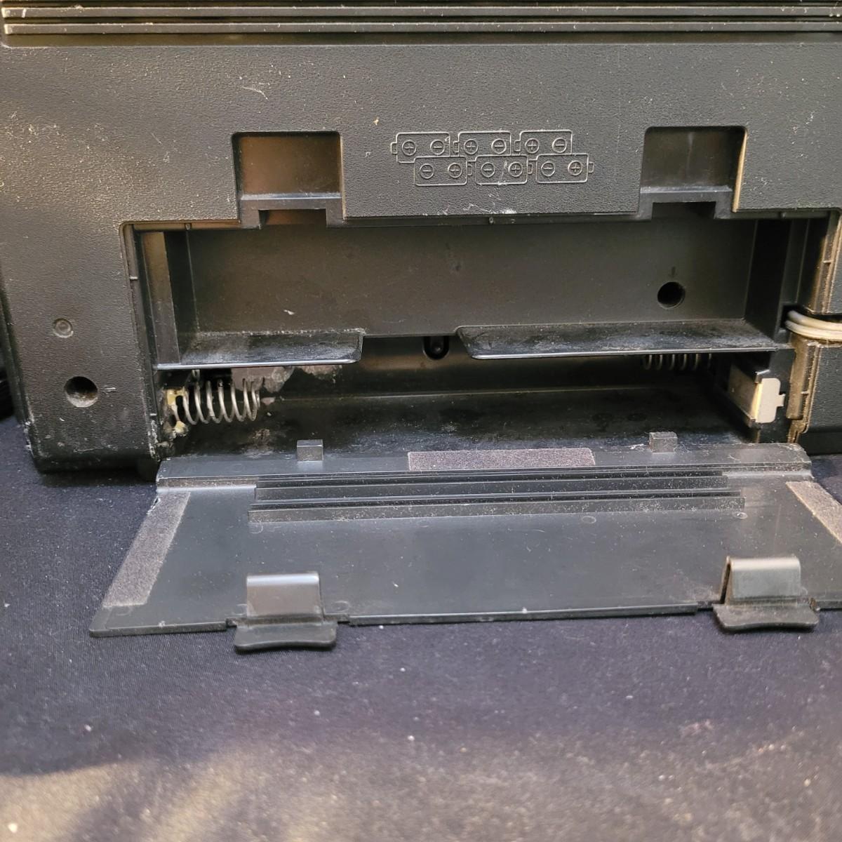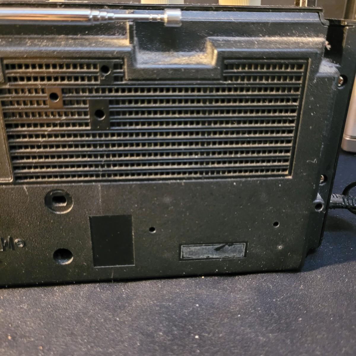 Two retro boomboxes by Sony and Panasonic. Radio played on both when powered on, but cassette players did not play when tested. Sony handle is damaged and does not stay on securely. Sony measures approximately 17” x 4.5” x 10”H, Panasonic 17” x 4” x 5”H. Some surface debris. Please see photos for details. Shipping available.