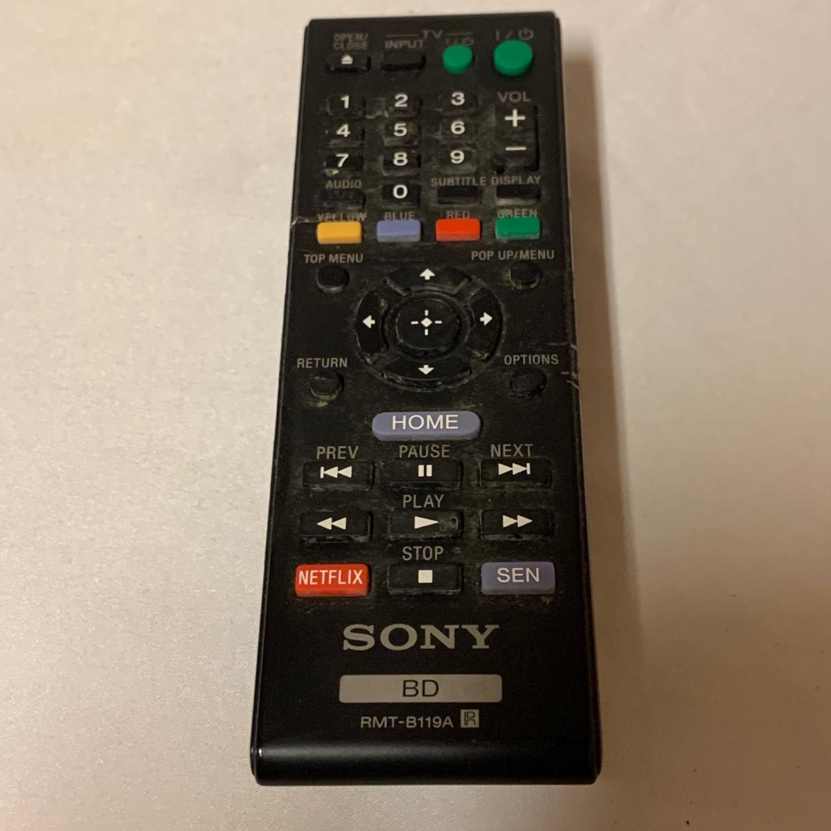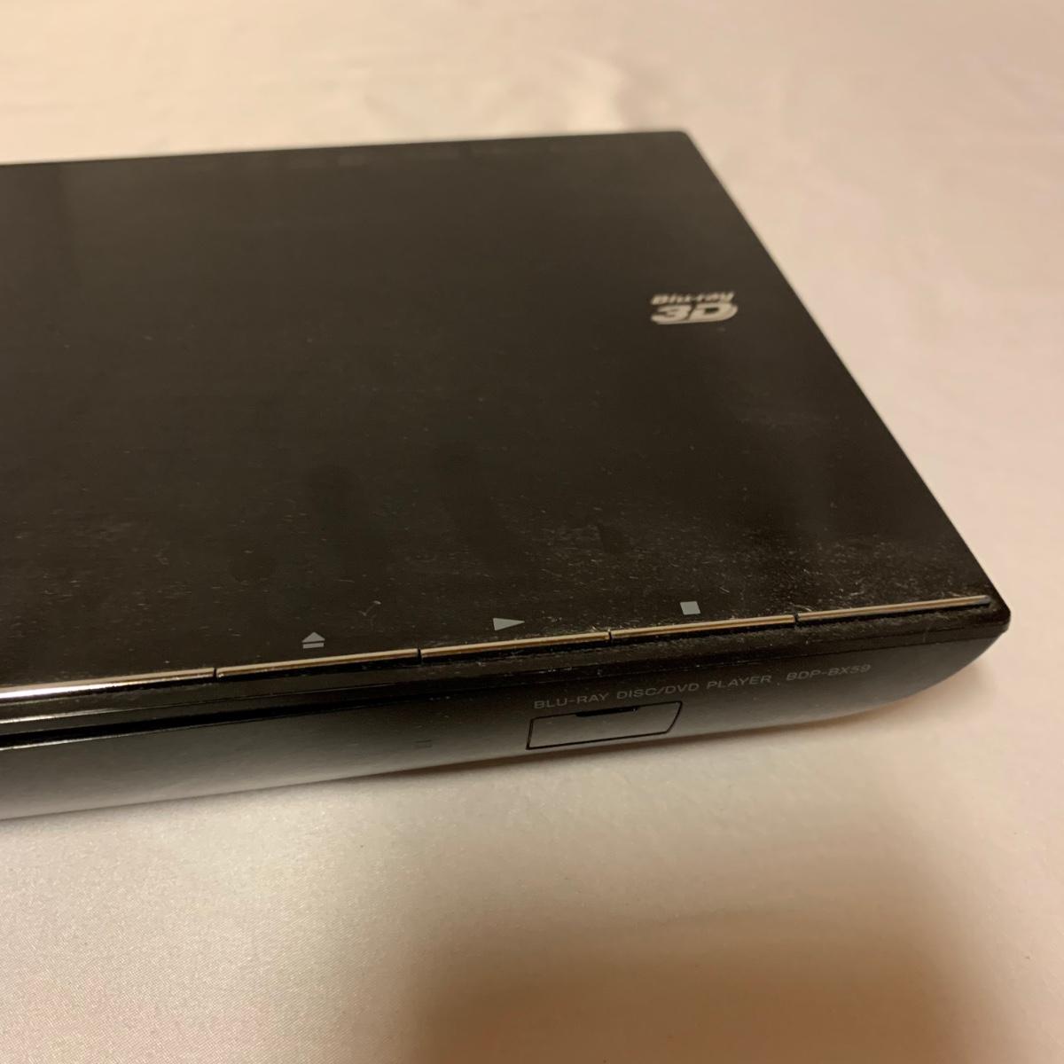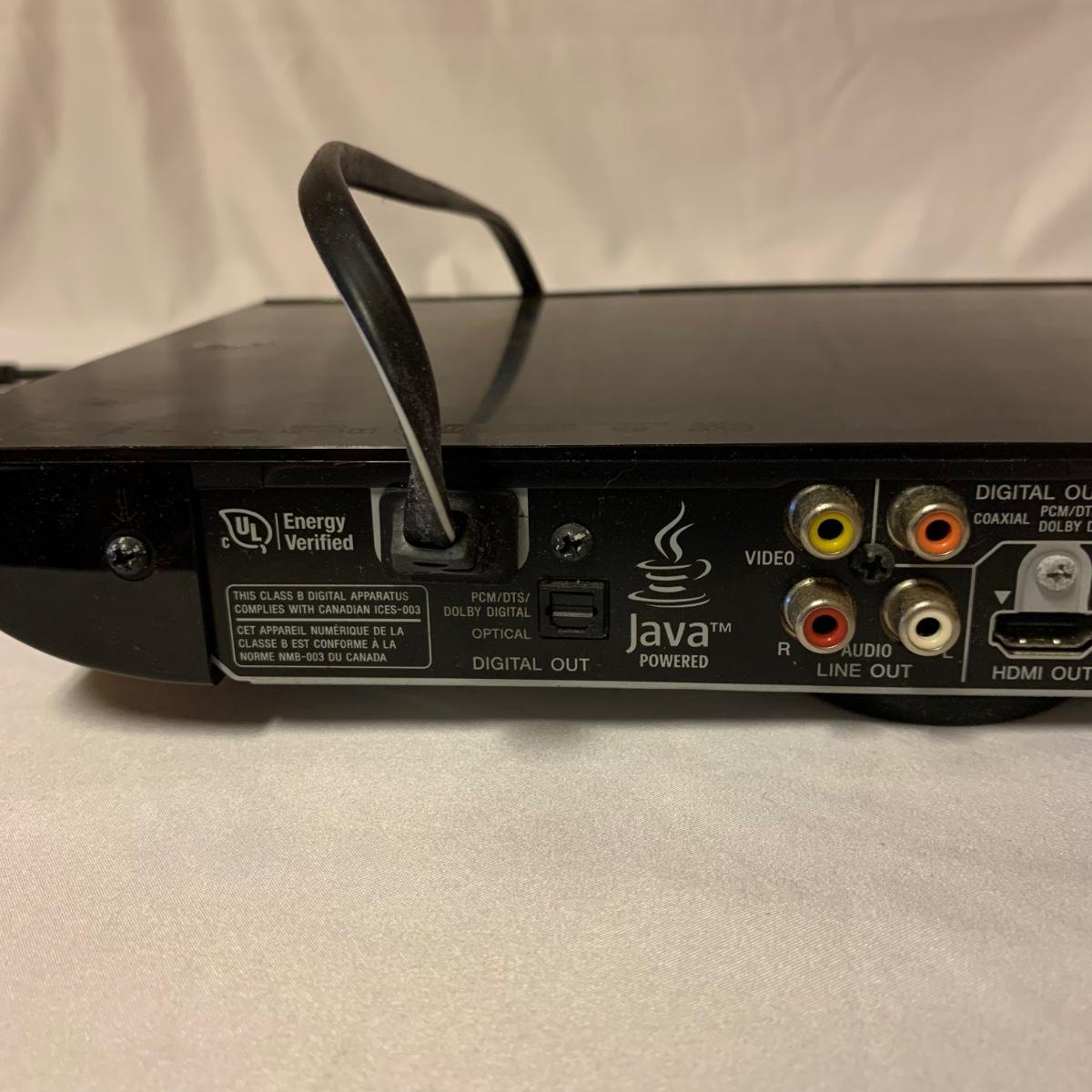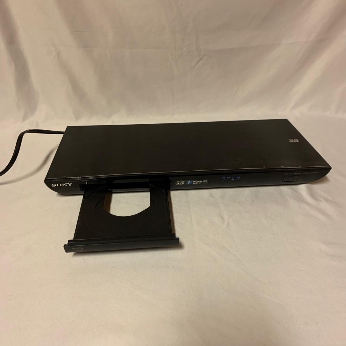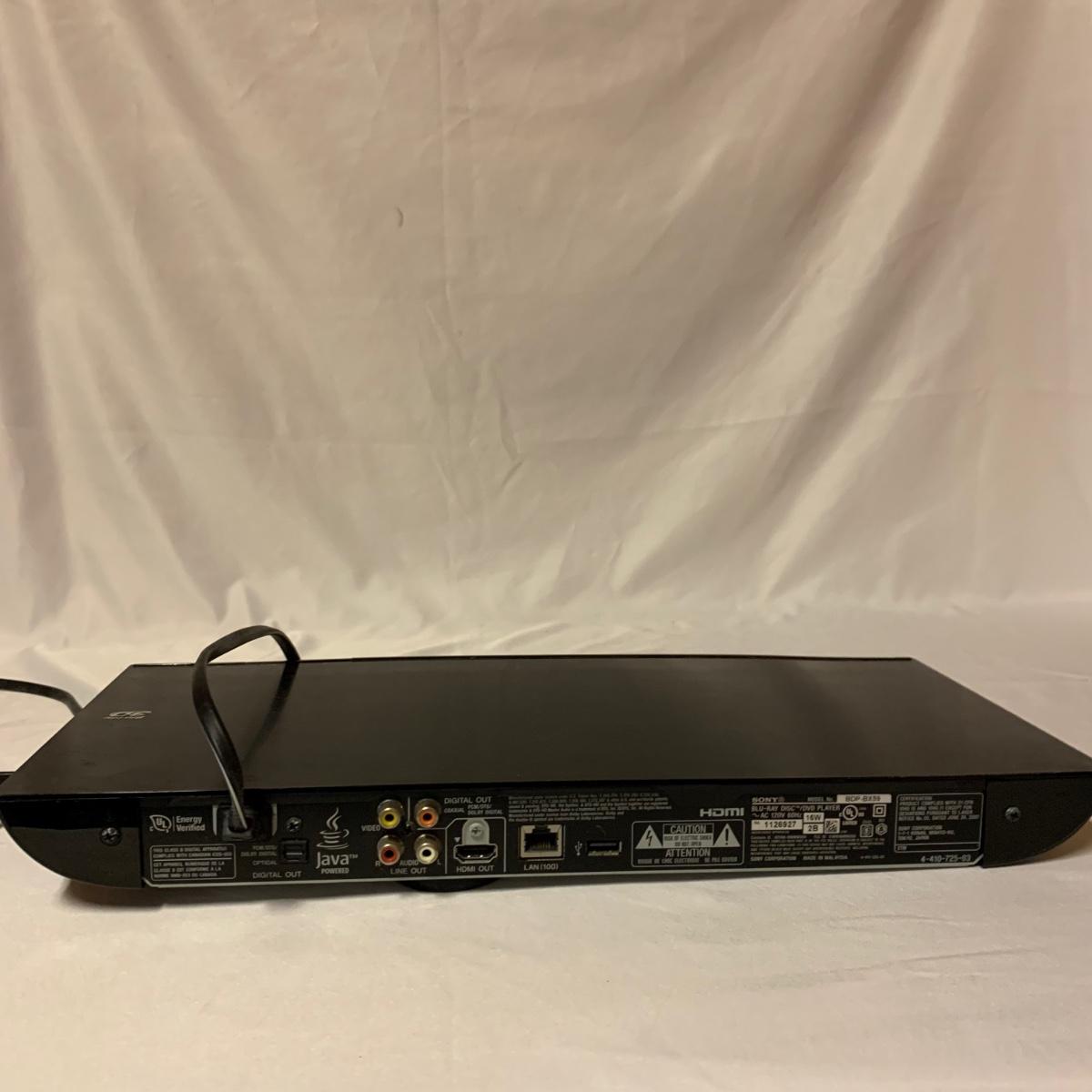 Sony Blu-Ray disc/DVD player, Model BDP-BX59. Comes with a remote. Player powered on when plugged in and remote functioned when tested. Player appears to be in good condition. Remote had tape on it, so it’s a bit sticky.