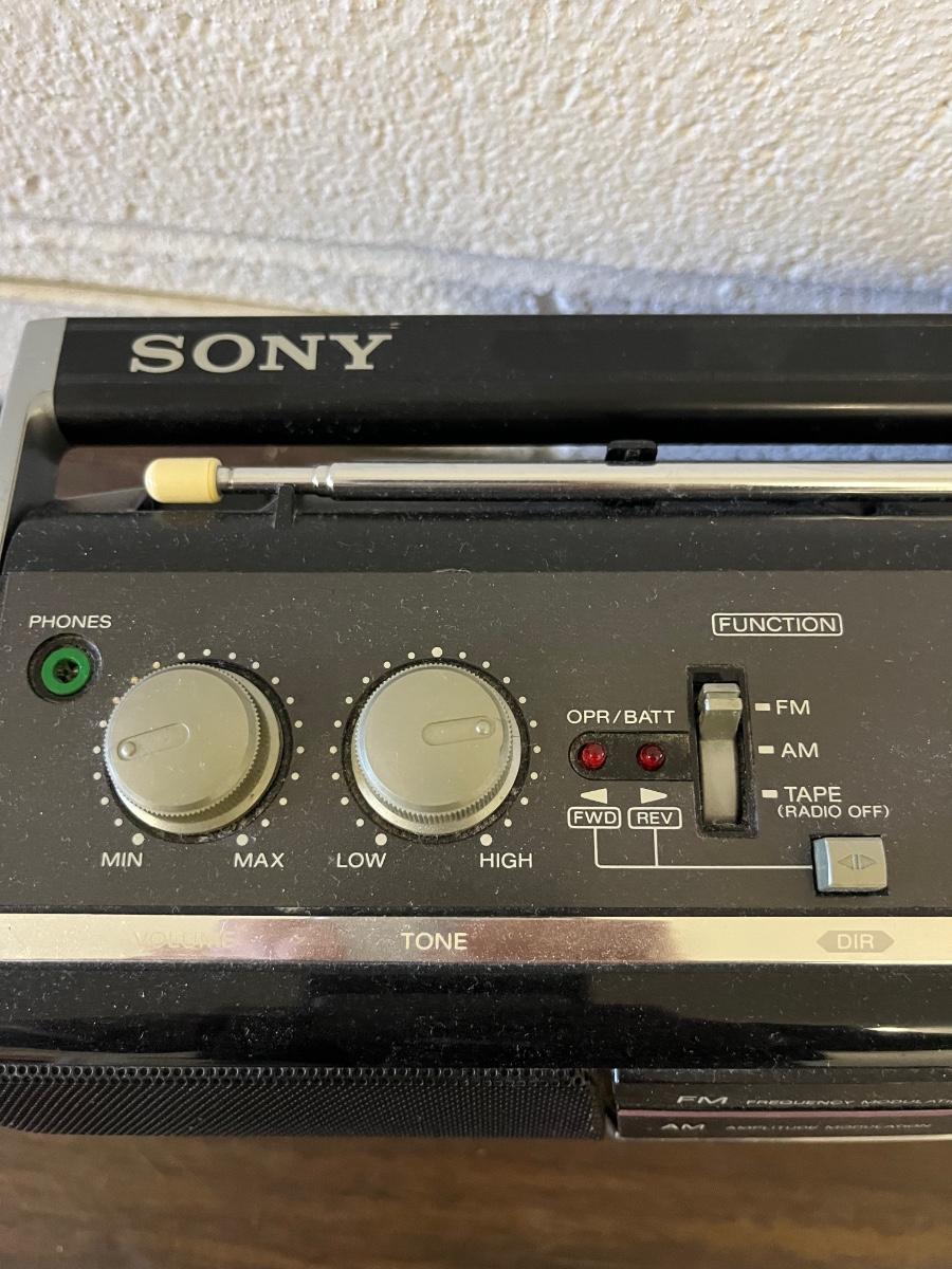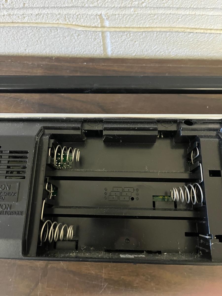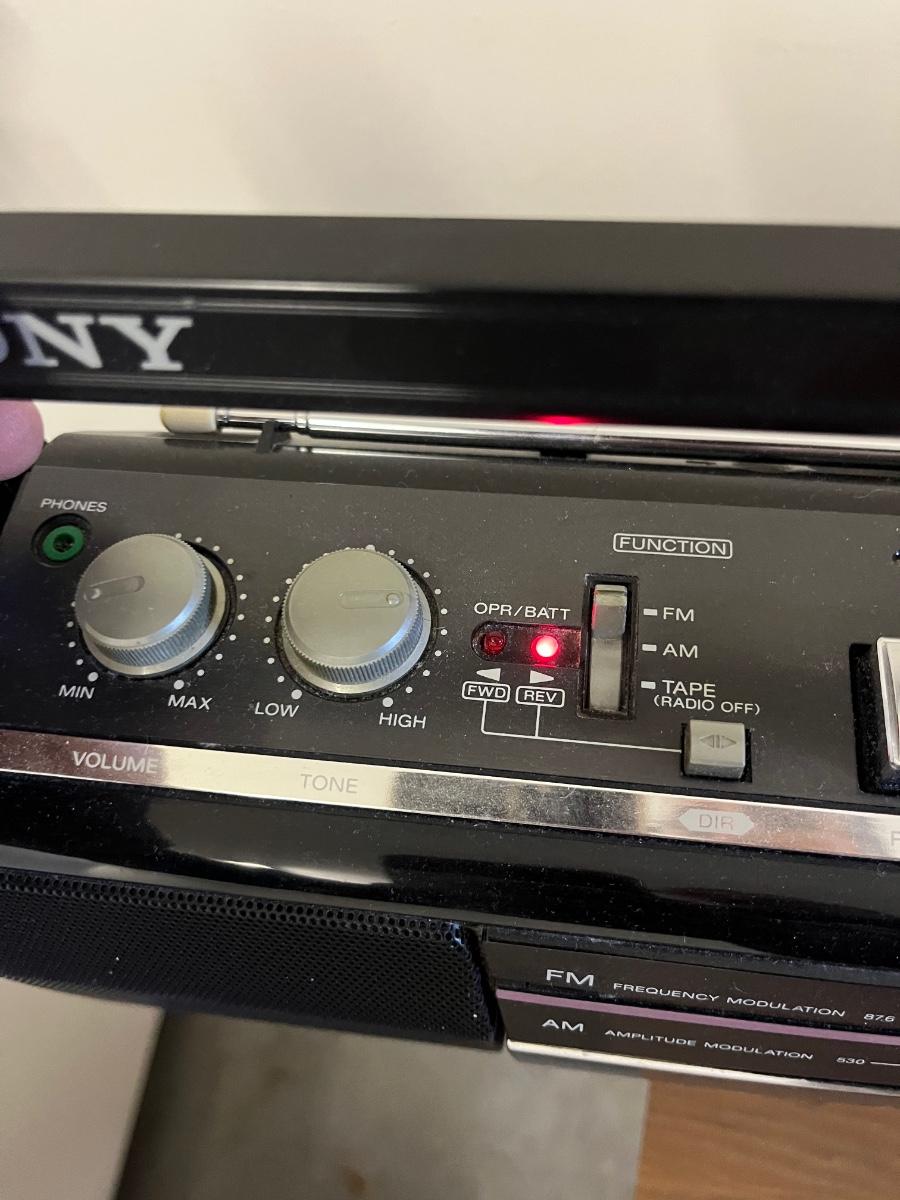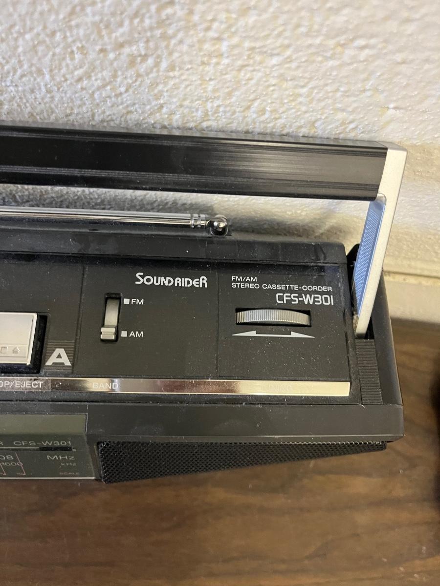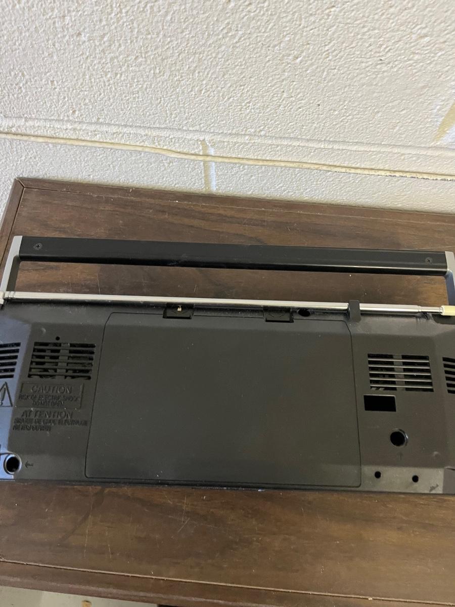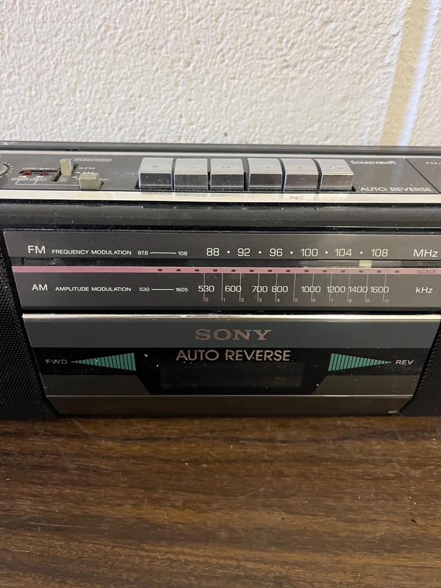 Lot includes a Sony boombox model# CFS-220 and Sony Boombox model # CFS W 301. Both radios powered on when plugged in. Largest boombox measures 20.5” x 5.5” x 8”H.
