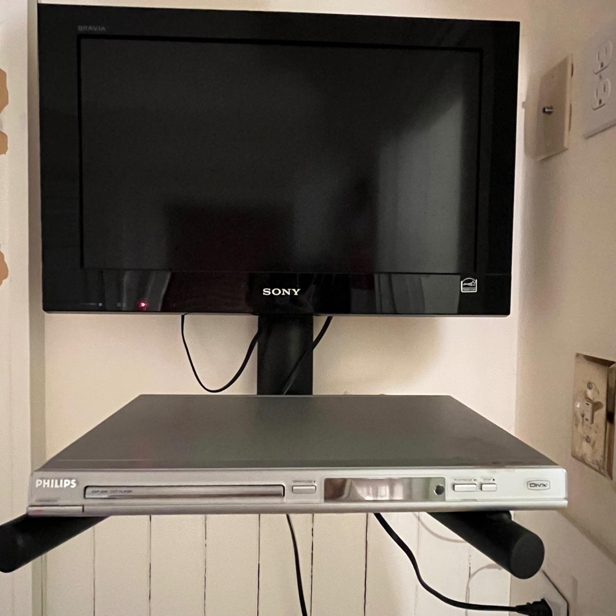 This includes a Sony LED 26” TV and a Philips DVD player. Both have remotes and power up when plugged in. The DVD player has a wall mount stand and the TV has a wall mount and a table stand. *Winning bidder needs to bring tools for removing the mounts from the wall. Local pickup only.