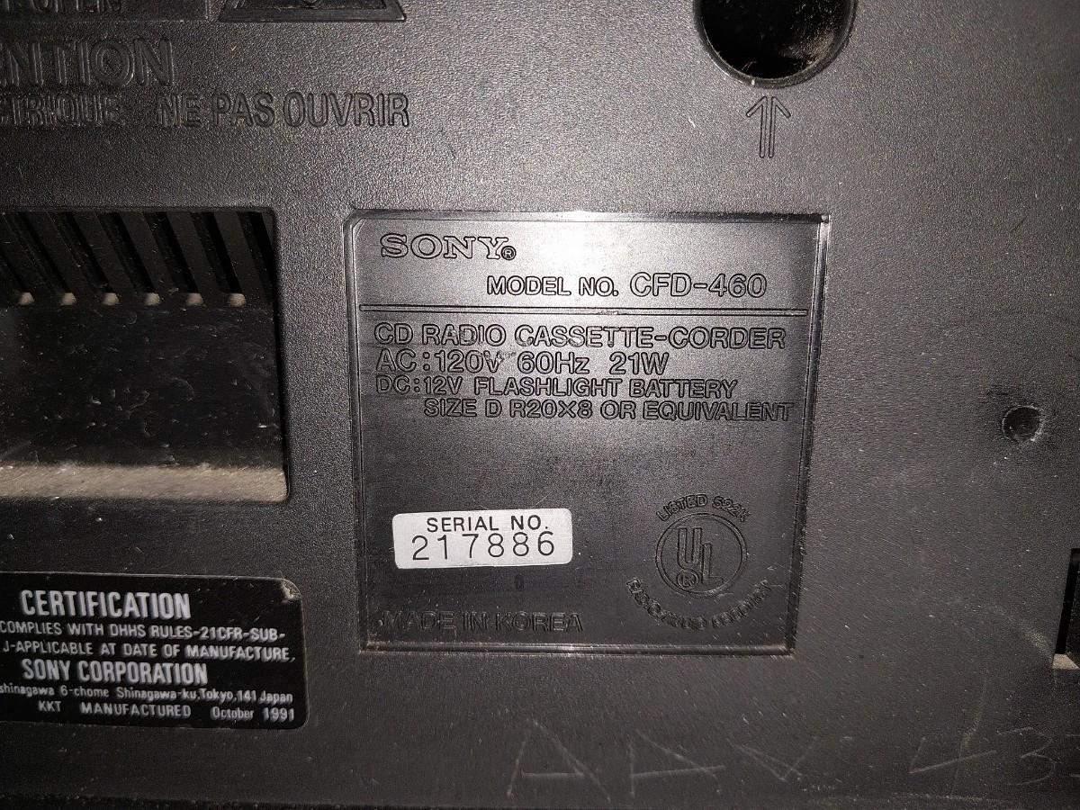 SONY CD RADIO CASSETTE-CORDER WITH DETACHABLE SPEAKERS AND REMOTE