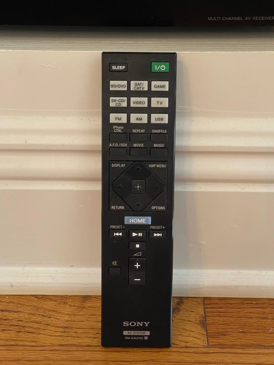 CERWIN Vega includes woofer and 4 speakers which we will take down. Sony Receiver works and comes with remote. Remote works except for tuning which you have to do manually or you will have to order a new remote.
