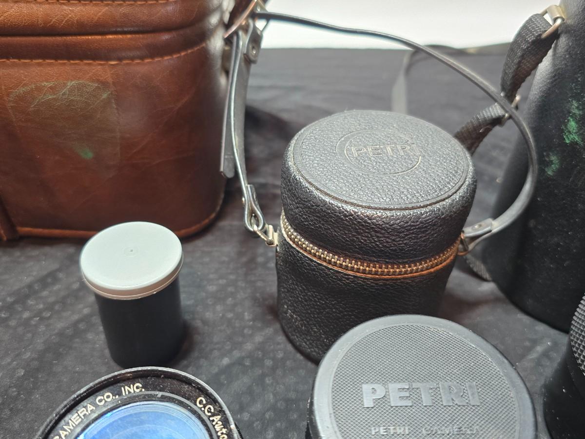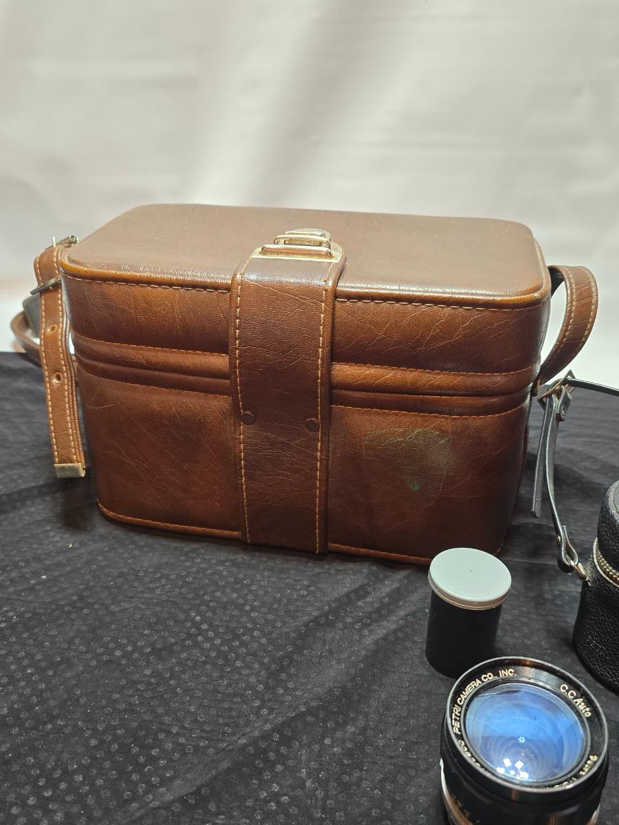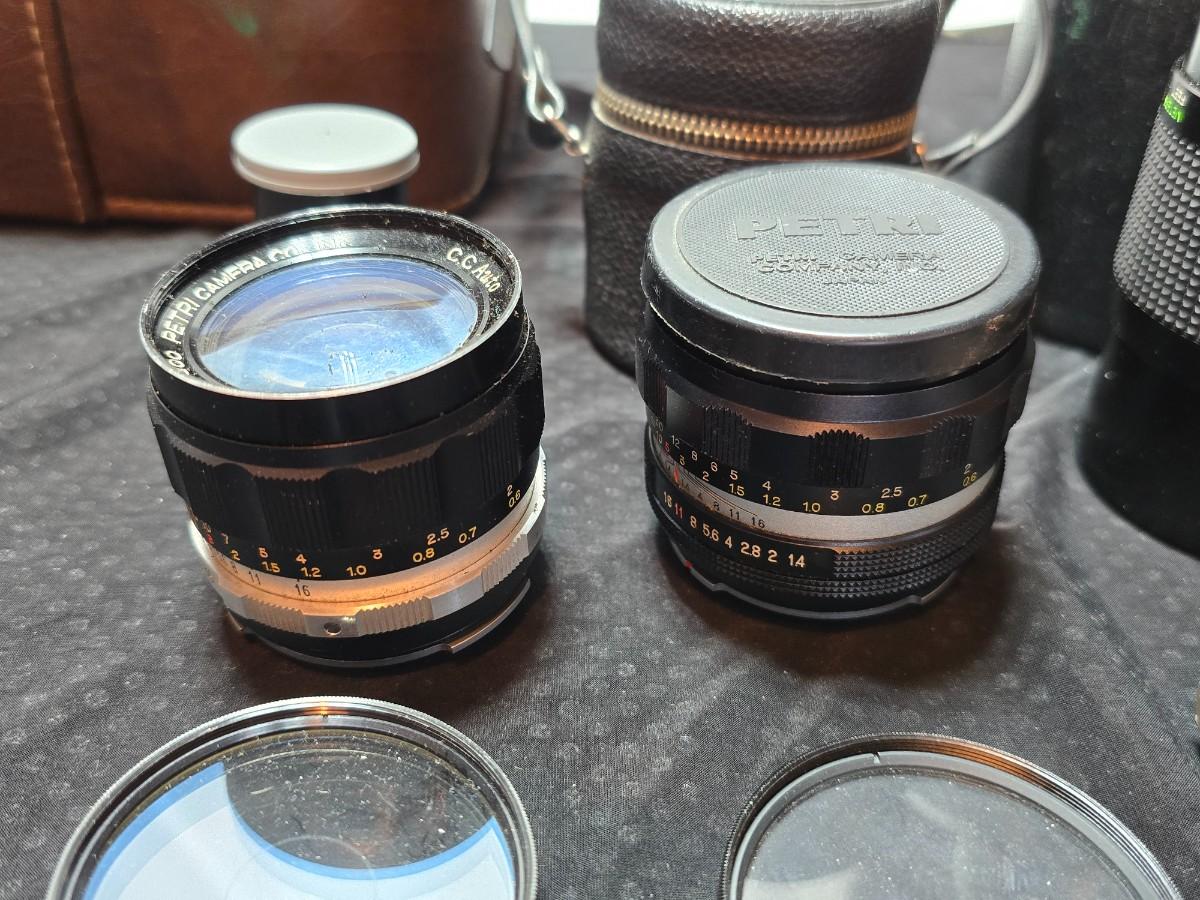Petri 35MM FTE Camera With several Petri Lenses and nice leather Case and a tri[od