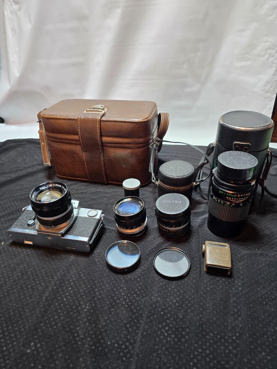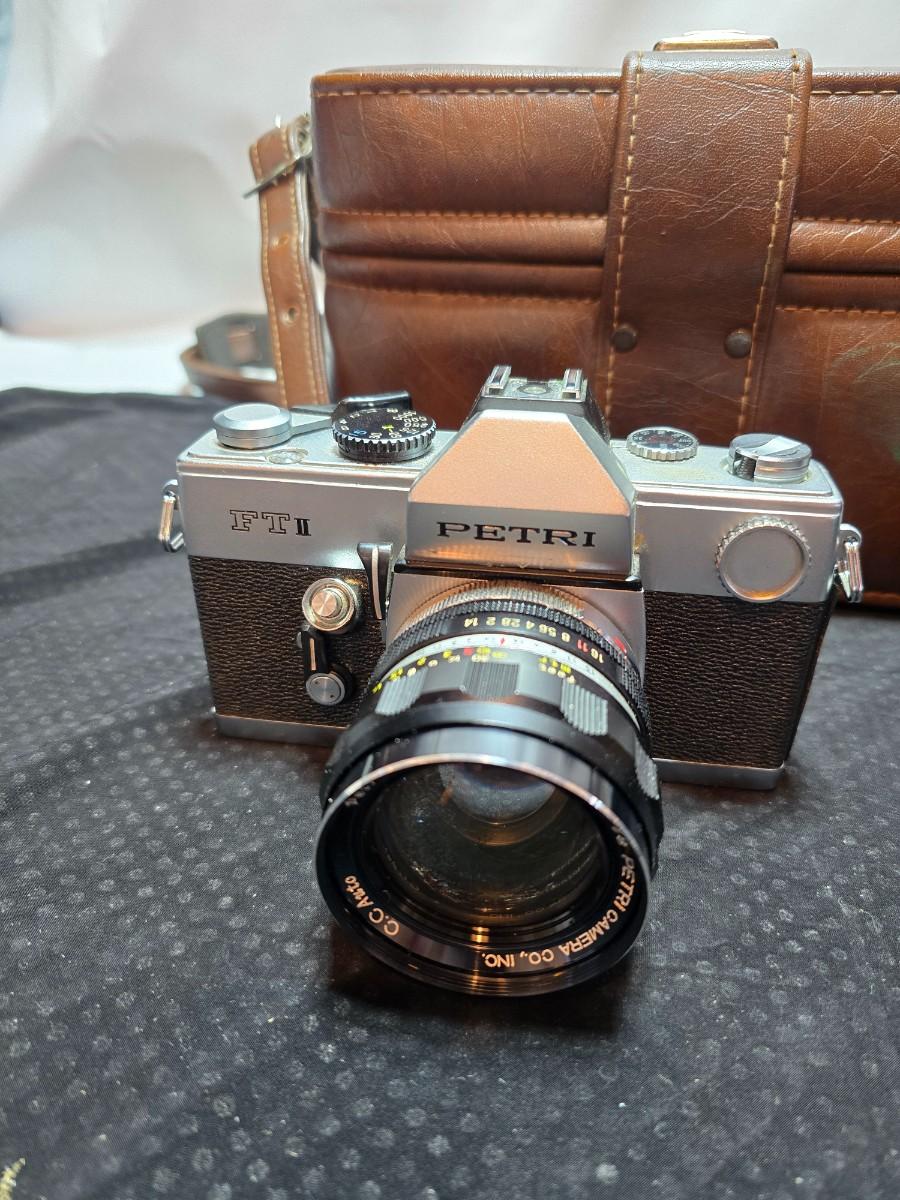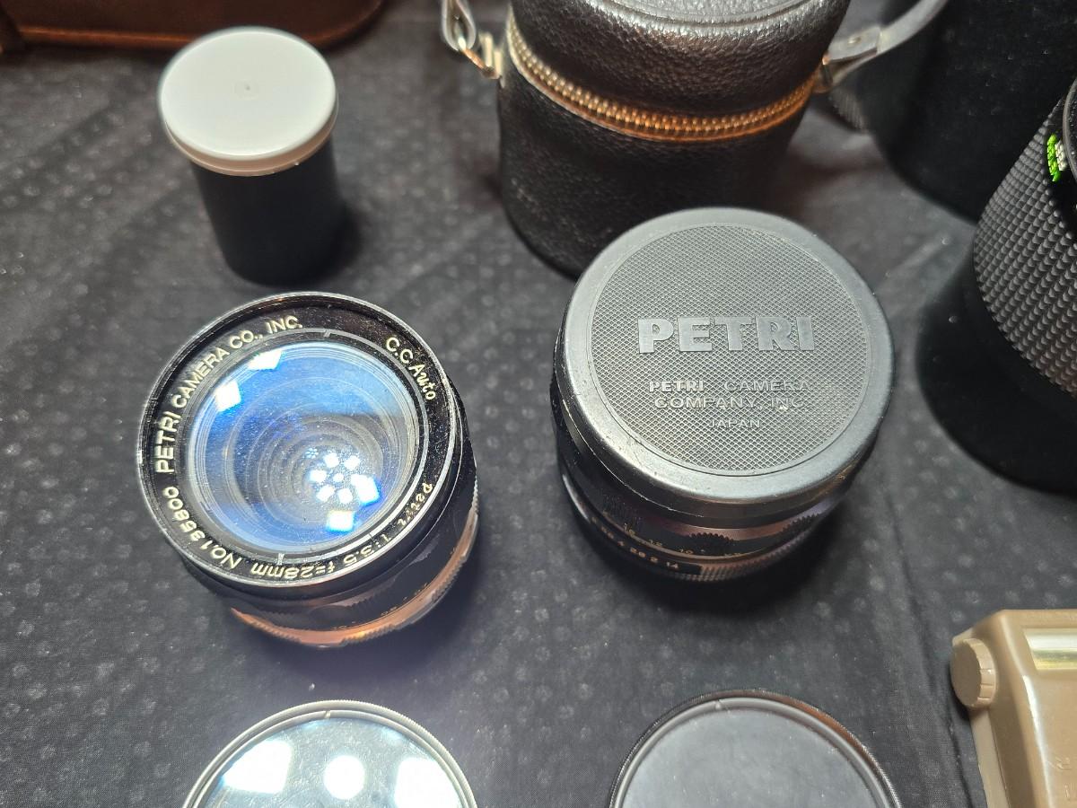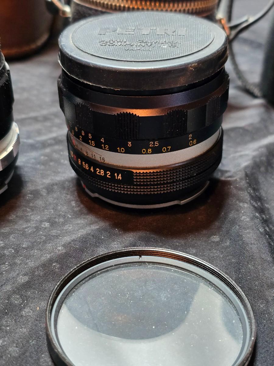 Petri 35MM FTE Camera With several Petri Lenses and nice leather Case and a tri[od