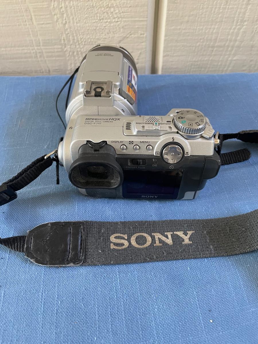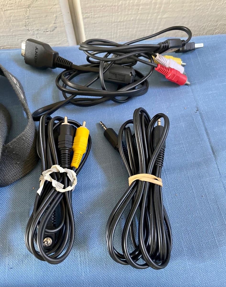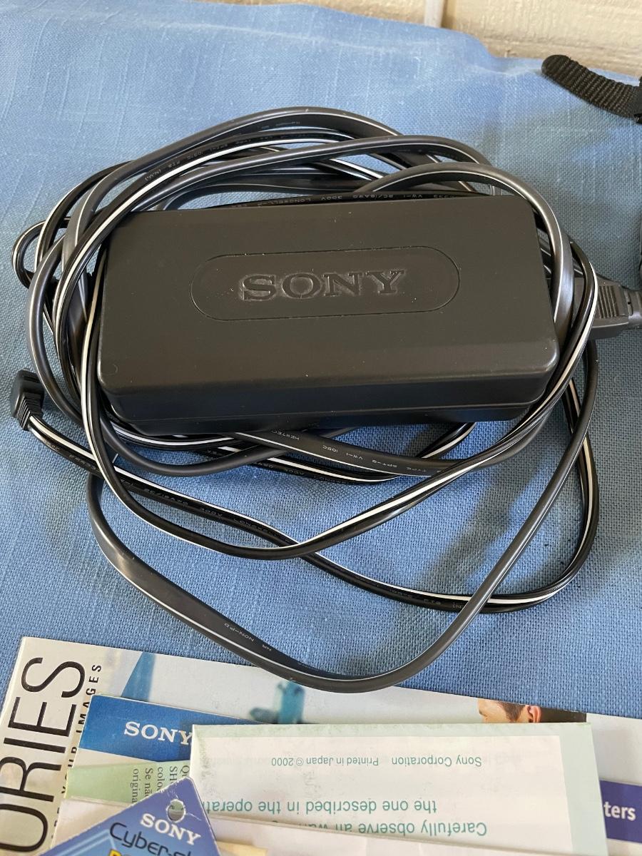 Used Sony Digital Still Camera with battery, charge cord, case, and many accessories.