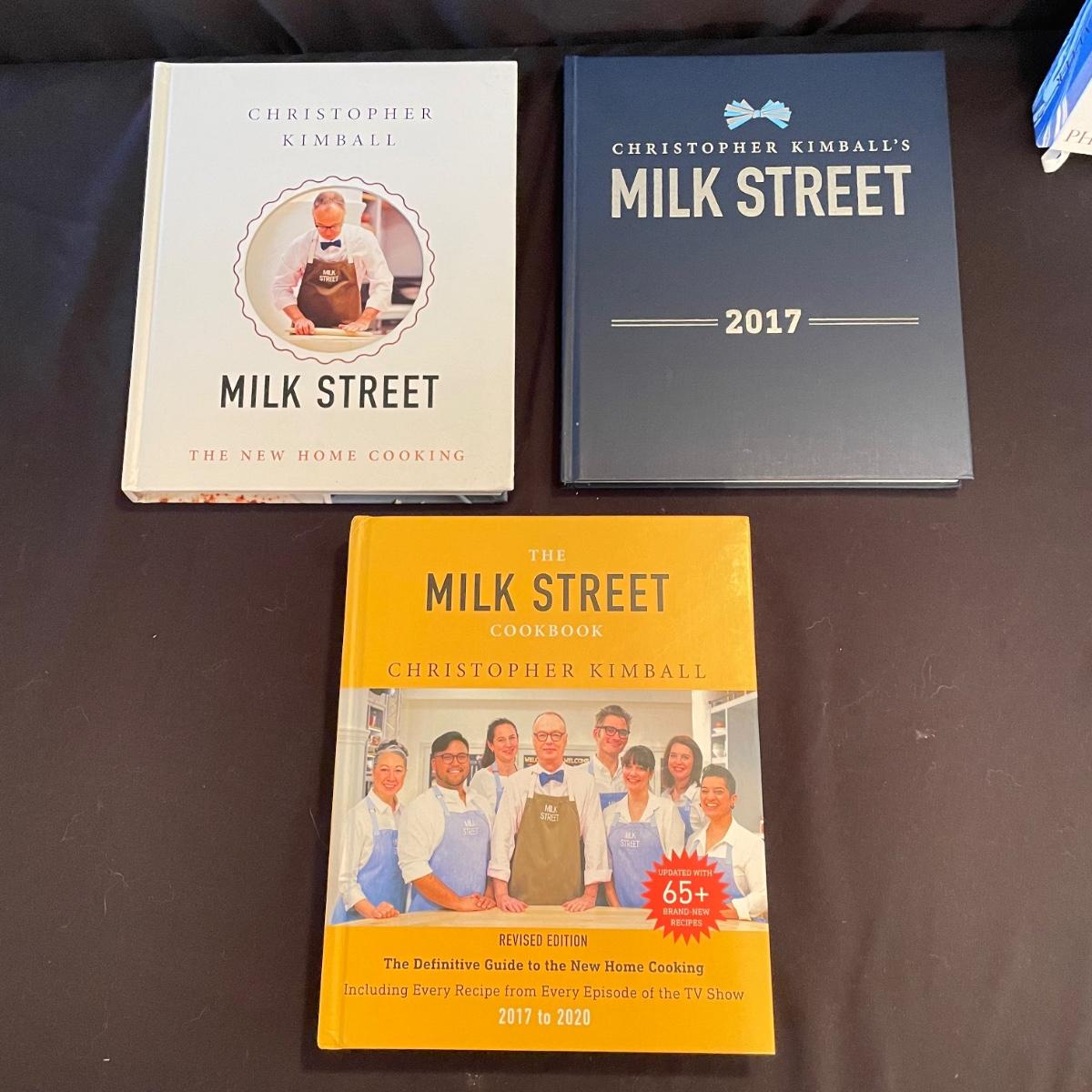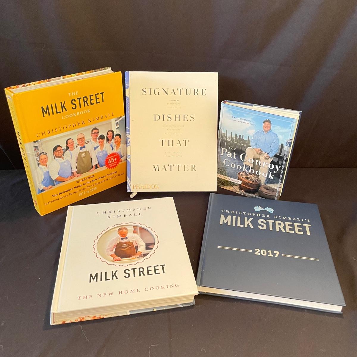 Three Milk Street cookbooks by Christopher Kimball, a chef-centered Signature Dishes that Matter and author of The Prince of Tides, first edition The Pat Conroy Cookbook. Two of the Milkstreet books have signatures on the very first page. It is unclear if they were hand signed or printed. See images. Shipping available.