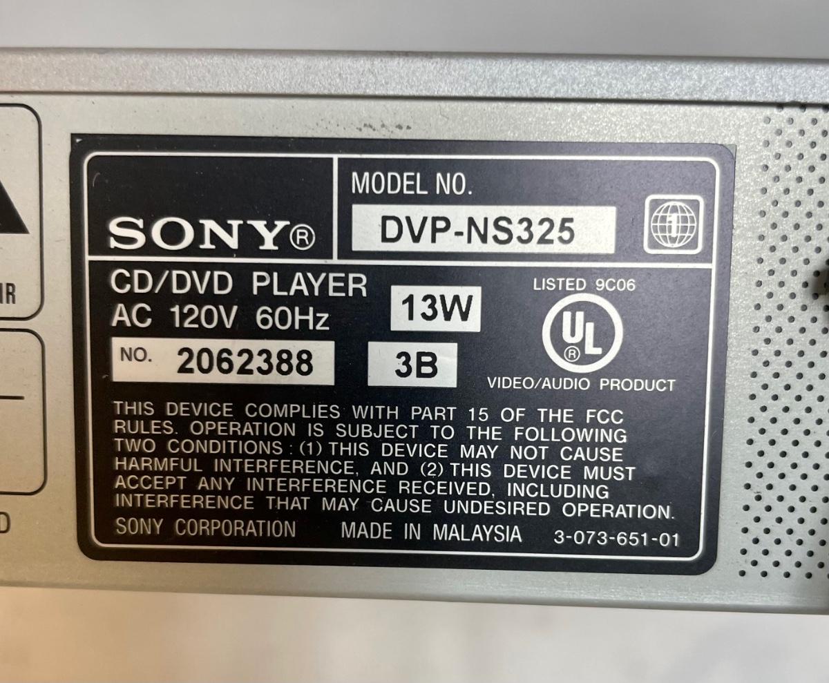 Model DVP-NS325. Plays DVDs and music CDs. Tested, works as expected. Very clean.