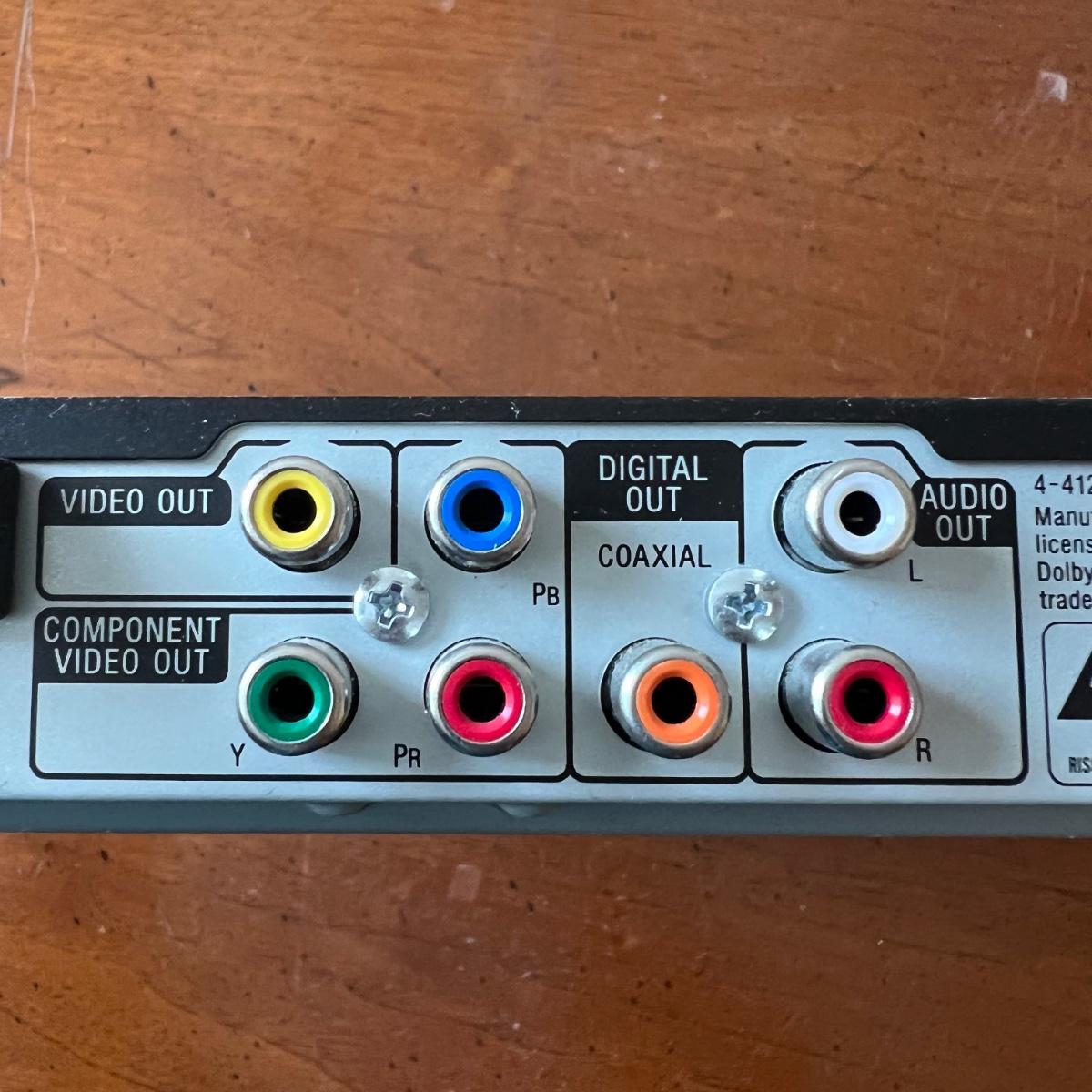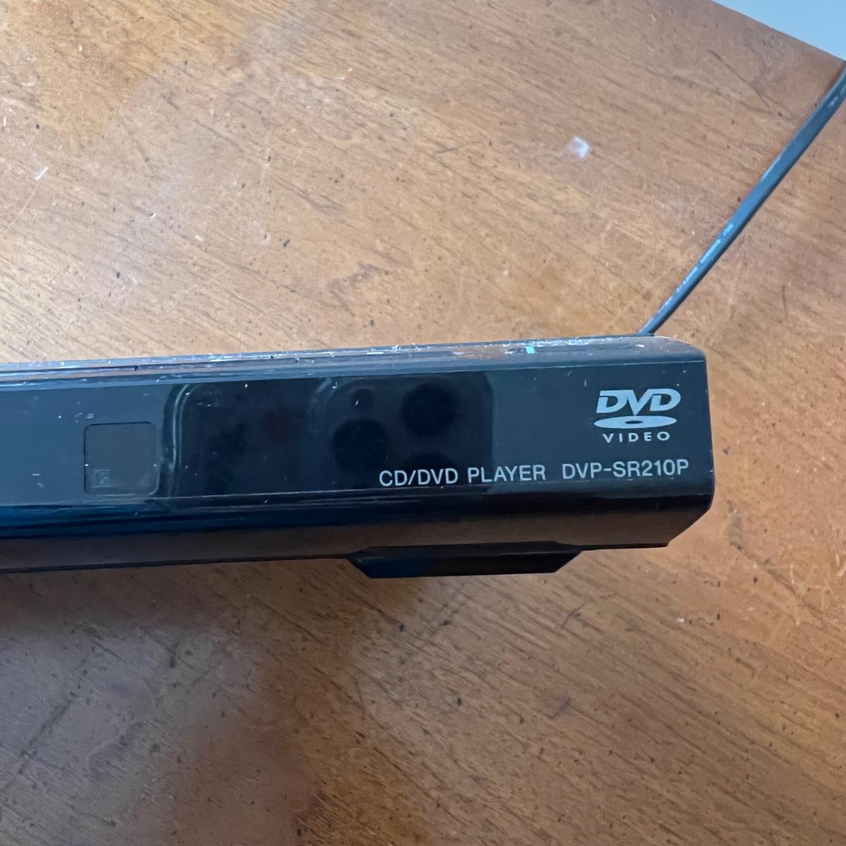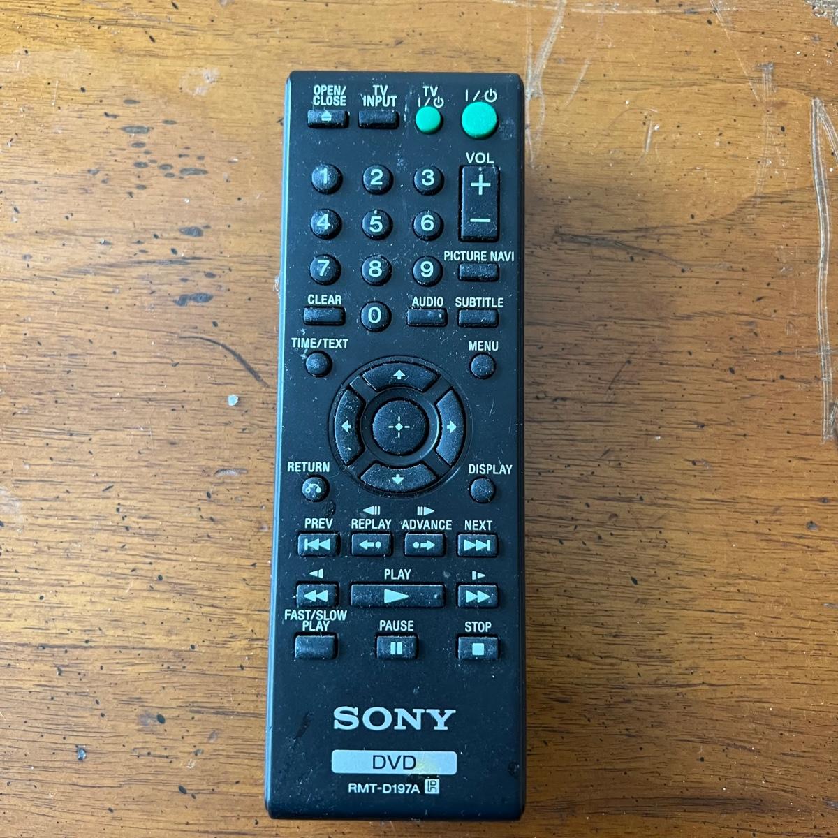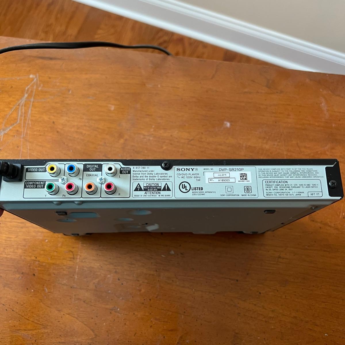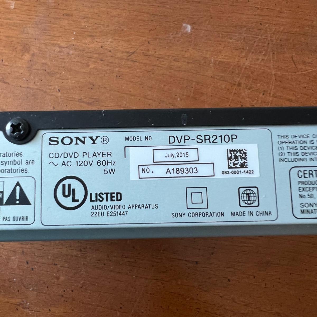 Sony DVD player. Powered on and controlled by remote when plugged in. 15 DVDs included as well.