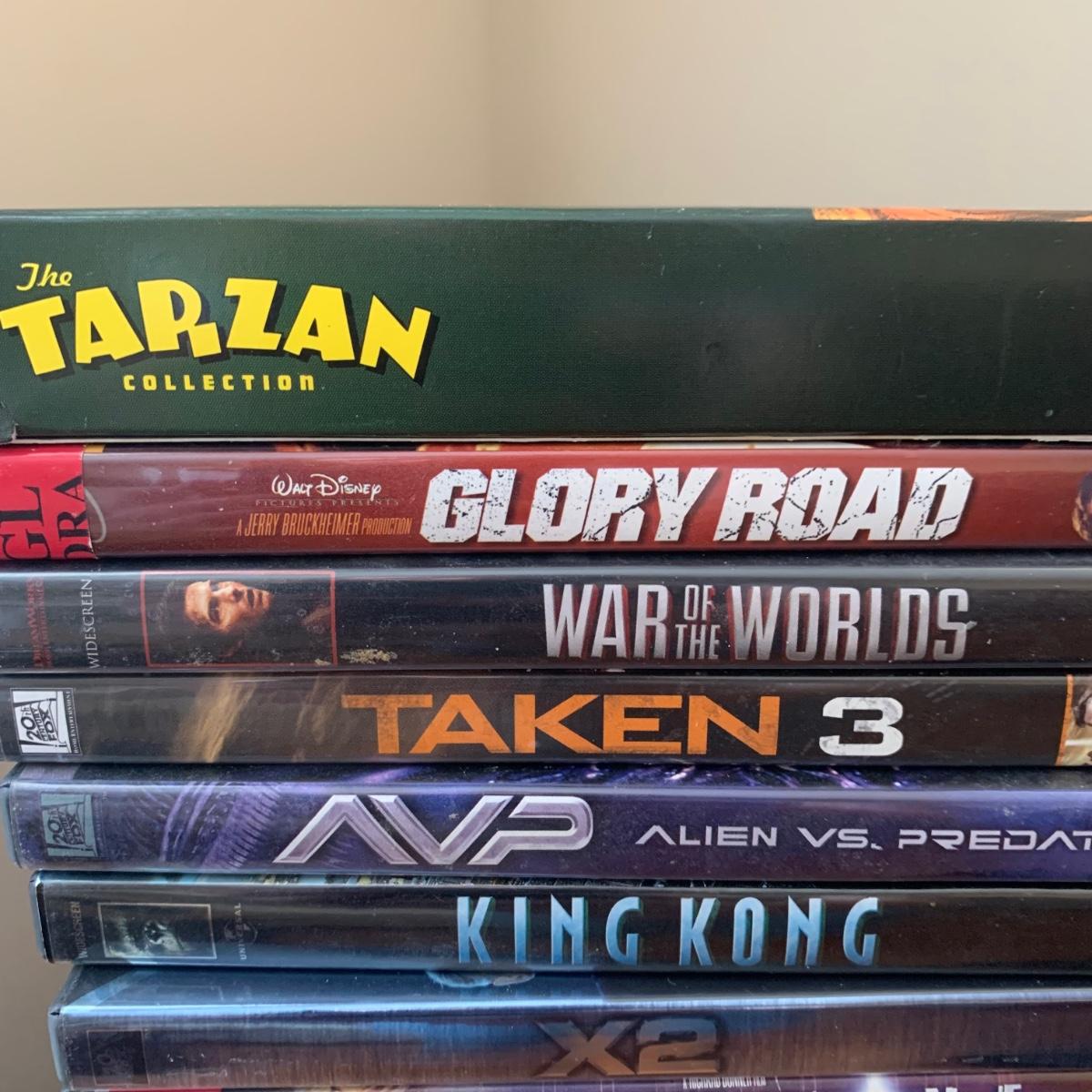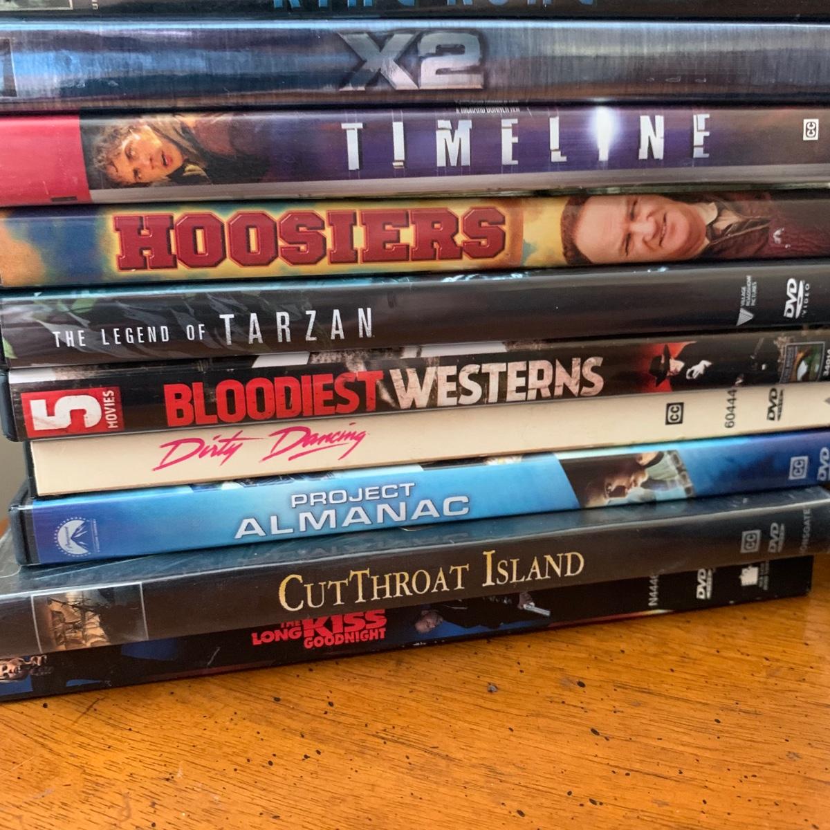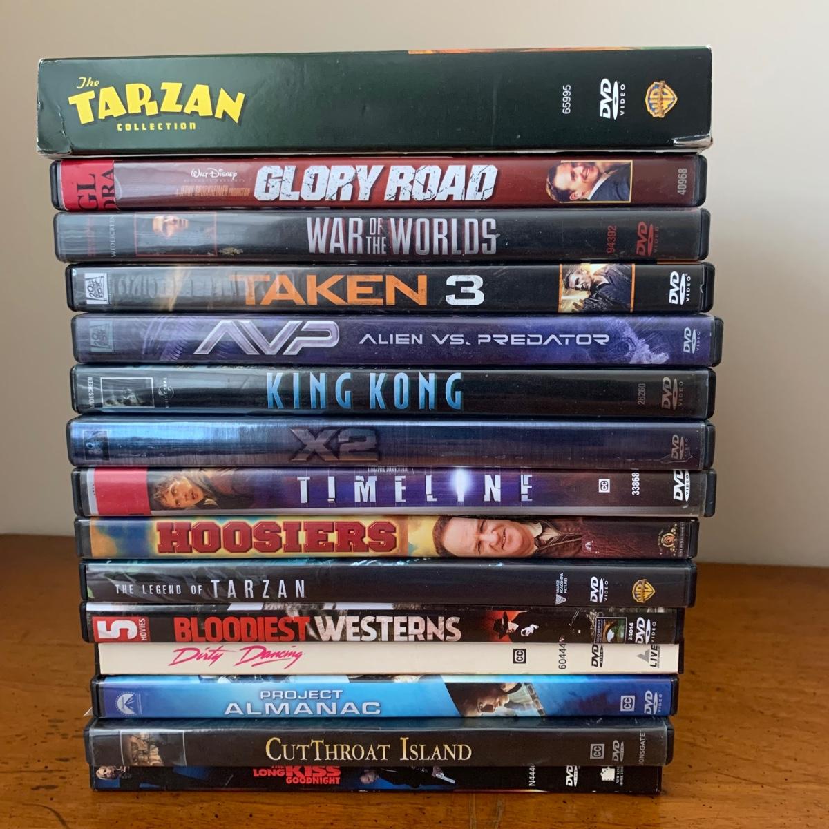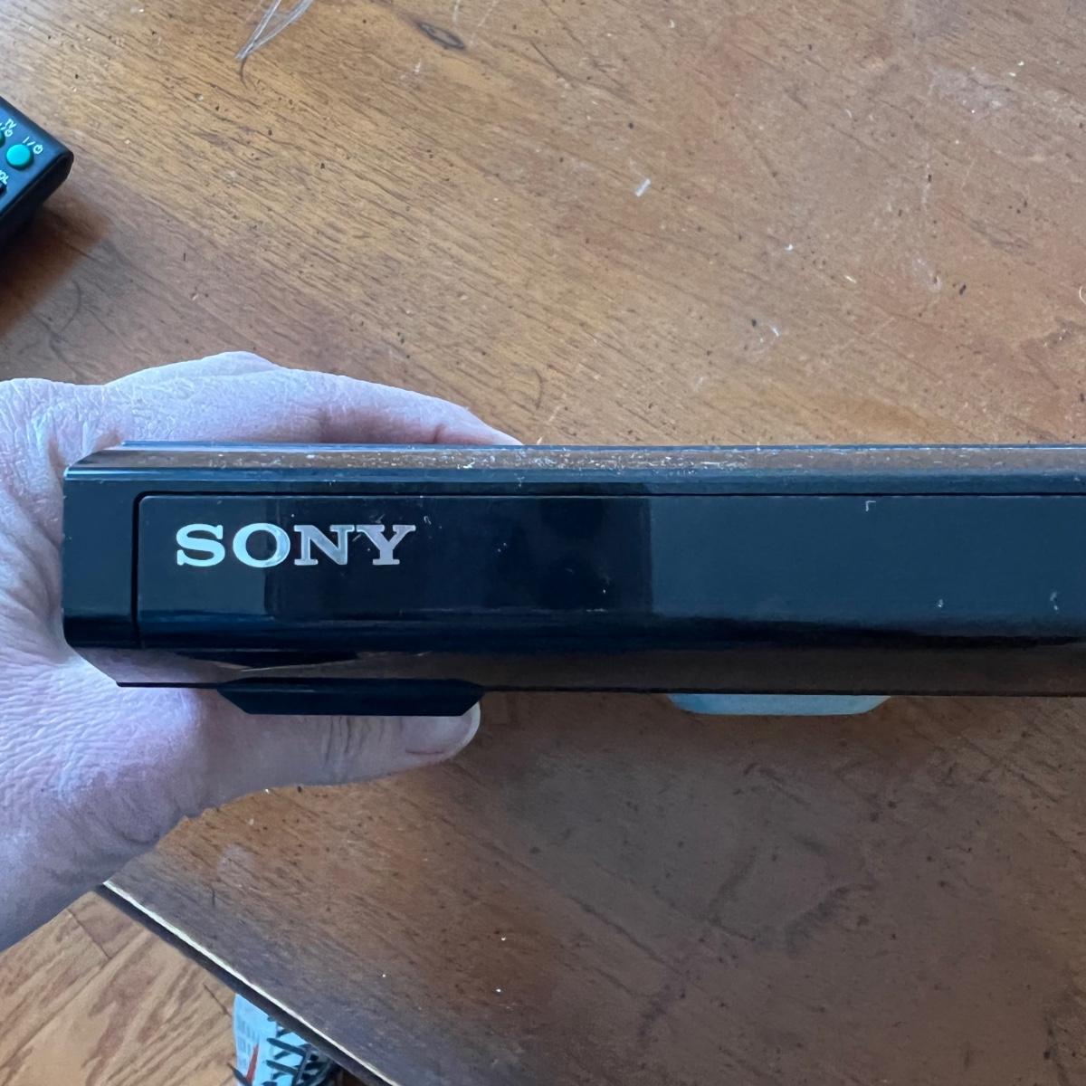 Sony DVD player. Powered on and controlled by remote when plugged in. 15 DVDs included as well.