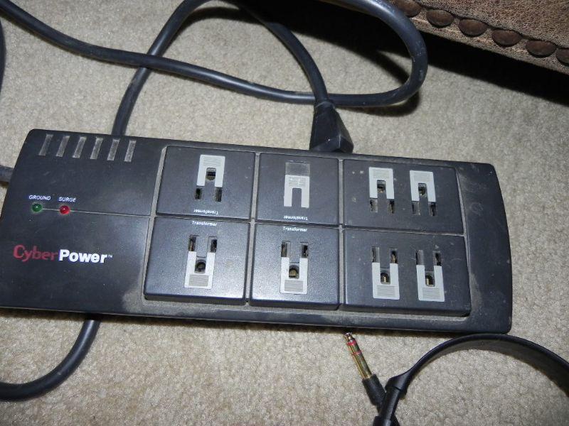 2 PAIR HEADPHONES AND CYBER POWER OUTLET