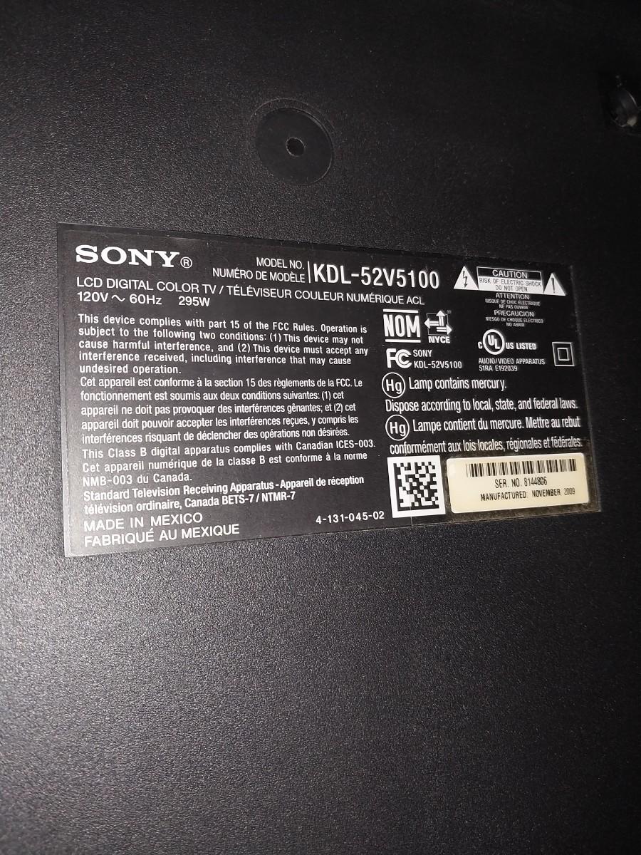 SONY BRAVIA 52" LCD DIGITAL COLOR TELEVISION WITH REMOTE