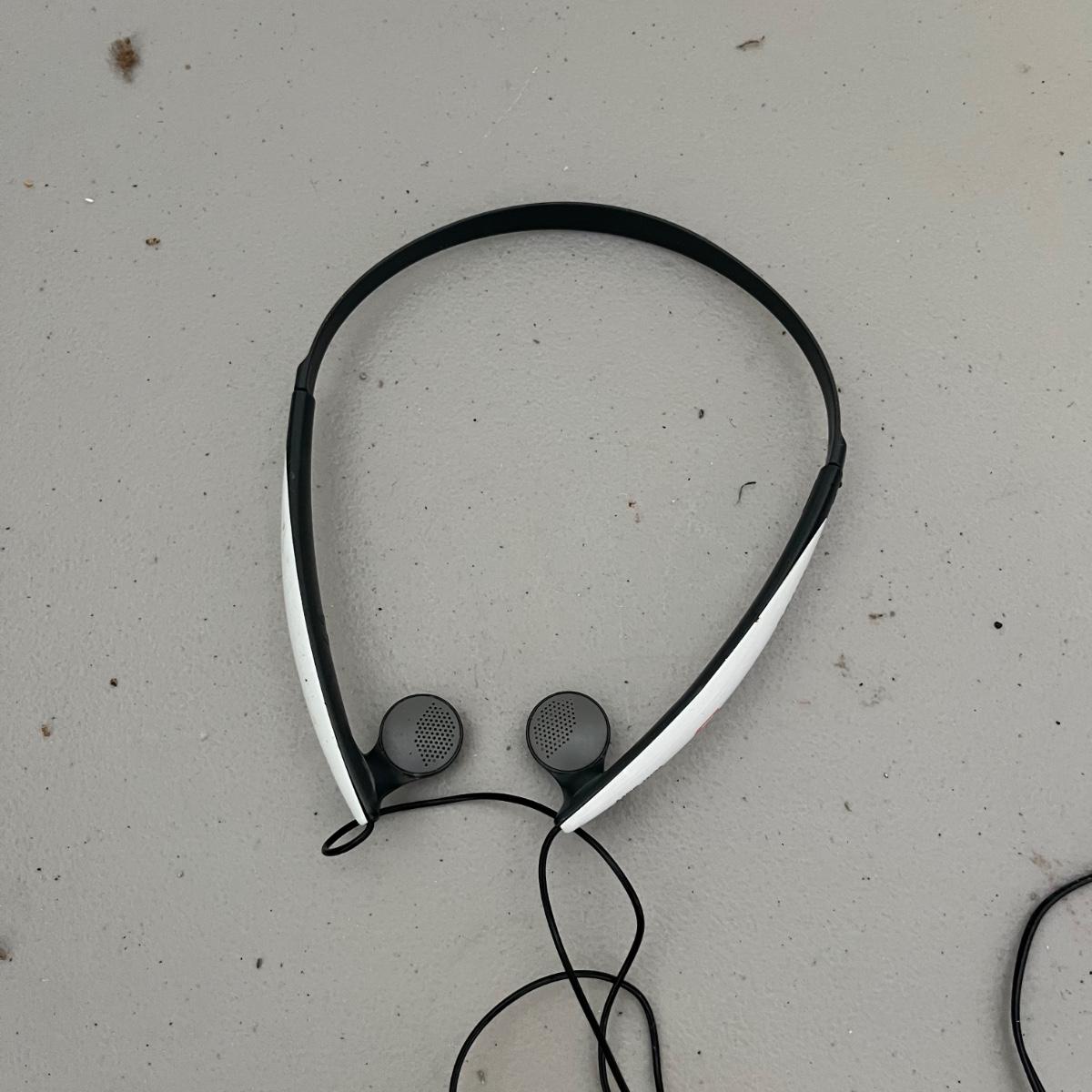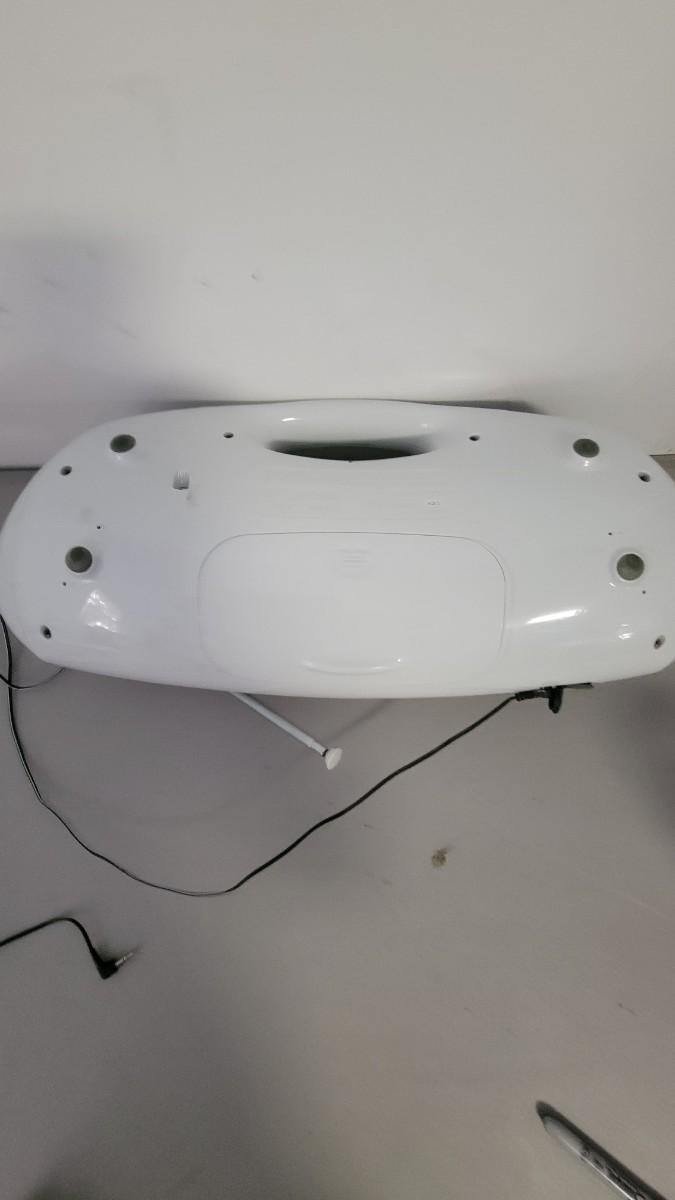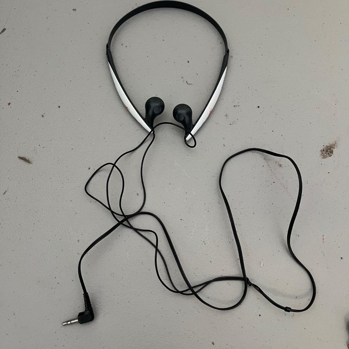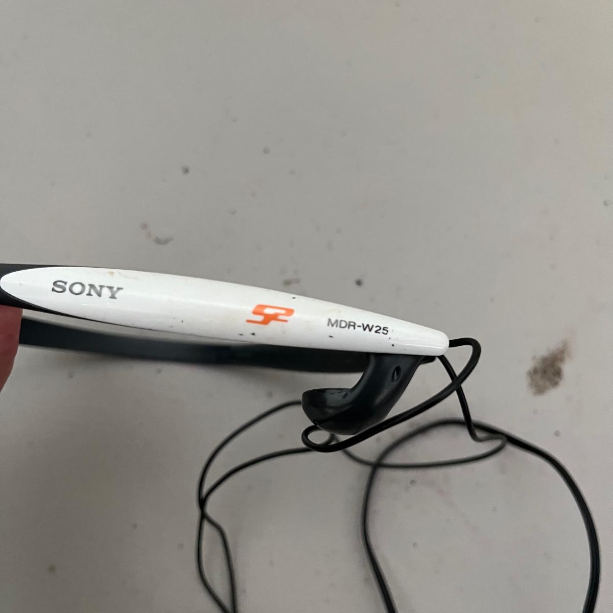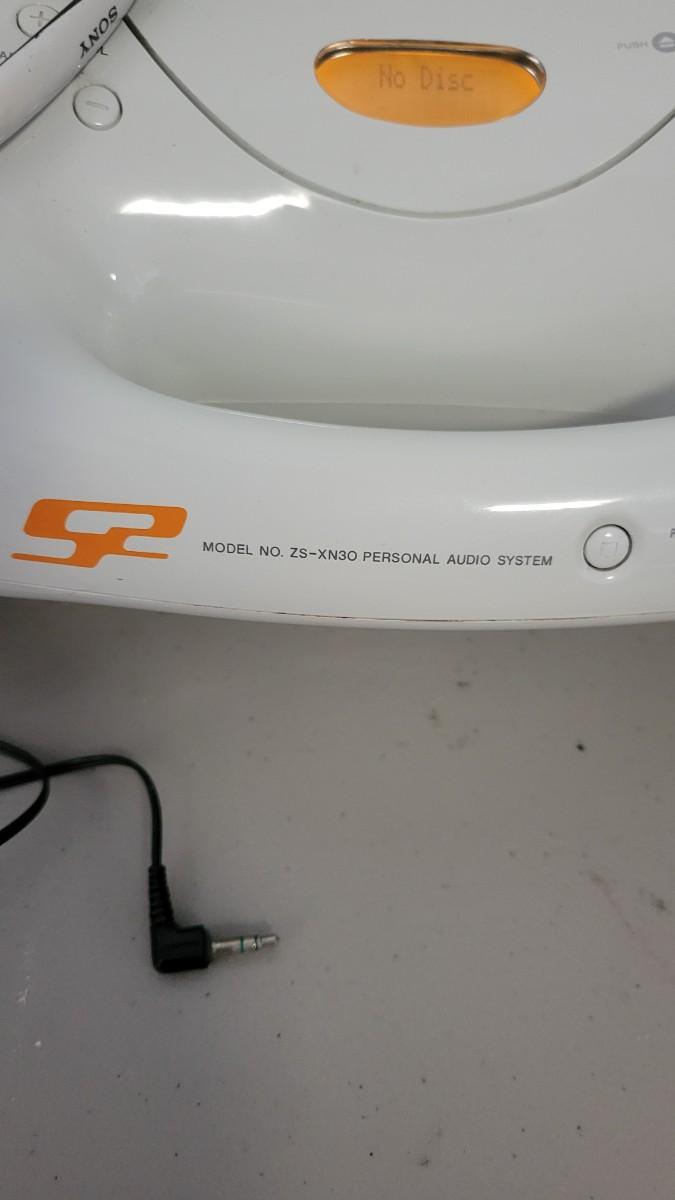 Sony portable CD player and matching headphones. Audio system has a CD player and tuner and includes a set of headphones. Unit powered on at testing. Measures approximately 20" x 11" x 6"