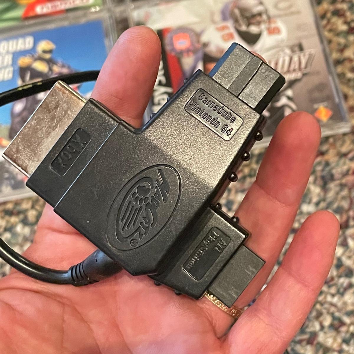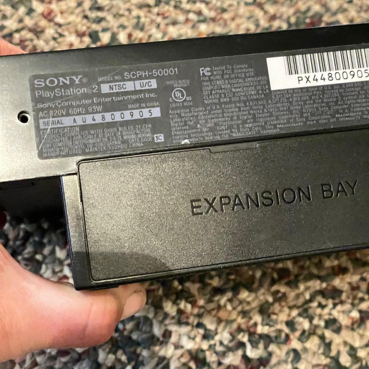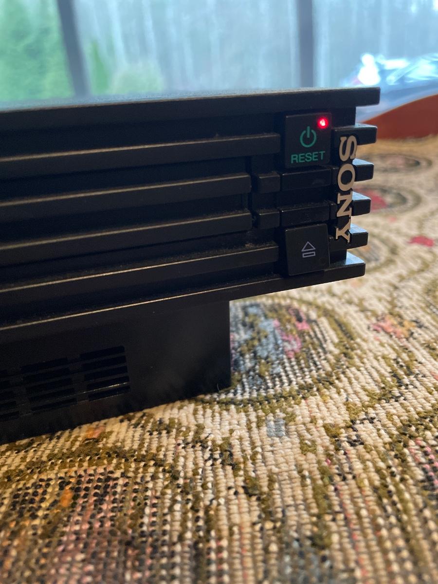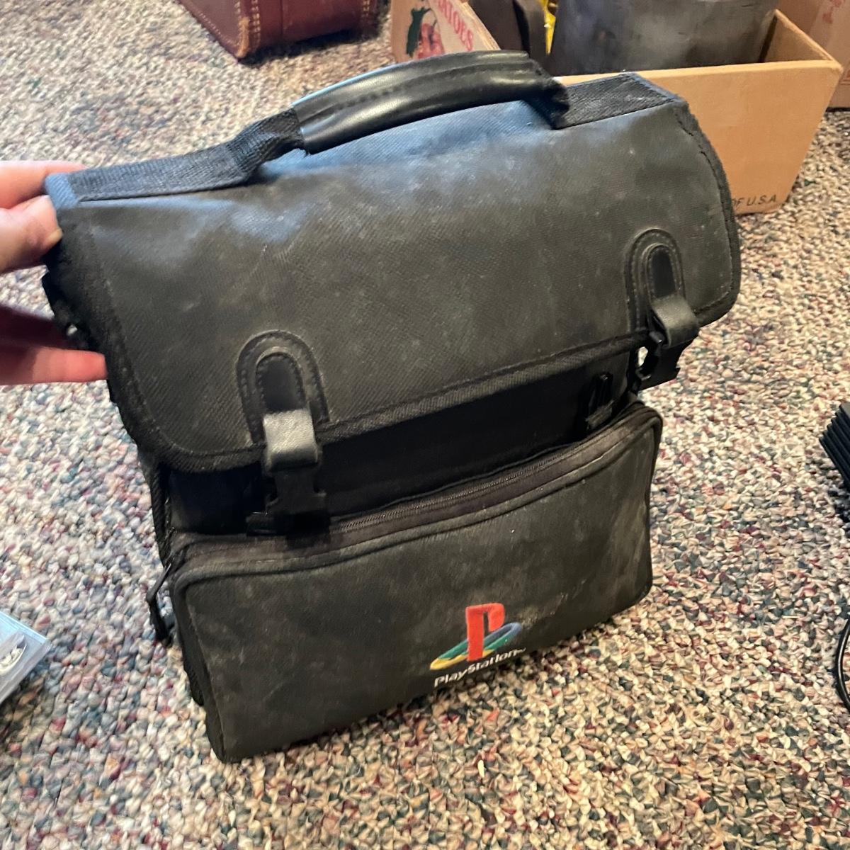 Sony PlayStation 2, turns on, but was not tested. Lot includes one controller, Mad Catz adapter and carrying case. Games included are PAC Man World, VR Powerboast Racing and NFL GameDay 2005. Carrying case is dusty. See images. Shipping available.