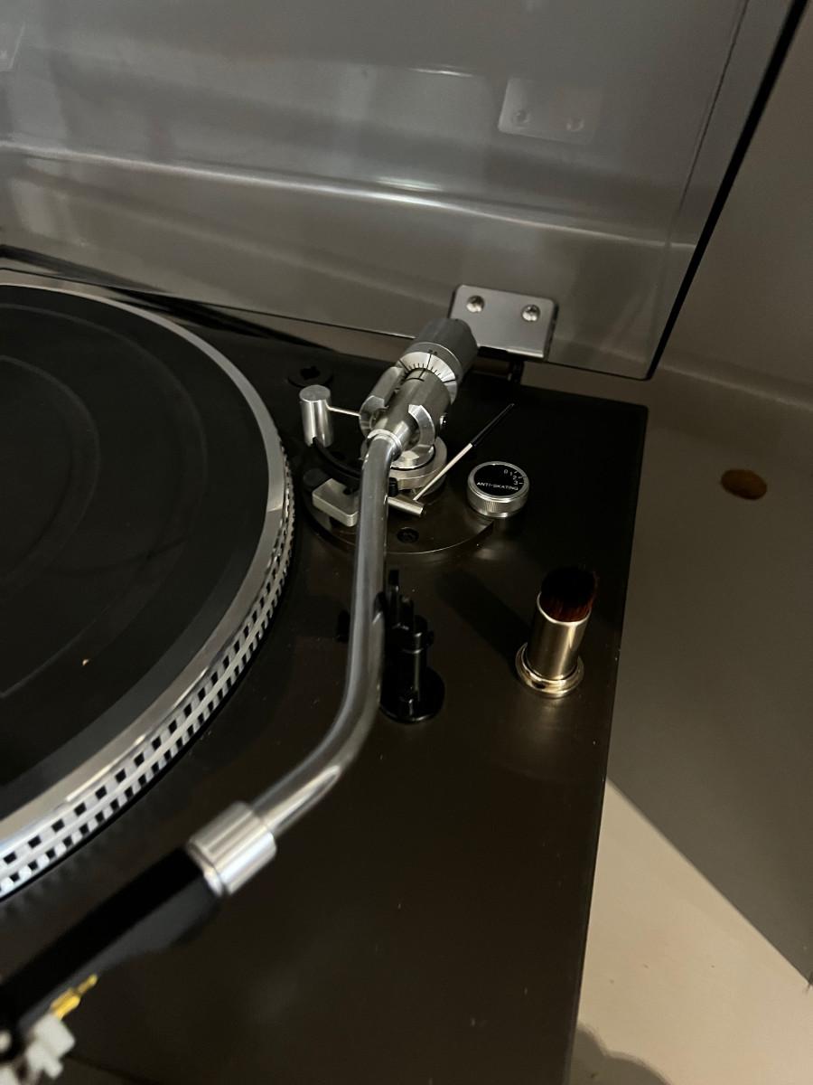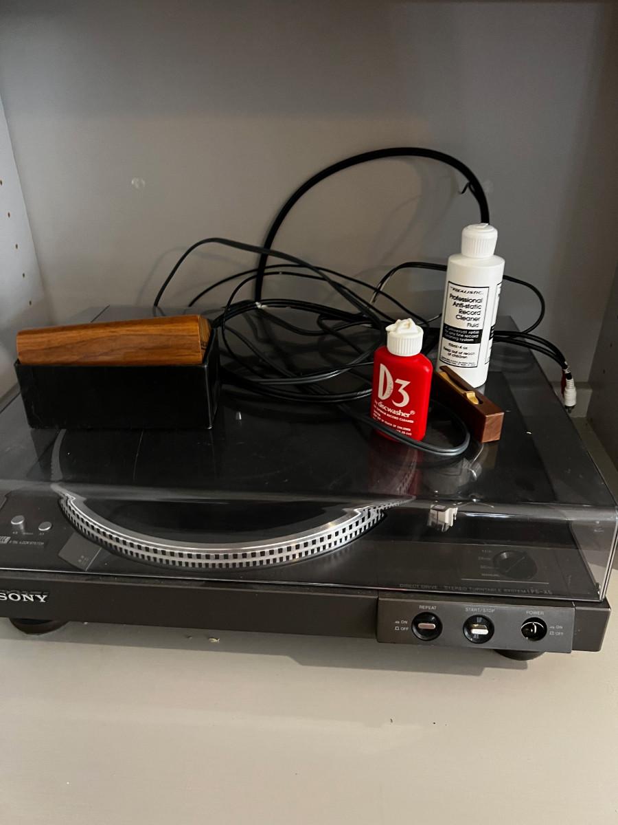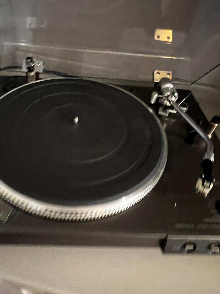 Used. Excellent Working Condition. Has a dust over and comes with a record cleaner. Switch shown in last photo included with the turntable