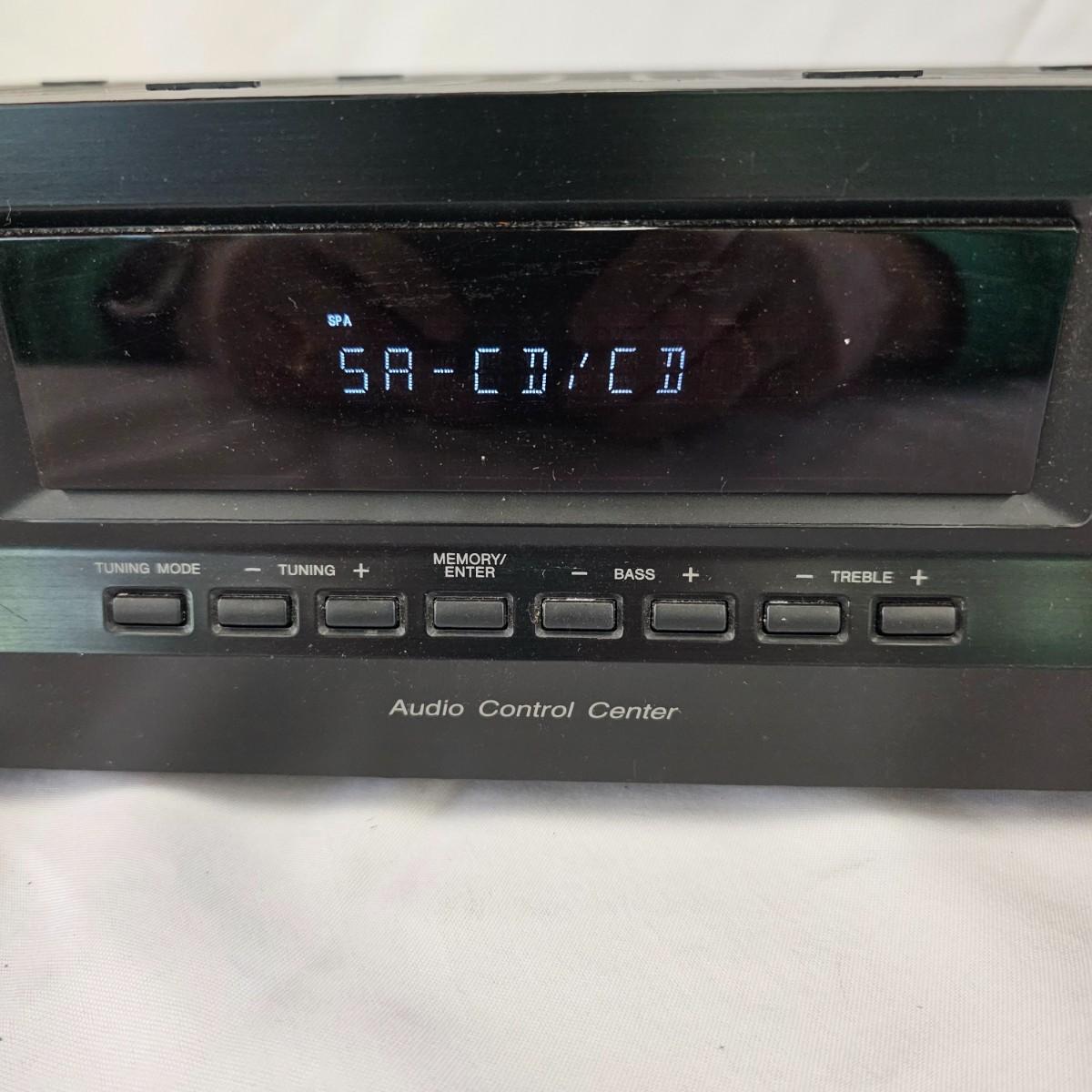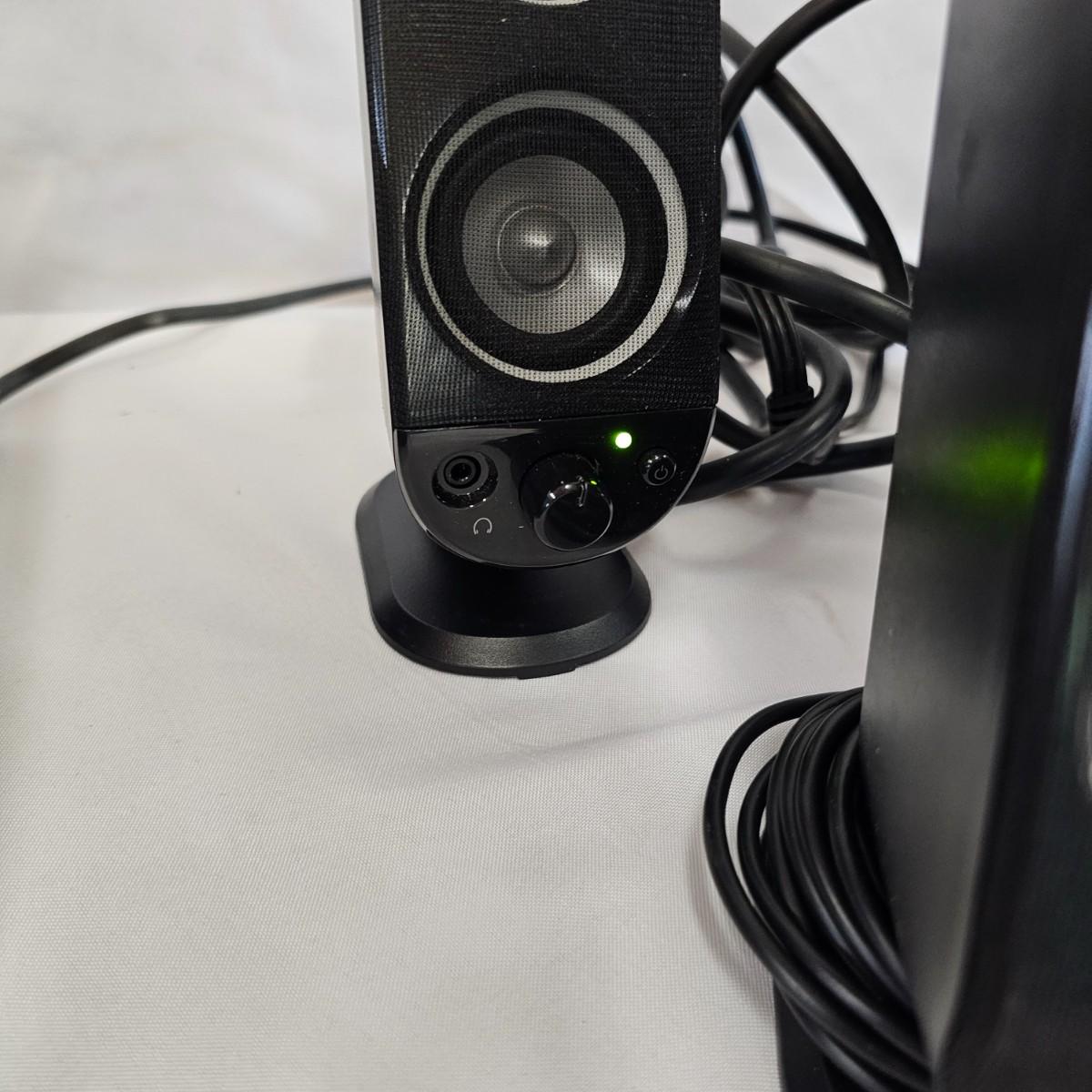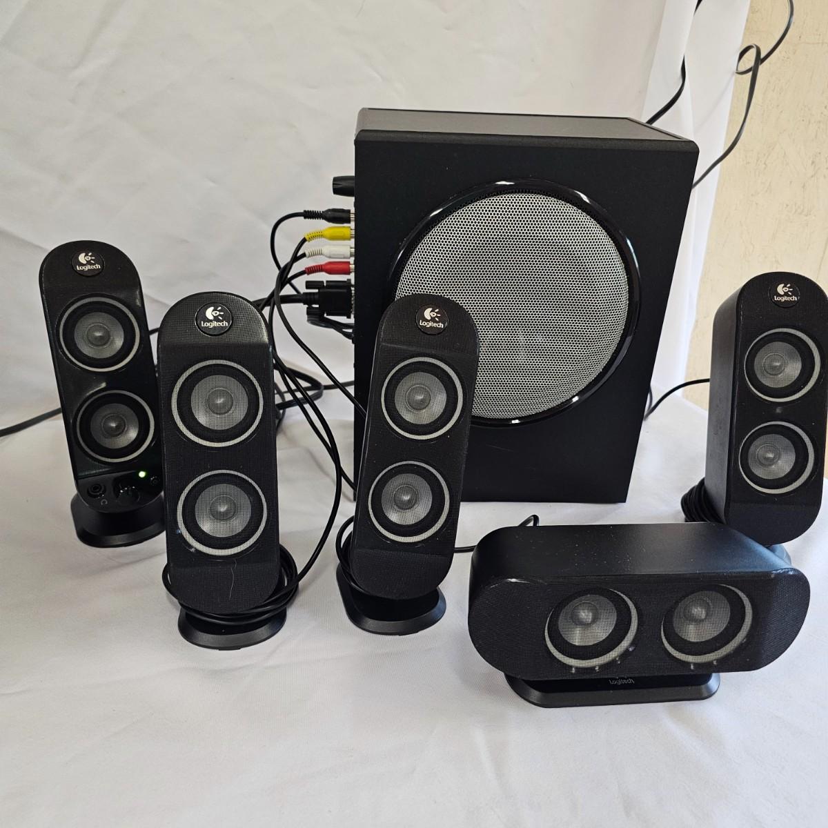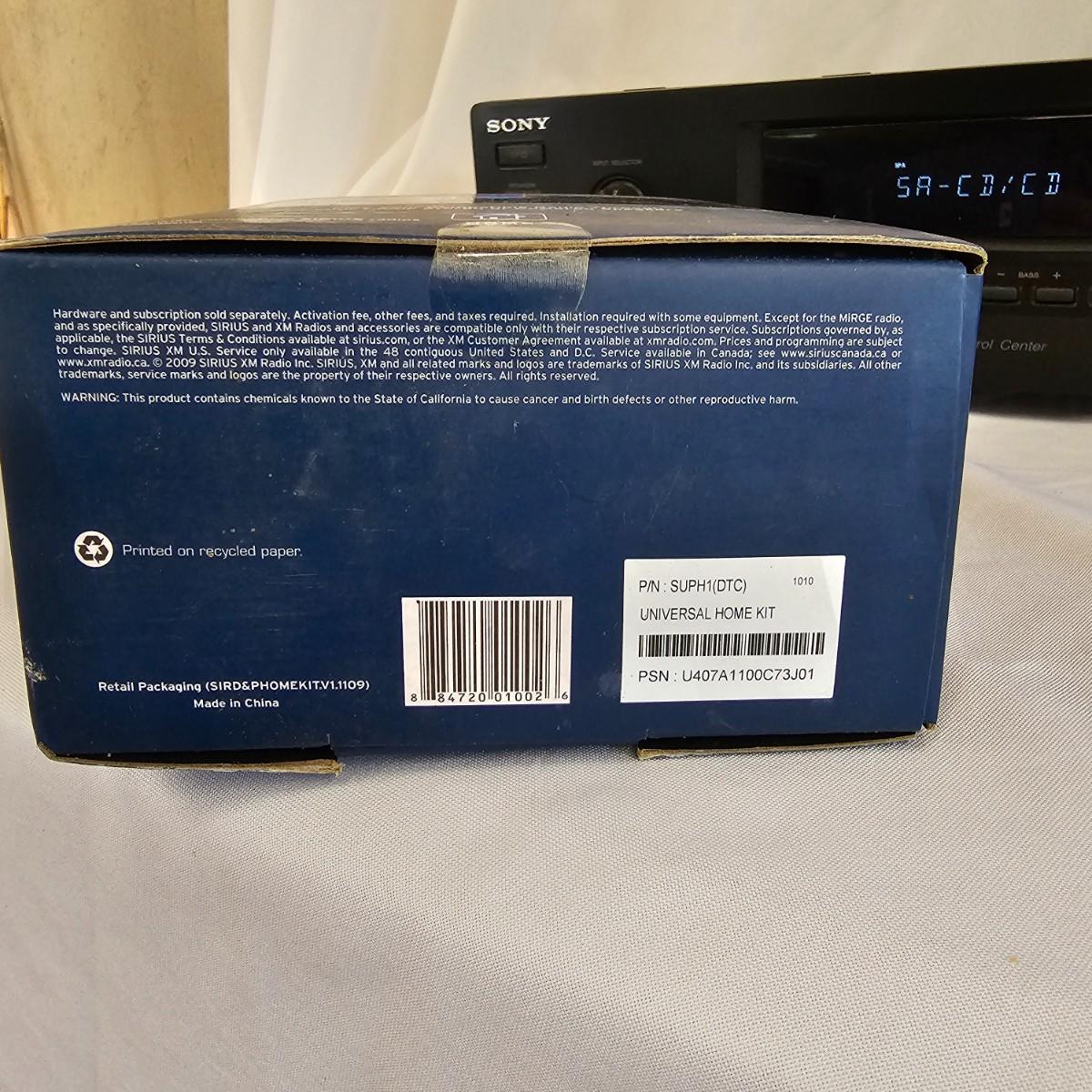 One Sony STR-DH100 stereo receiver and one set Logitech X-530 surround speakers. Logitech unit is most likely for use with a computer. Has five satellite speakers that plug into the subwoofer base. Also included is a Sirius XM dock & play home kit. There are also some additional RCA cables and two small antennas. Receiver and speakers powered on when plugged in. Receiver measures 17" x 10" x 5"H, and subwoofer is 9" x 6" x 12"H. See photos for details. Local pickup only.