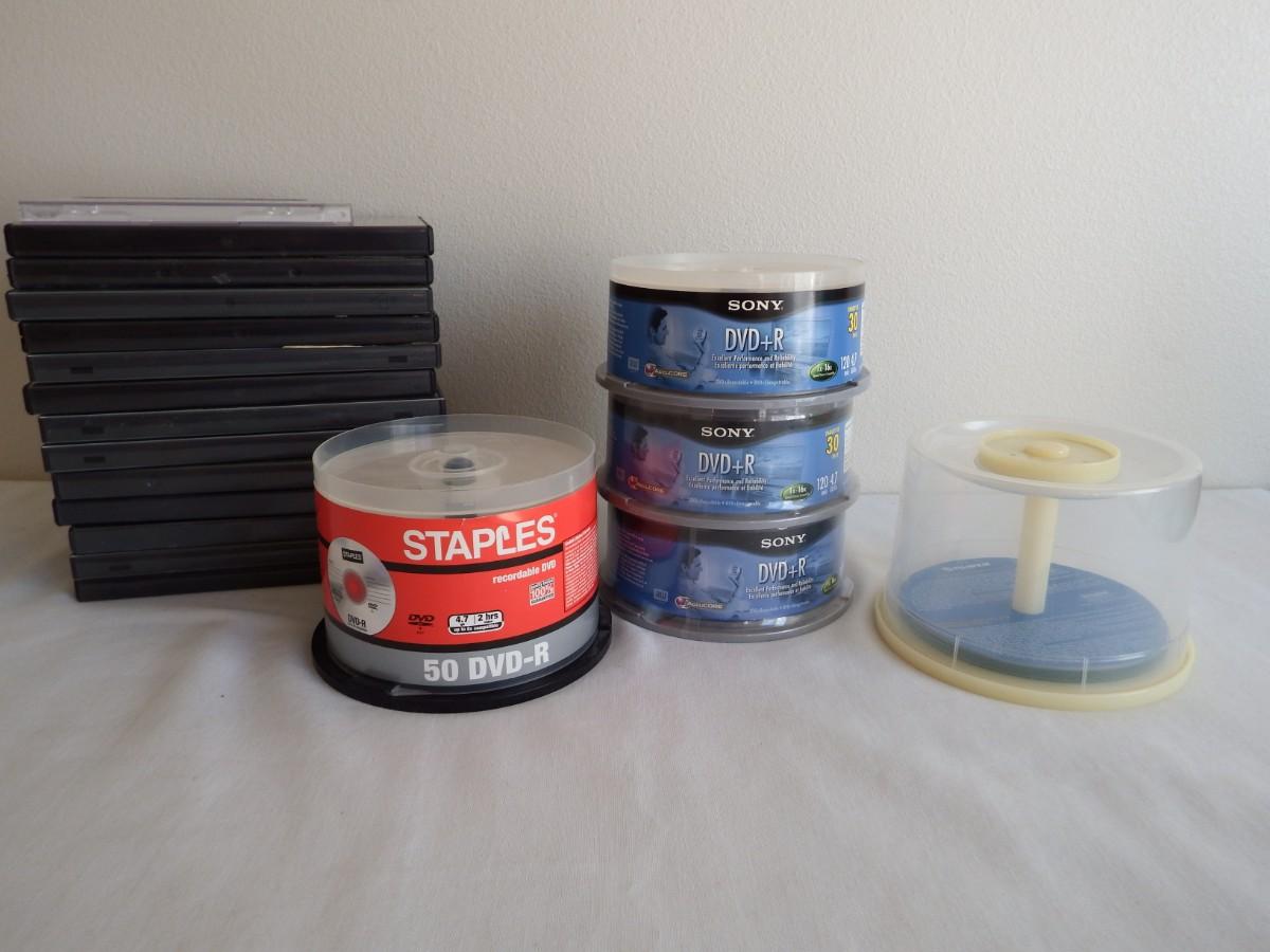 2 sony unopened 30 packs, others open with various numbers left in pack. Also includes empty cd/dvd cases.