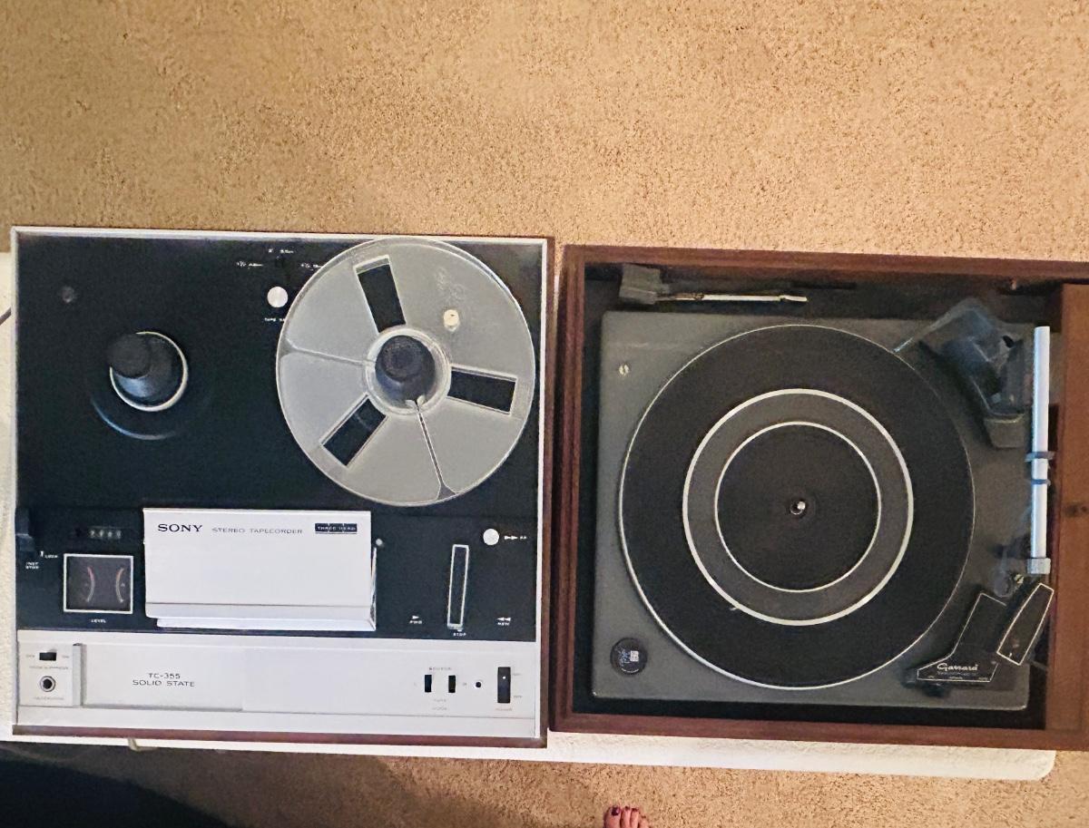 SONY TC-355 REEL TO REEL STEREO TAPECORDER & A GARRARD SYNCHRO LAB 55 TURN TABLE