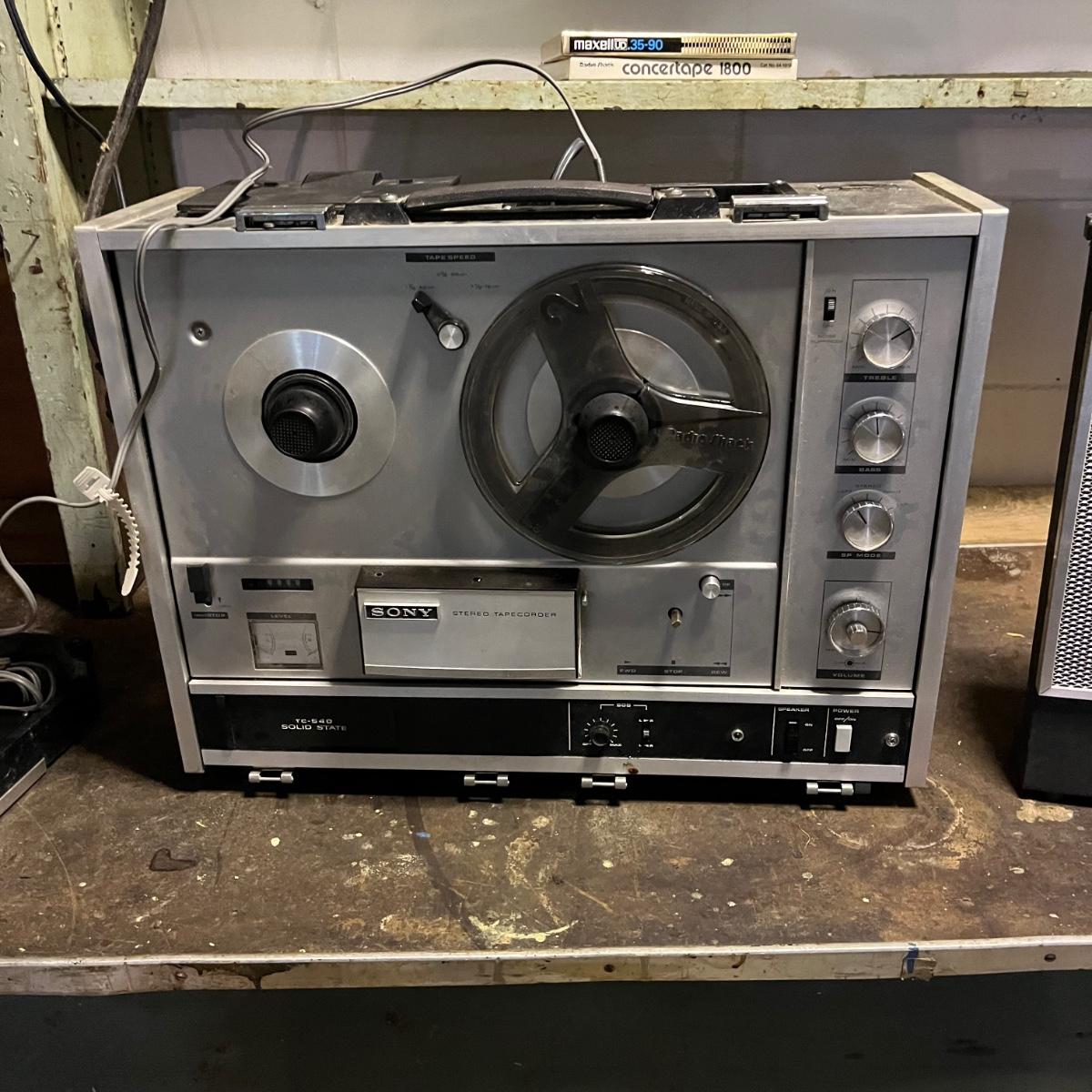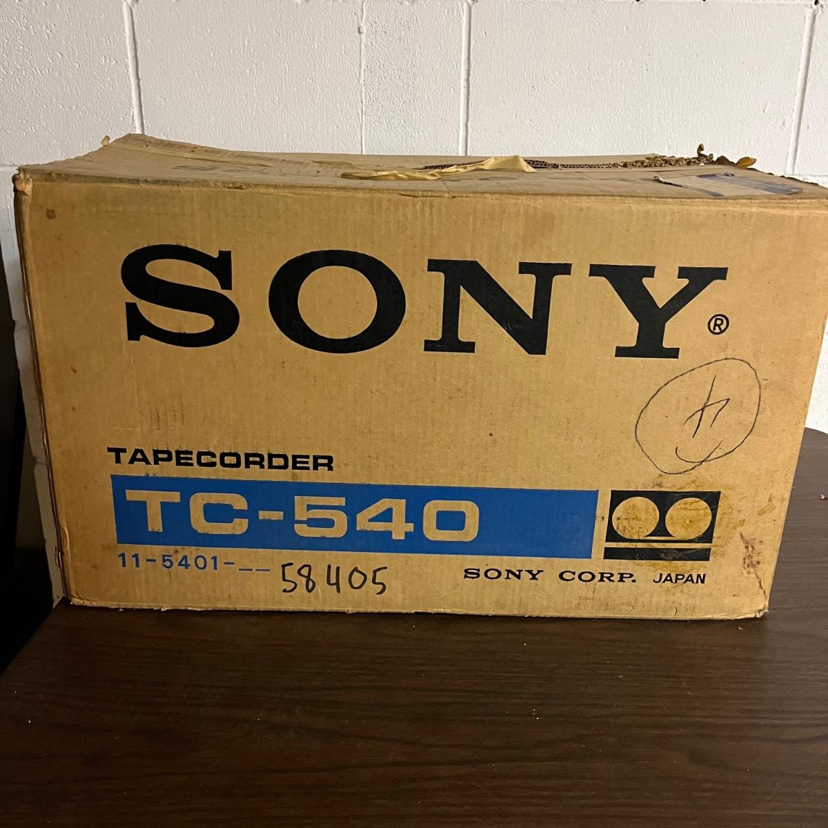 Lot includes a Sony TC-540 tape order in original box. Piece measures 9.5” x 20” x 14.5”. Machine made a humming sound when plugged in but was not tested as we are not sure how it works.