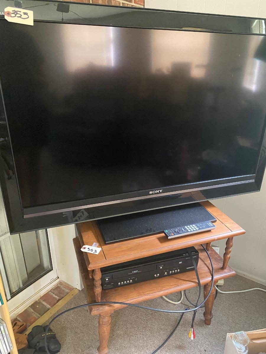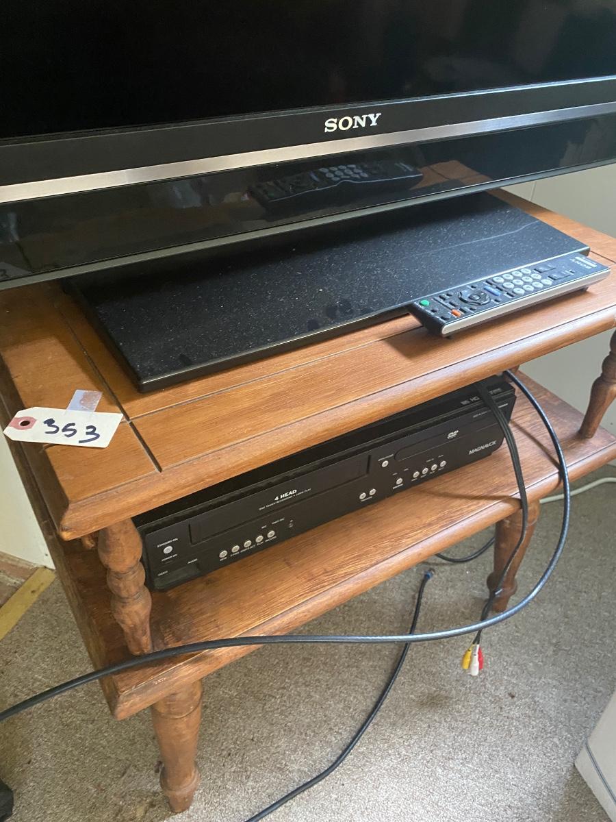 Sony Bravia tv, small accent table 18x26c23, Magnavox vhs, dvd player, RCA stereo