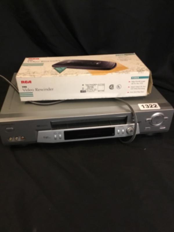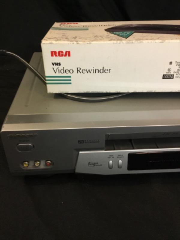 Sony VHS player and RCA video rewinder lot 1322 Powers up untested