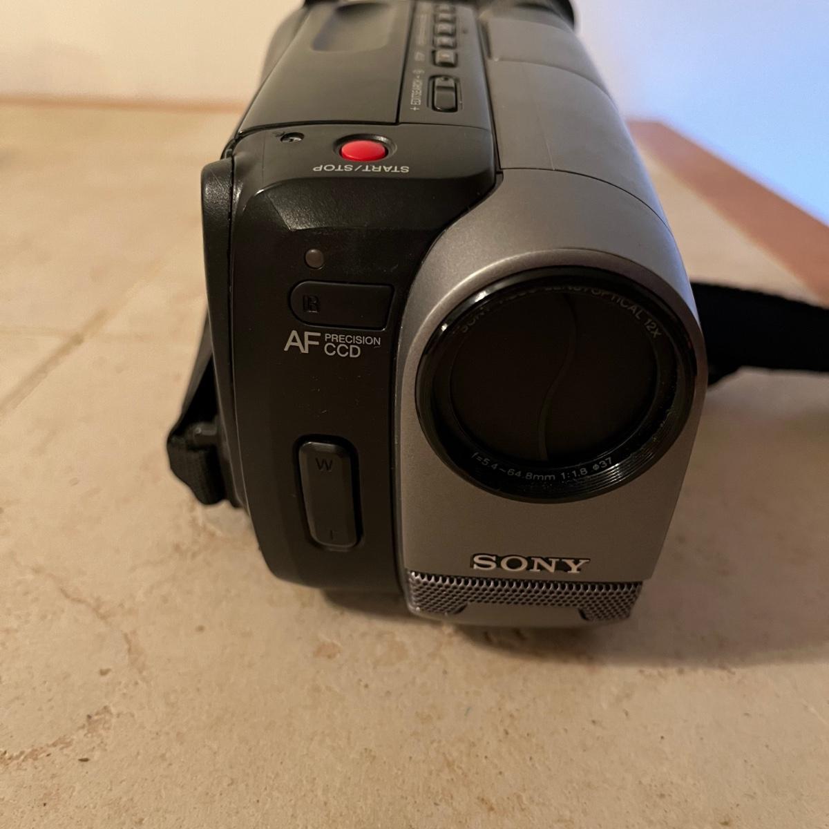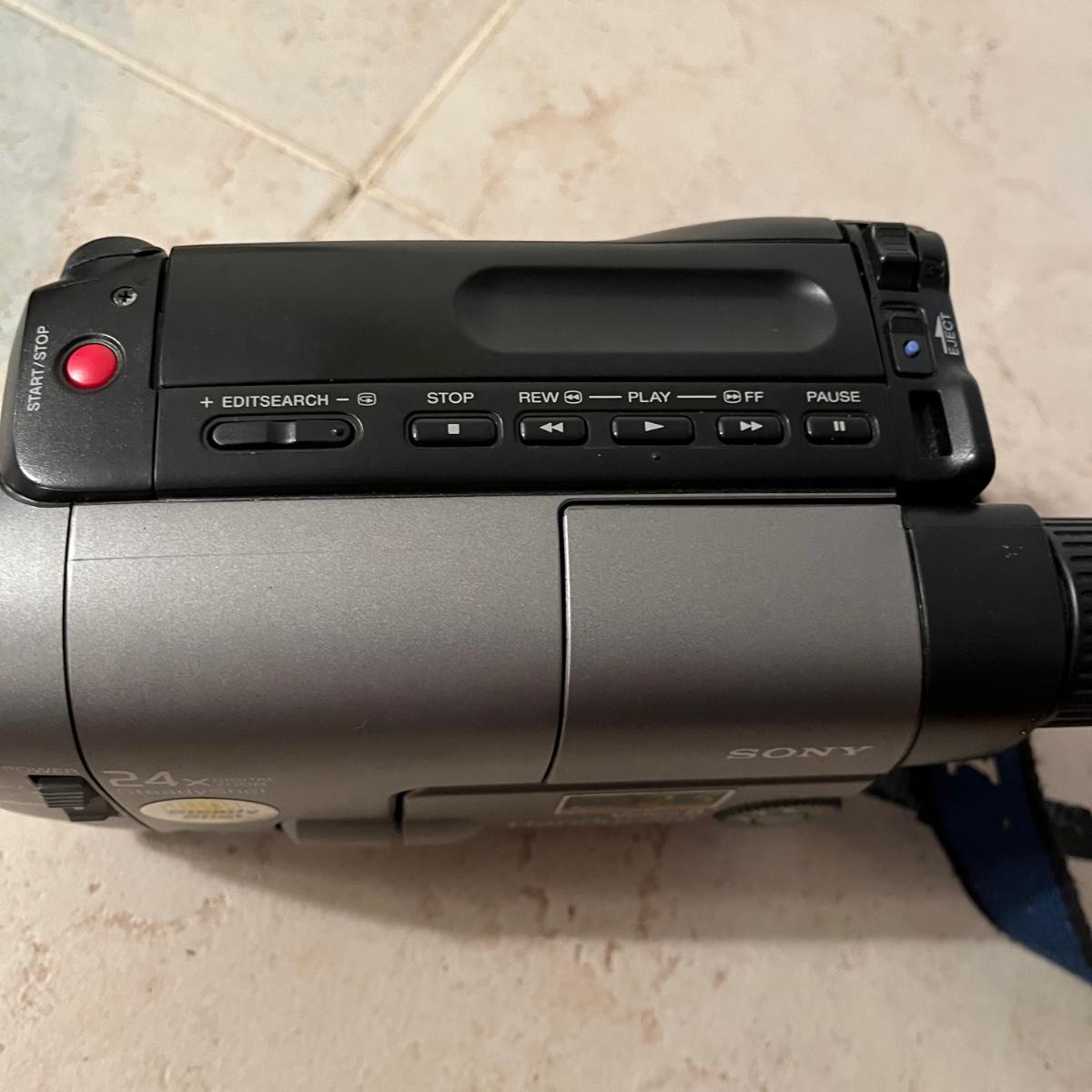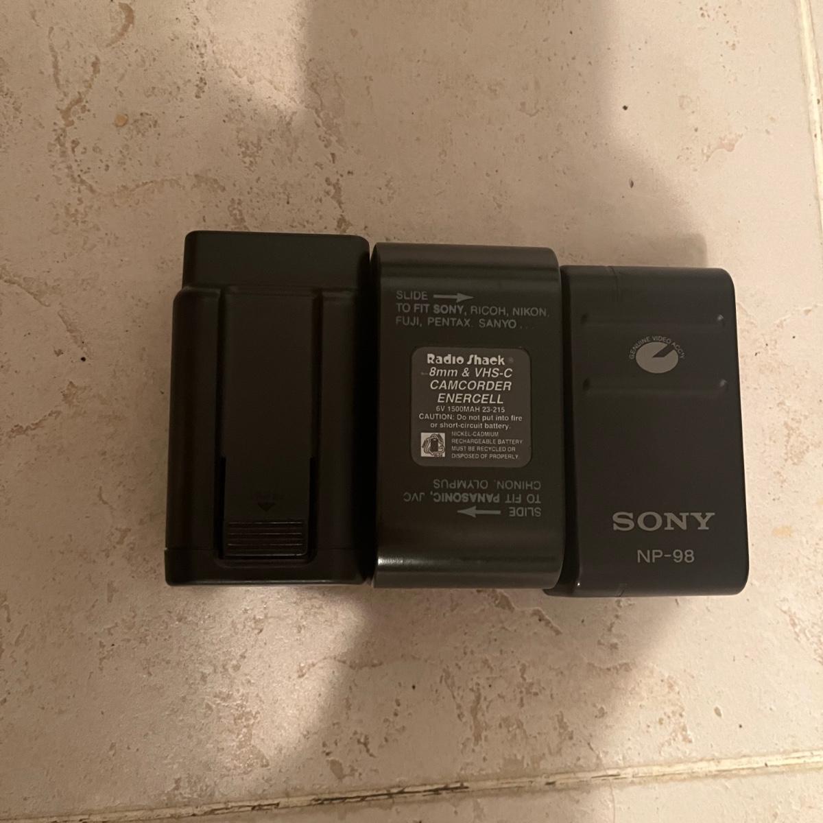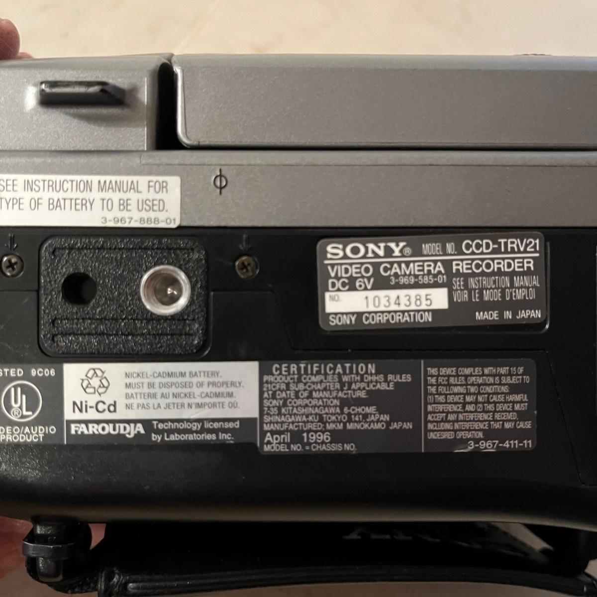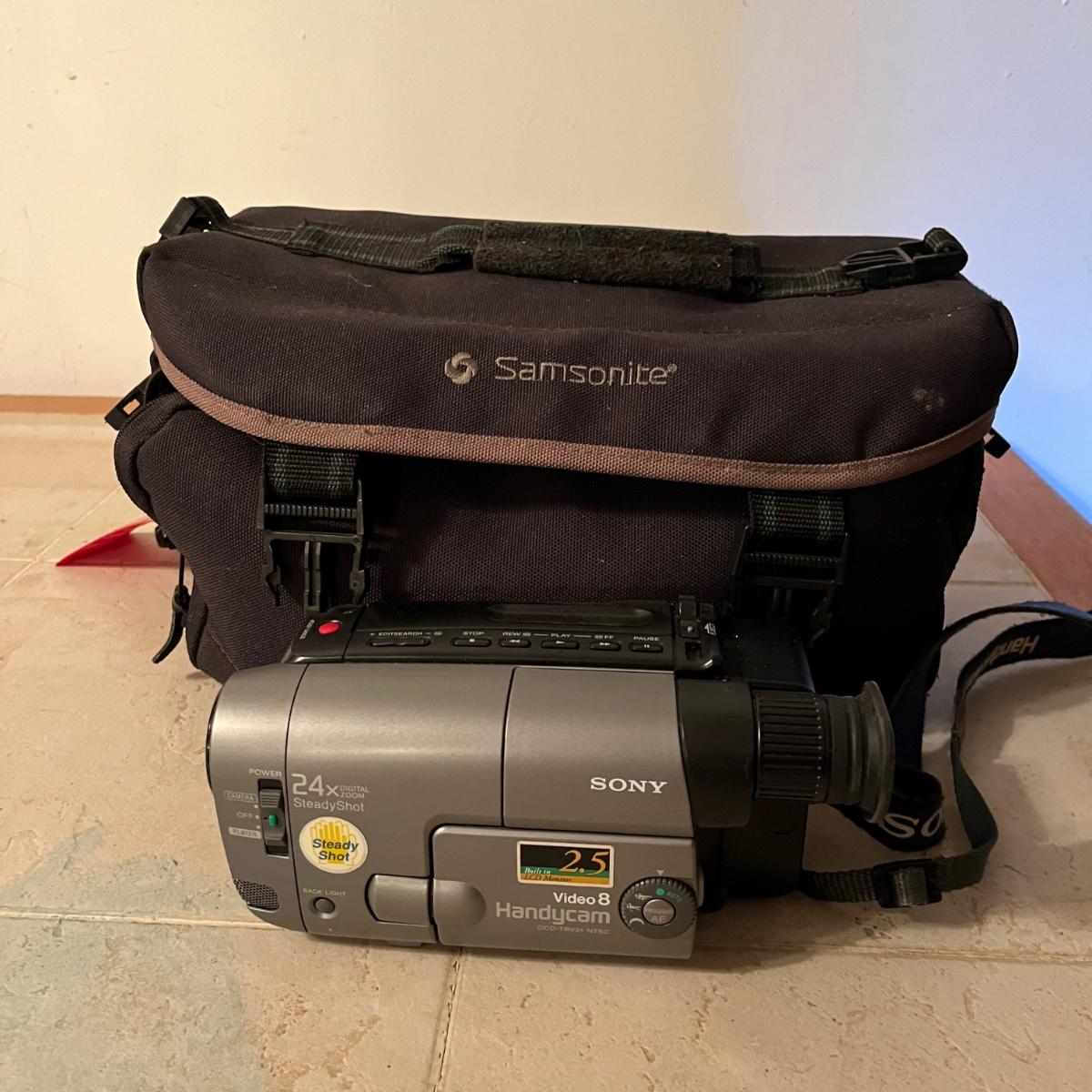 Lot includes a Sony Video 8 Handycam, model # CCD-TRV21, three batteries, and a charger. Also includes a Samsonite carrying case. Batteries are all dead so camcorder was not tested. We tried to charge one battery and it did not charge.
