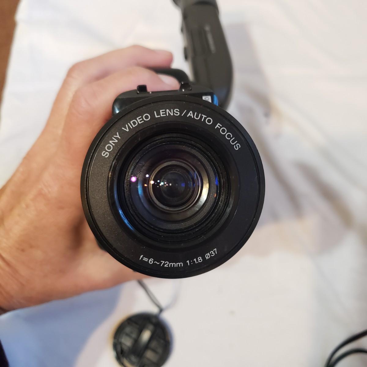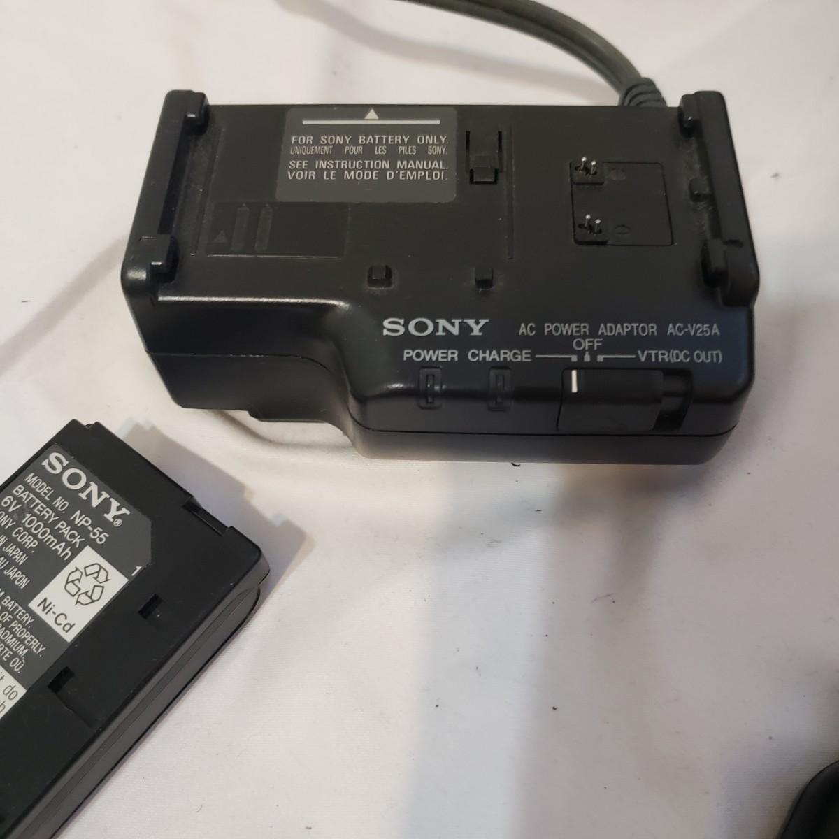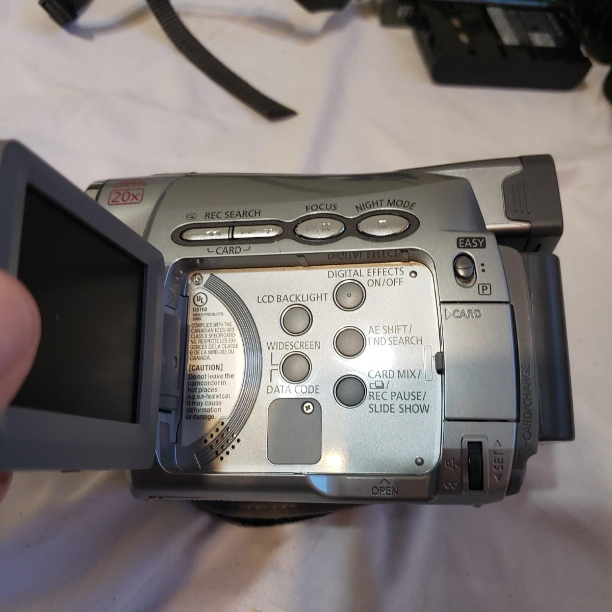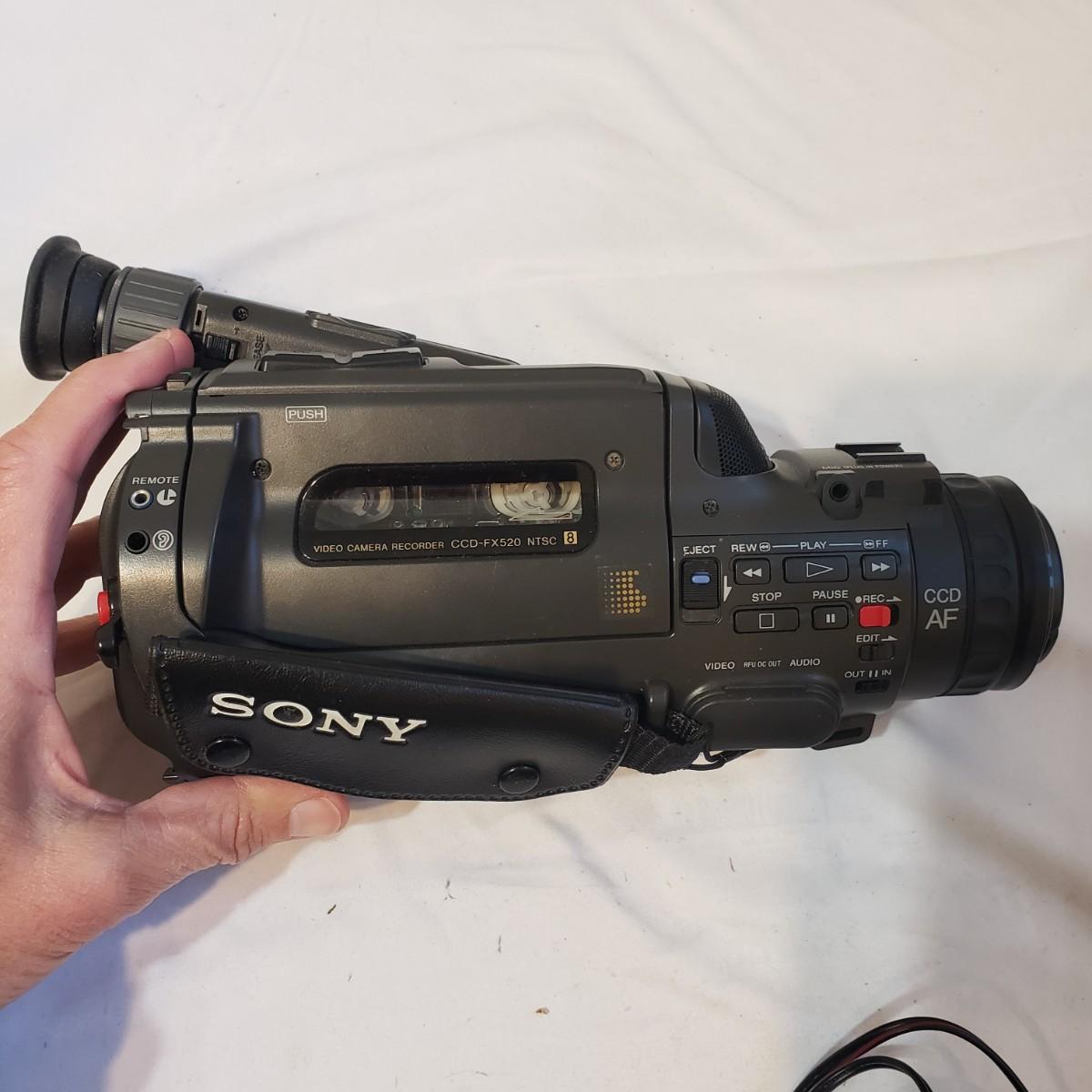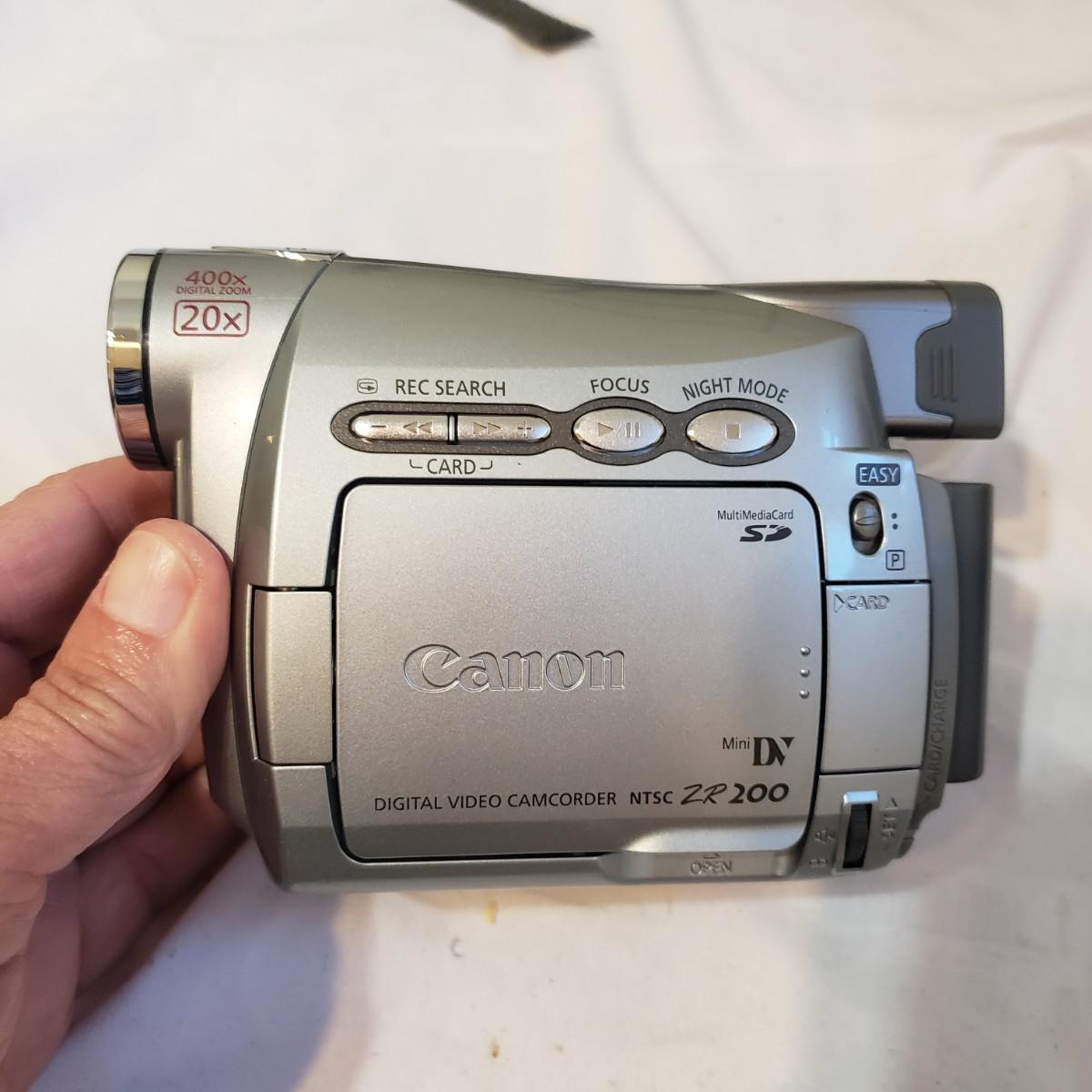 This lot contains a Sony Video 8 Handycam video camera recorder with many accessories-strap, batteries and charger, TV adapters and a Samsonite carry case. See pictures for details. Also included is a Canon ZR digital video camcorder. This camcorder comes with a manual, cables and an extra battery. Both pieces were not tested with a charged battery.