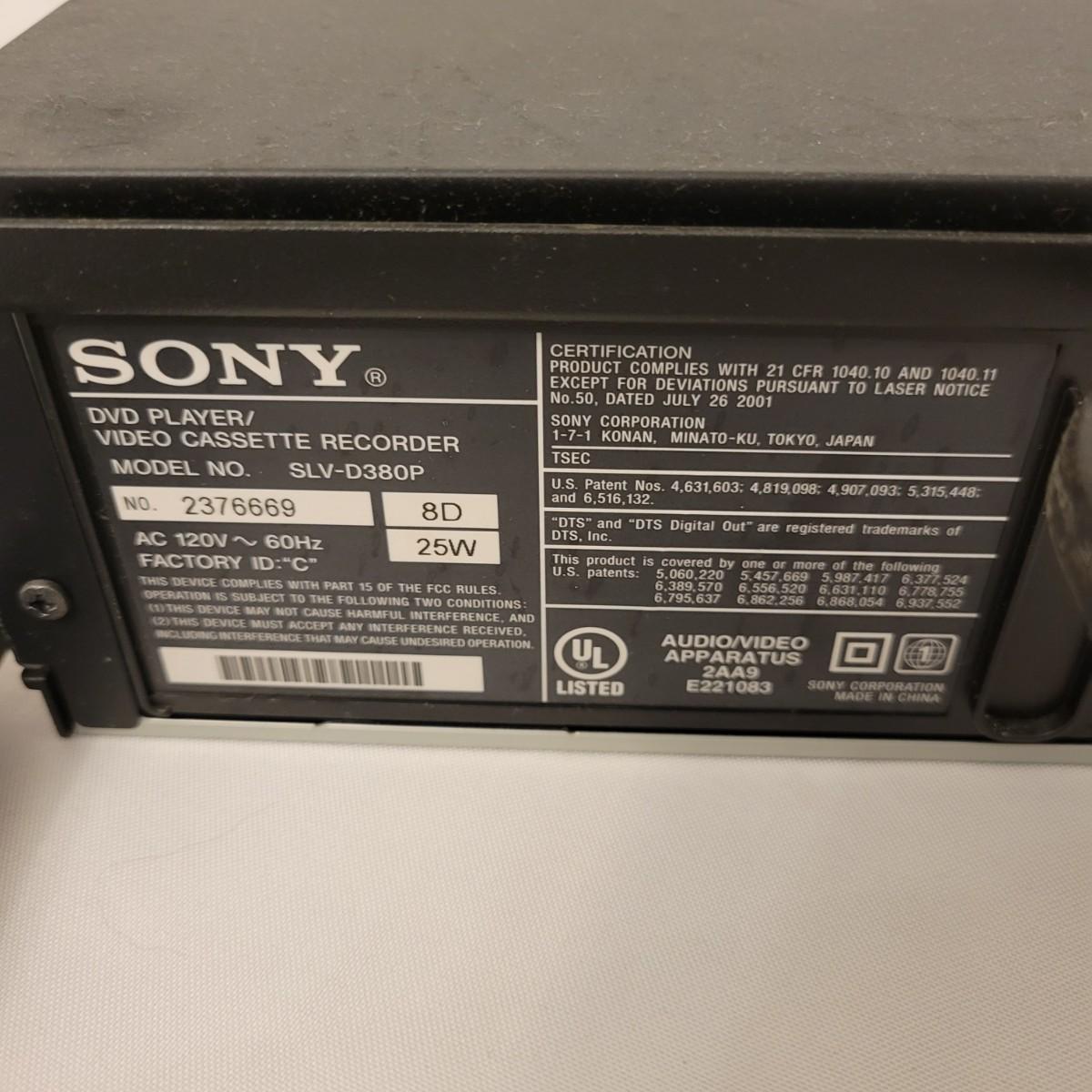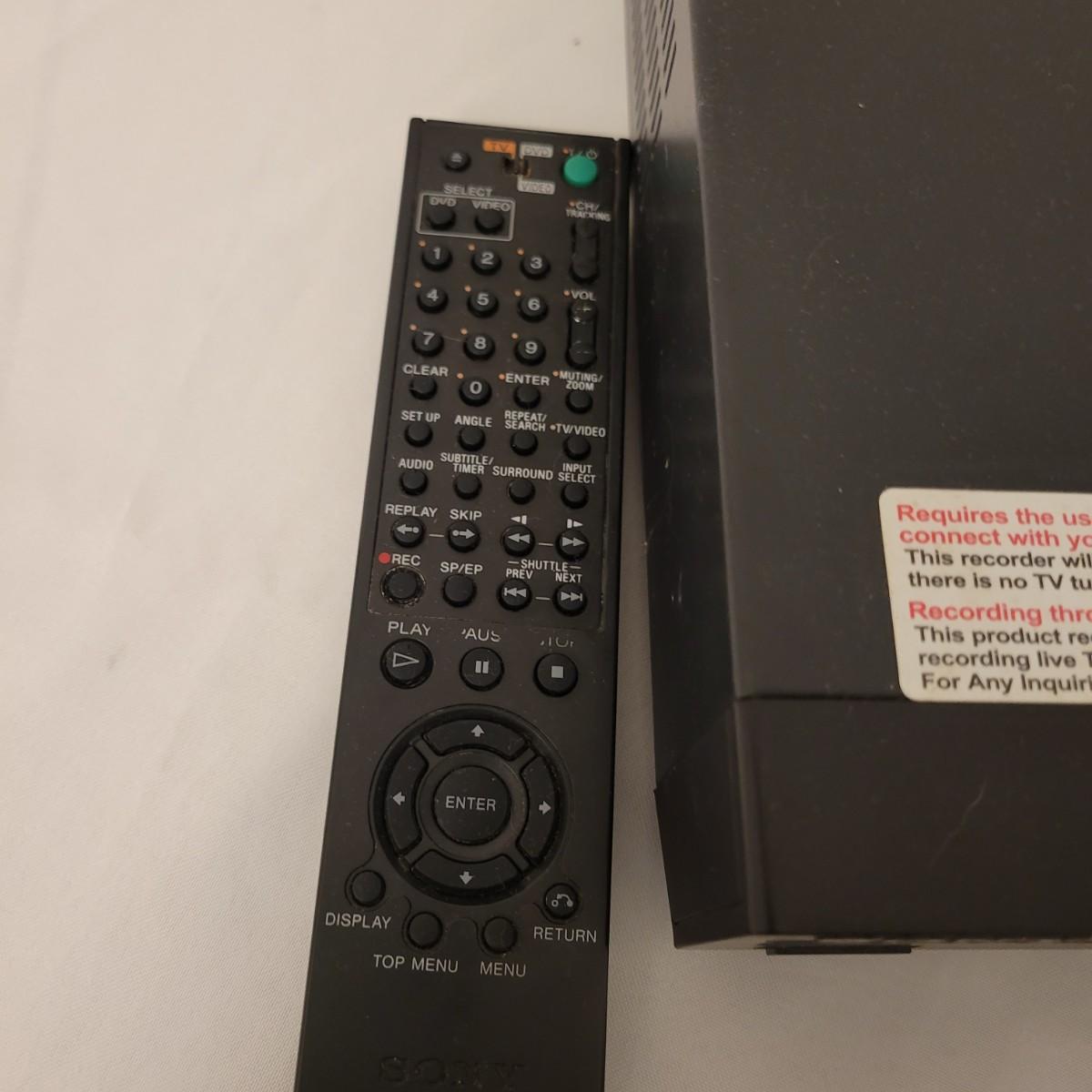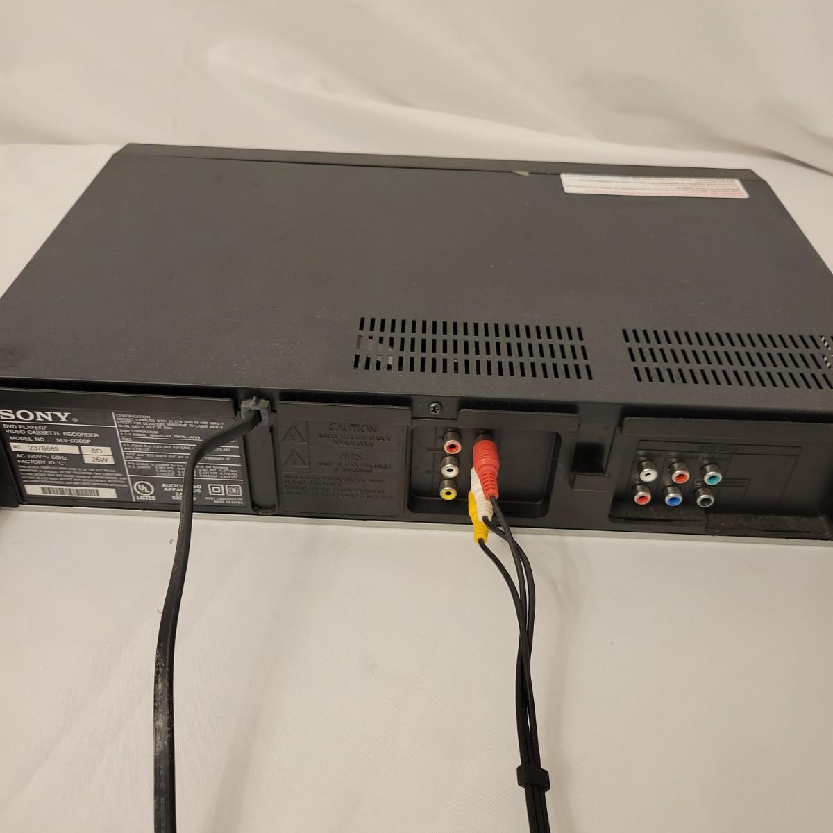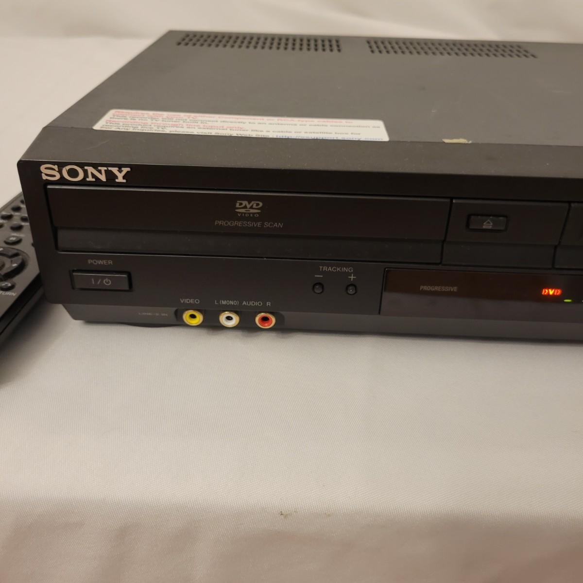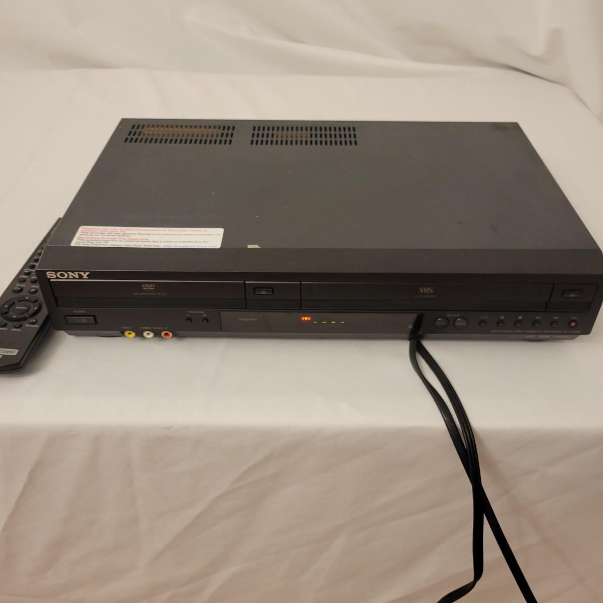 Sony DVD/Video player with audio and video cables, and extra cables. Turns on when plugged in, DVD tray opens fine. Comes with a variety of remote controls, unable to test them. Measures approximately 17"L x11"D x3.5"H. Shipping available.