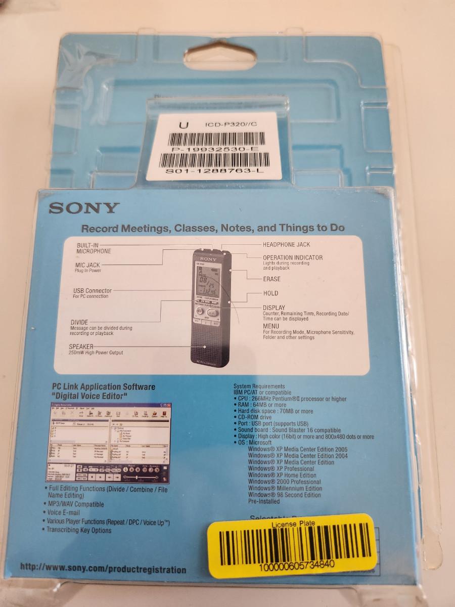 This lot is for a barely used Sony Voice Recorder. This is a model ICD-P320. Google it for full details of its capabilities. In original packaging with all the information included.