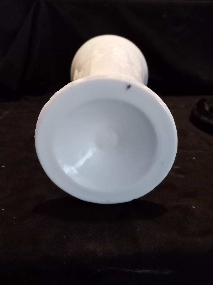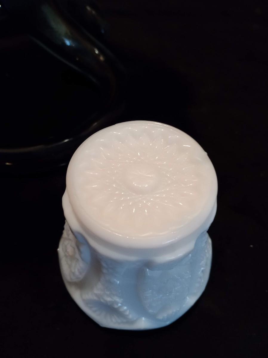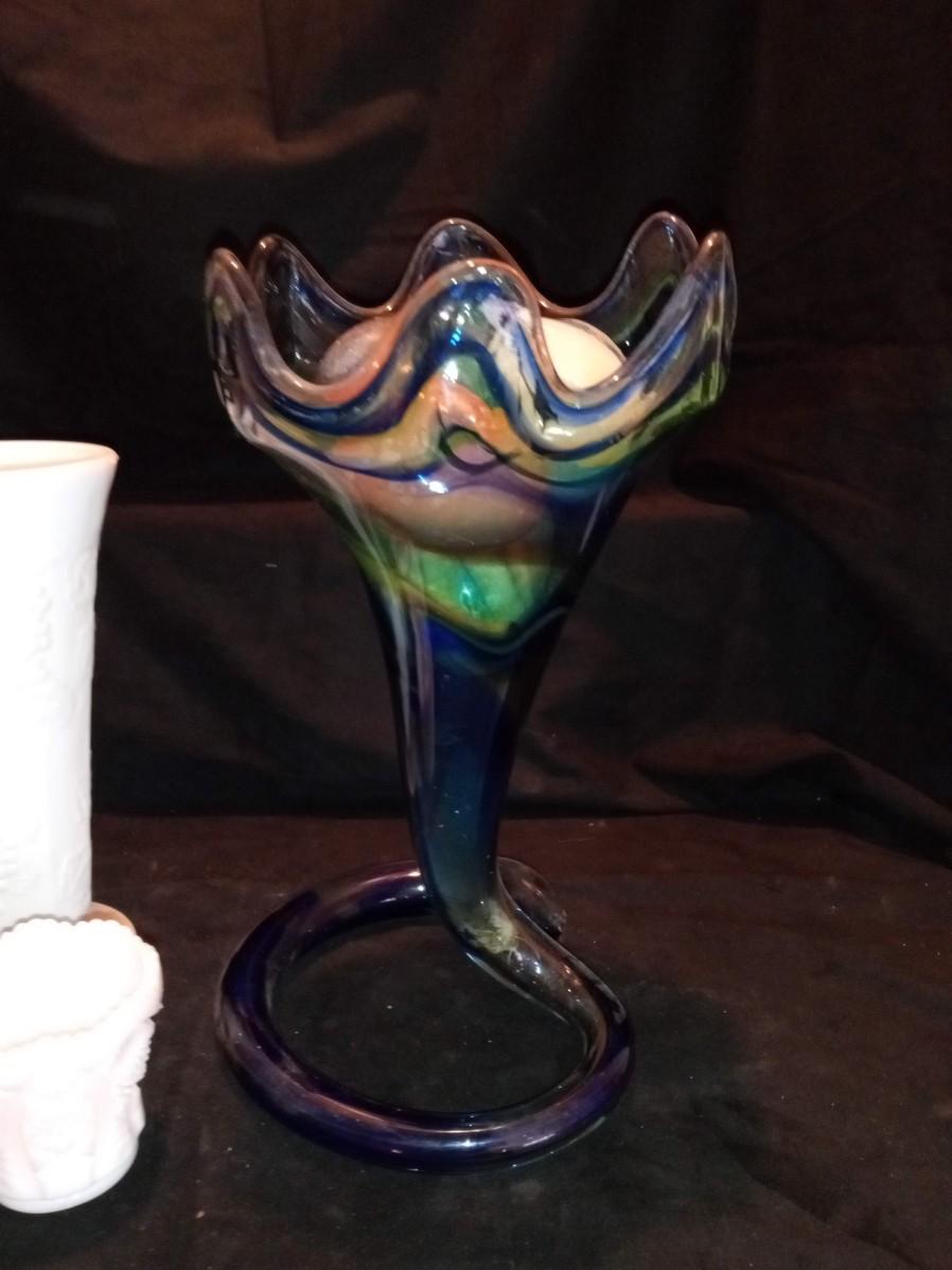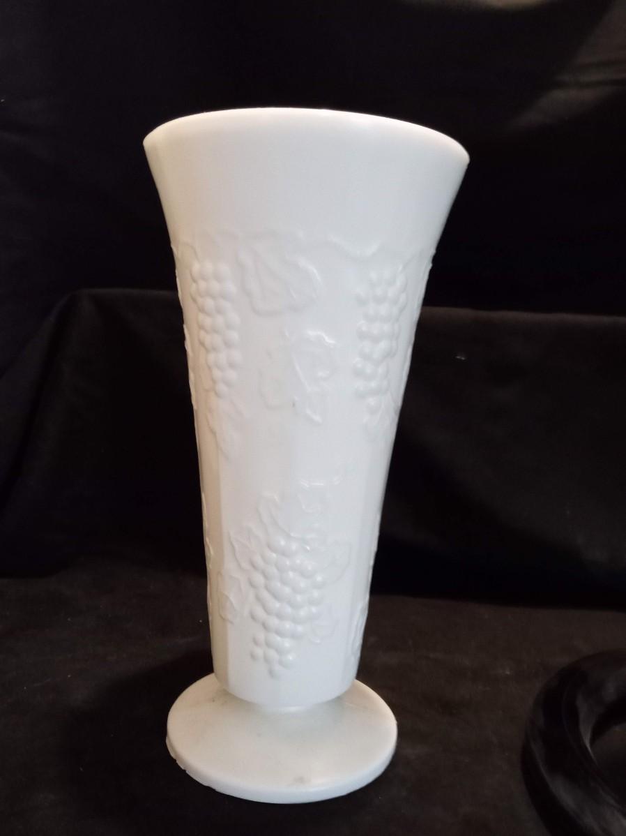 SOONER ART GLASS VASE WITH MARBLE EGGS, MILK GLASS VASE AND TOOTHPICK HOLDER