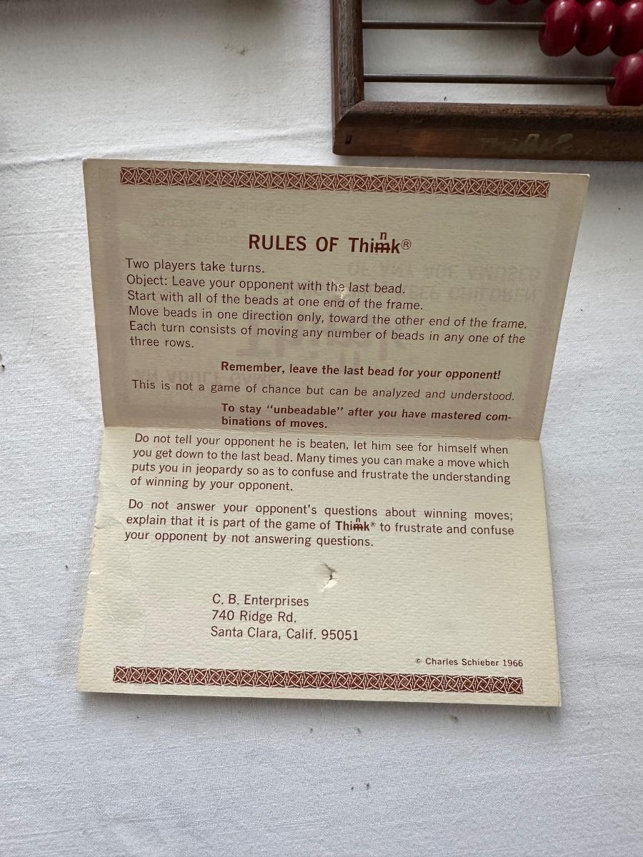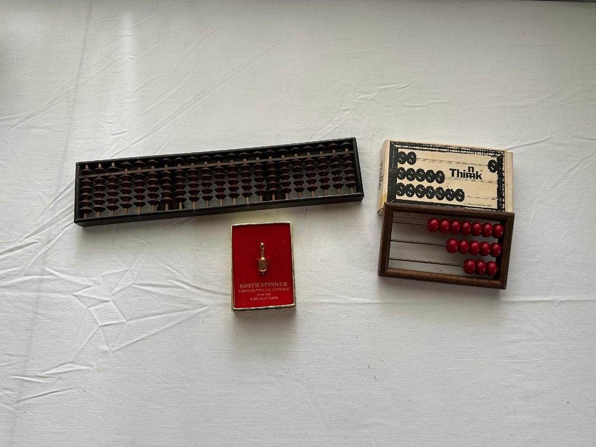 24-KT GOLD PLATED SOOTHE SPINNER (FORTUNE TELLING ARTIFACT) THE ADULT GAME "THINK" AND AN ABACUS
